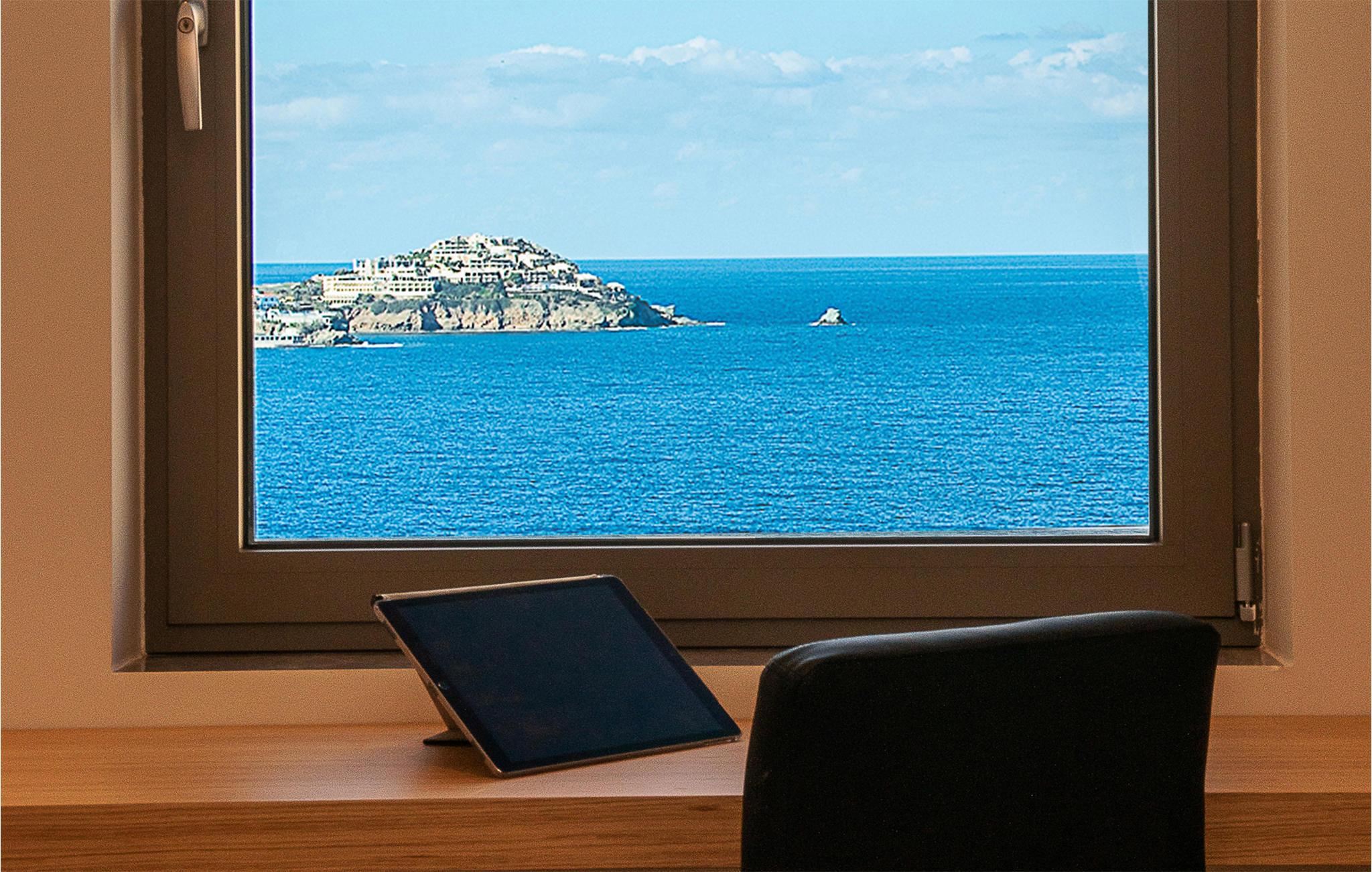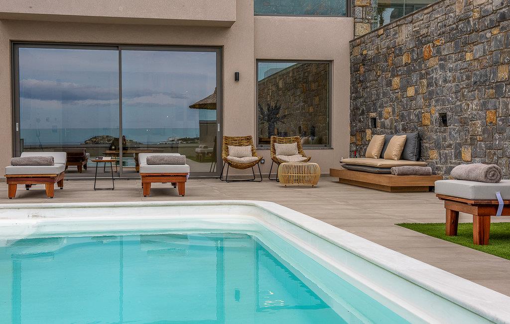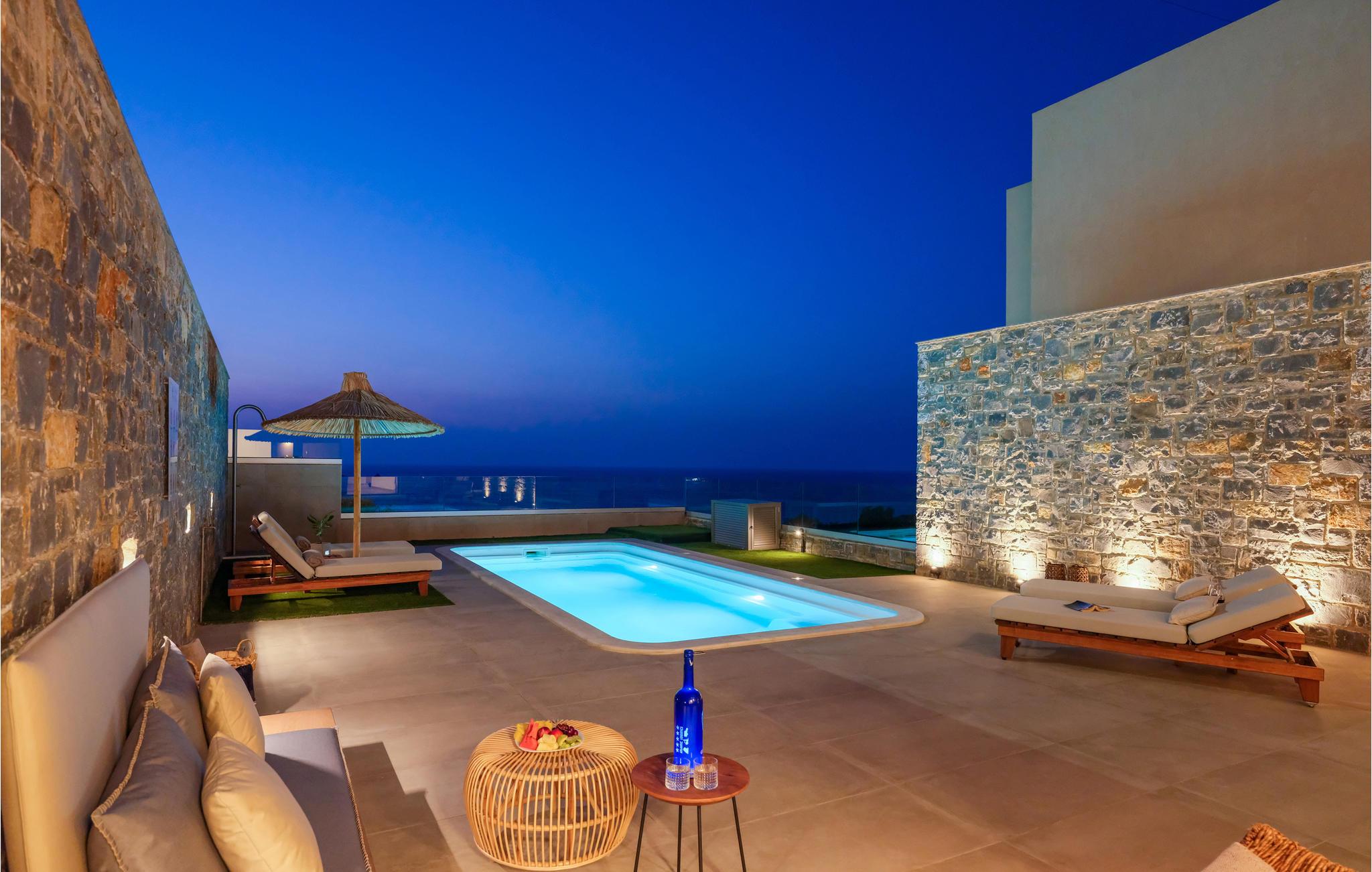 Der er lagt op til en uforglemmelig ferie i dette eksklusive hus, hvor I kan nyde en unik udsigt over det kretensiske hav både inde og udefra. Der er gjort stor brug af naturmaterialer i opførelsen af ??huset, især sten og træ. Her kan I nyde dagens små pauser stilfulde rammer, for sofaområdet i stuen lægger op til at hyggelige timer efter en lang dag med strandture og spændende udflugter.