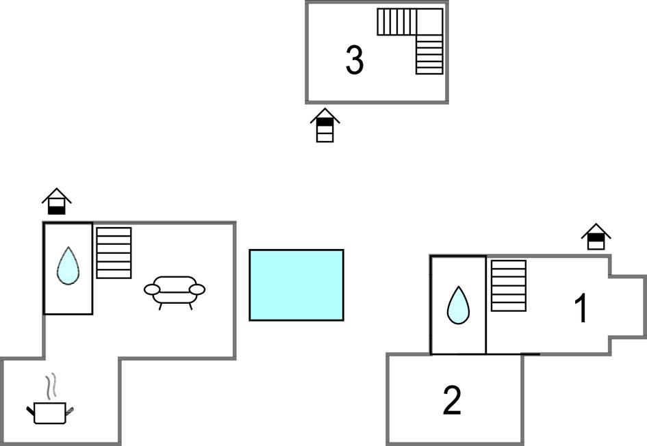Badeværelse (nr. 1) - WC. Varmt og koldt vand. Bruser