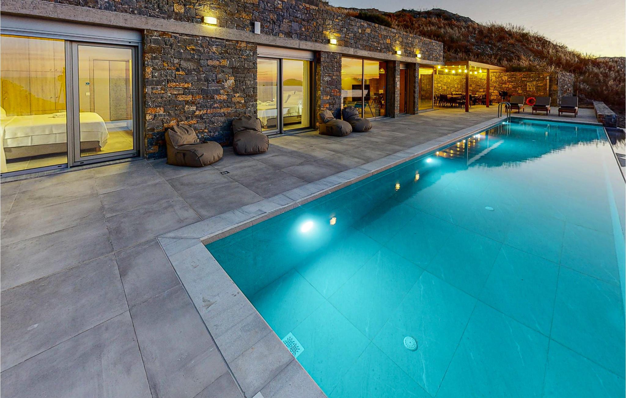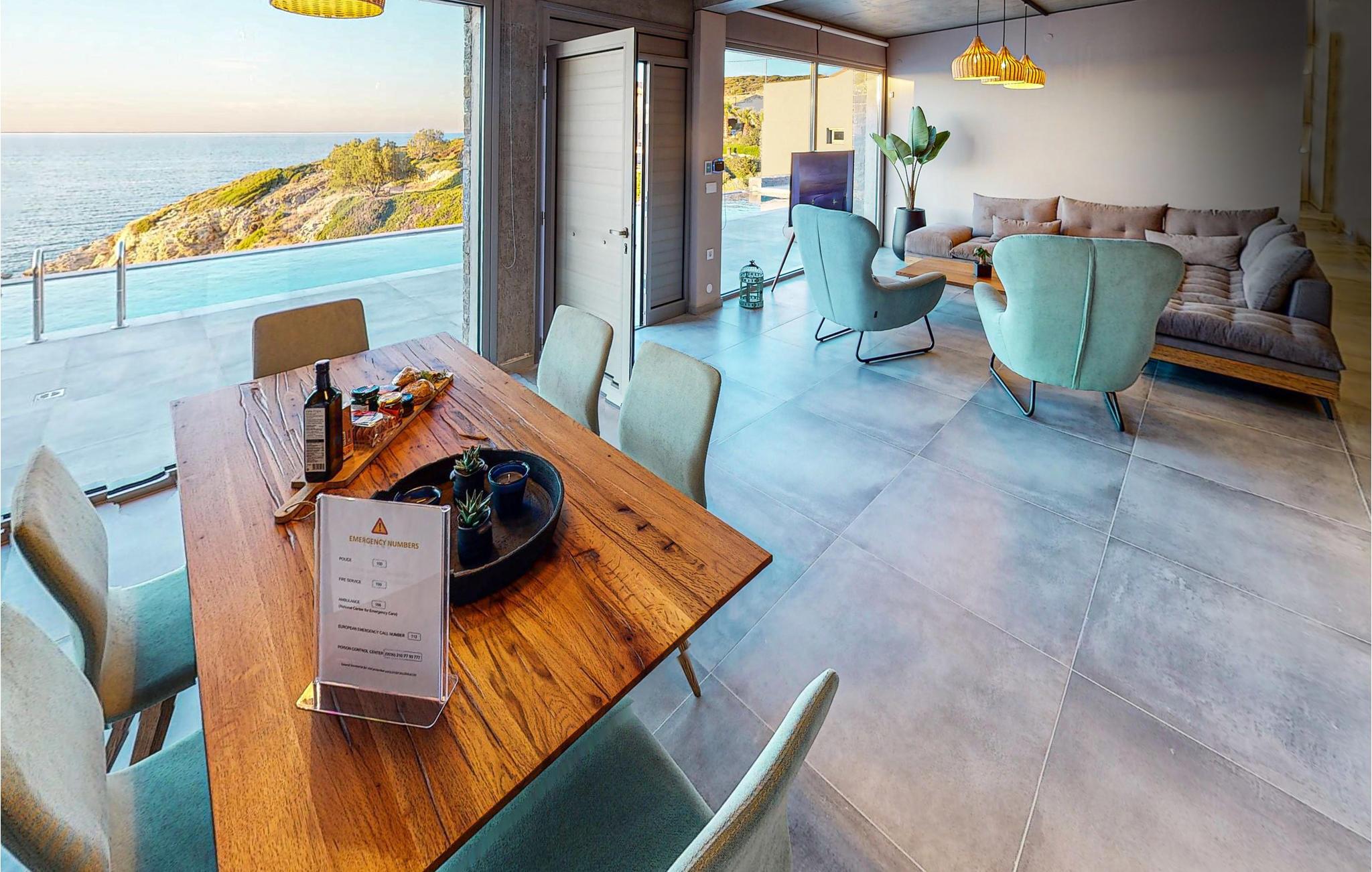 Denne luksuriøse villa er bygget på en klippe i udkanten af ??en klippe med udsigt over Det Kretensiske Hav og tilbyder sine gæster et afslappet miljø og en rolig strandatmosfære.