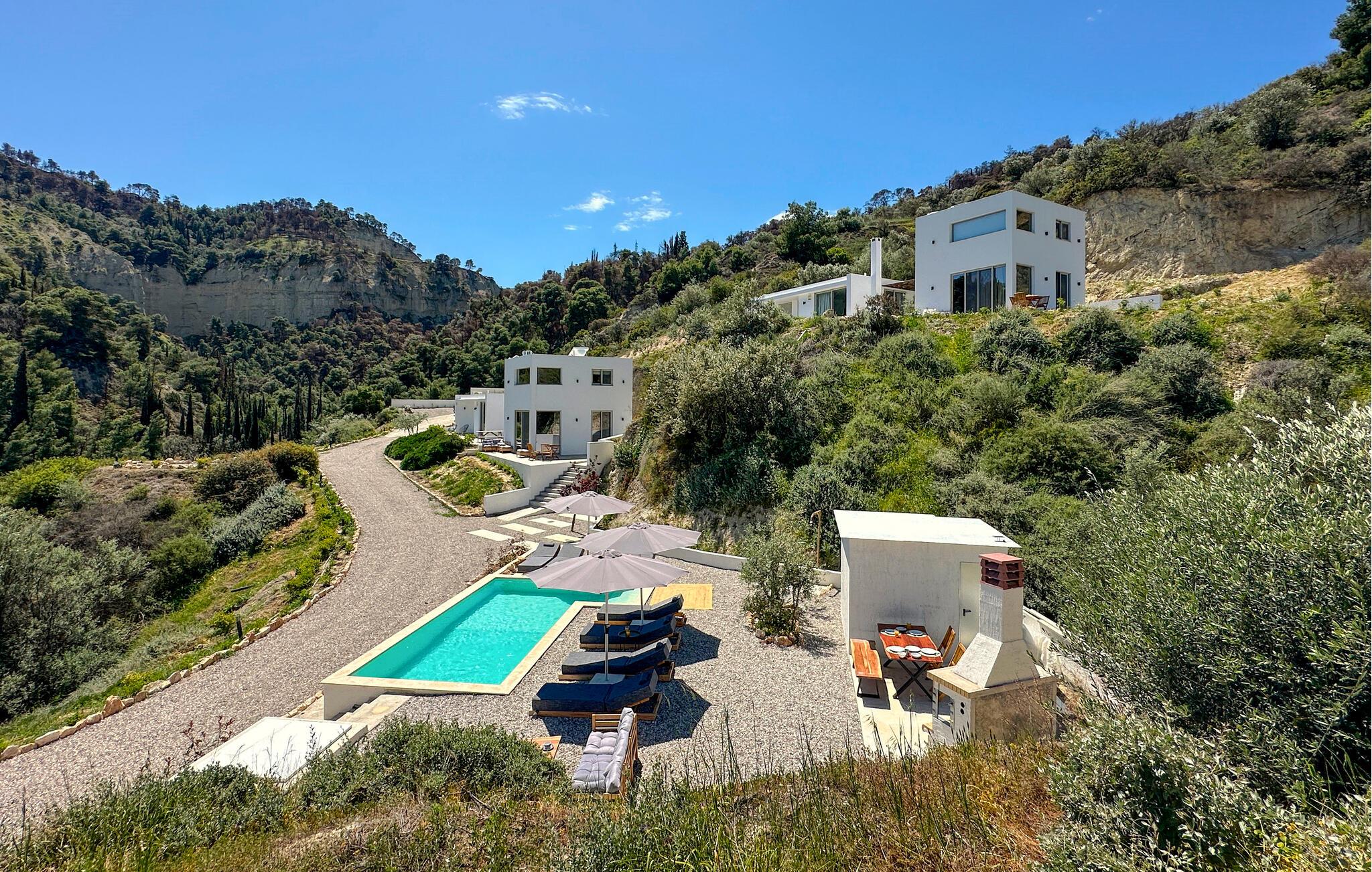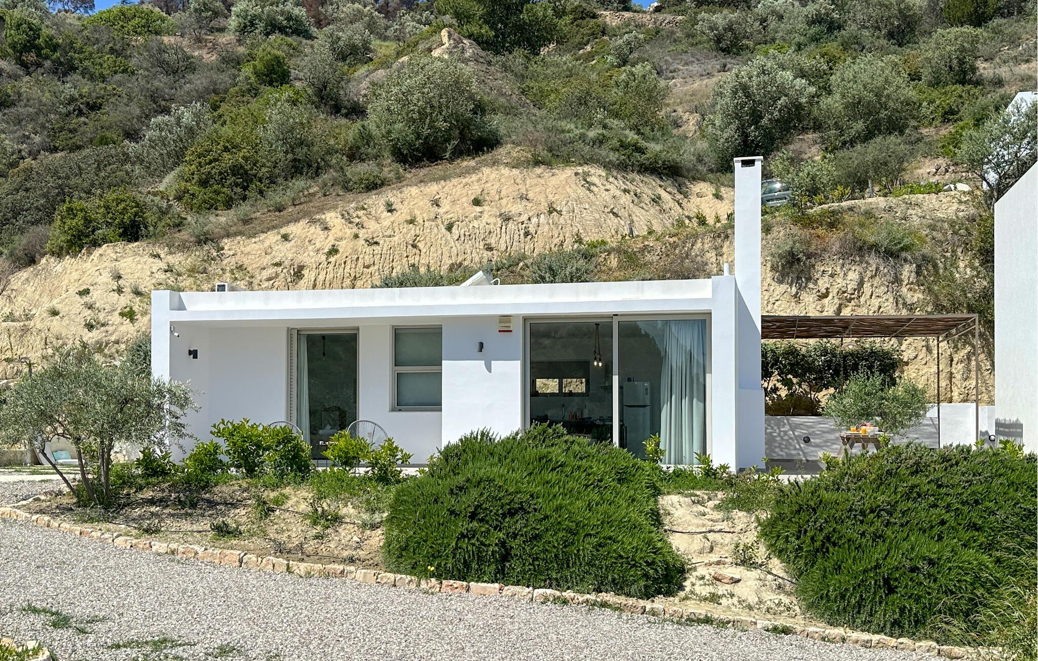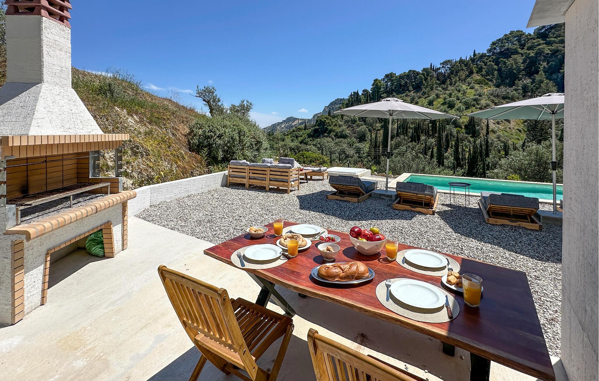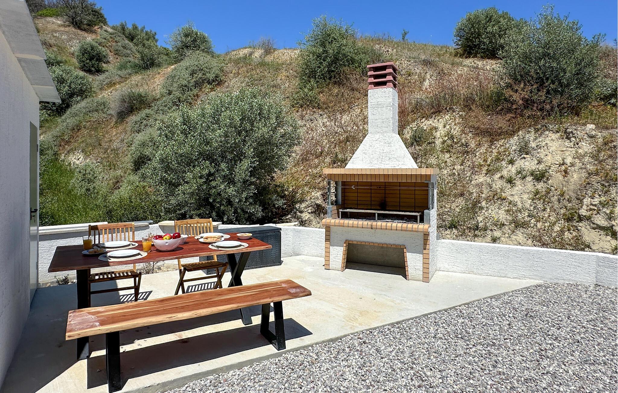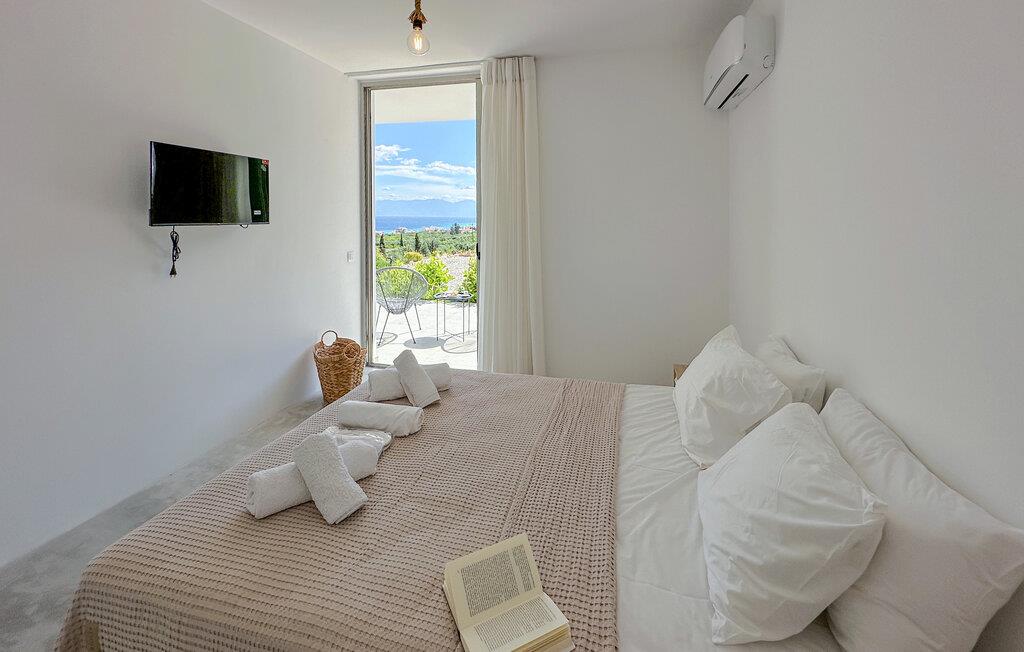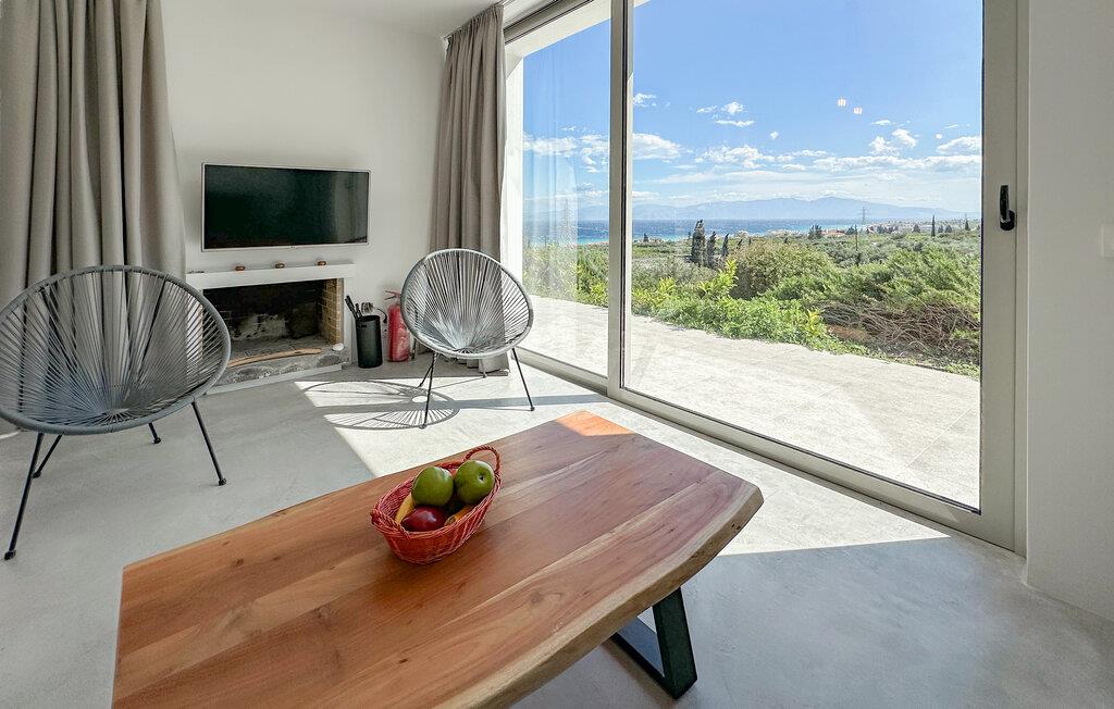 Oplev en solrig ferie i dette komfortable feriehus med havudsigt og adgang til poolen. Dette moderne feriehus forkæler jer med en smuk udsigt over Korinthbugten og byder jer velkommen med en lys og stilfuldt møbleret opholdsstue. Nyd udsigten, mens I spiser, takket være de store vinduer, og planlæg jeres aktiviteter i den friske atmosfære i det åbne opholdsområde. Efter en lang dag kan I streame en film på sofaen eller udfordre jer selv til et brætspil. Den skyggefulde terrasse er det ideelle sted til en lækker morgenmad. På varme dage kan I forfriske jer i den fælles pool og nyde solen på de behagelige liggestole. Hyg jer omkring grillen og snak over græsk vin i den lune sommernat. Vandr gennem de fantastiske Helmos-bjerge og oplev skjulte vandfald, eller slentre langs den maleriske promenade i Xylokastro med dens traditionelle tavernaer. Hold en picnic under fyrretræerne i Pefkias-skoven ved havet, tag den historiske tandhjulsbane gennem den betagende Vouraikos-kløft, eller tag en dagstur til det gamle Korinth.