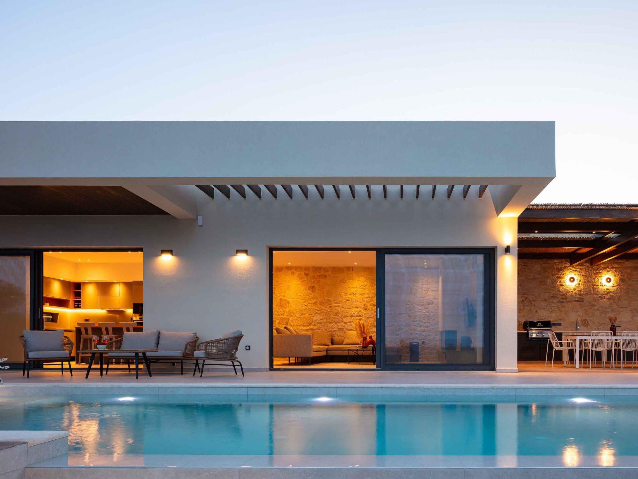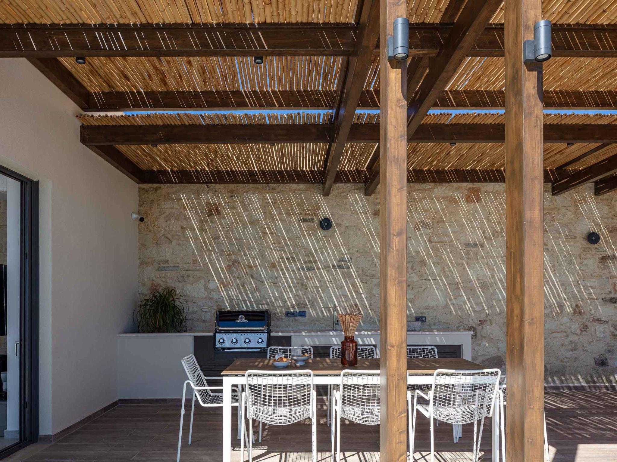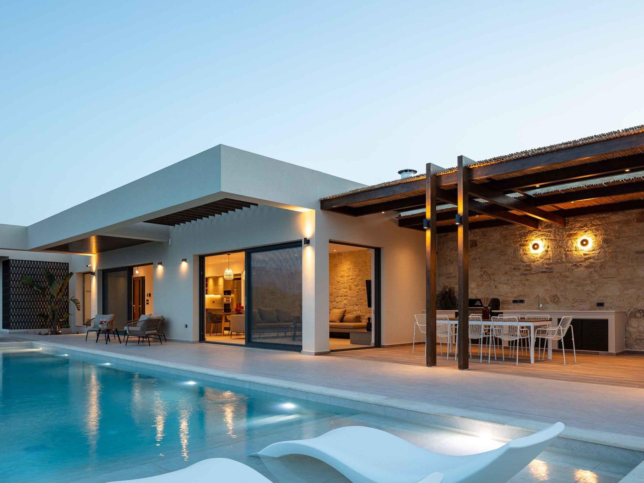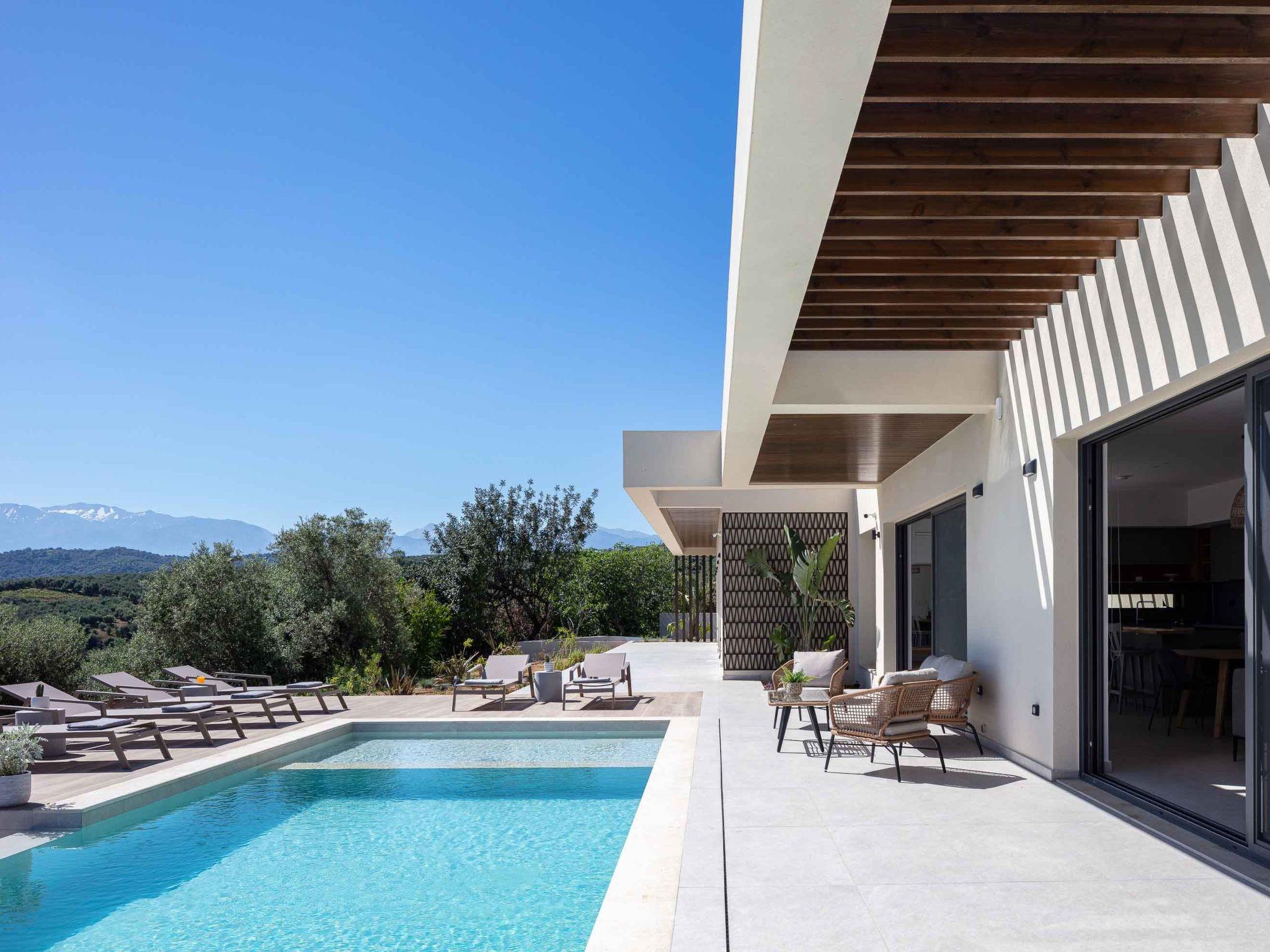 It's true bliss in a plot of 1087 sqm! You could not find one thing out of place here! A 40 sqm swimming pool with salt water awaits you and your kids soak up the Cretan sun in the lounge area or snuggle up in the sumptuous sofas. This is a fuss-free spot, where under the pergola in the BBQ area preparing the food could be as fun as eating it. The private terrace gives you the chance to host your own soirees in privacy, on special occasions for friends and family. The breathtaking views all over the area of Xirokambi, complete the idyllic scene and give you the chance to celebrate the beauty of Cretan living. Safe to say that there is a parking space for 3 cars.