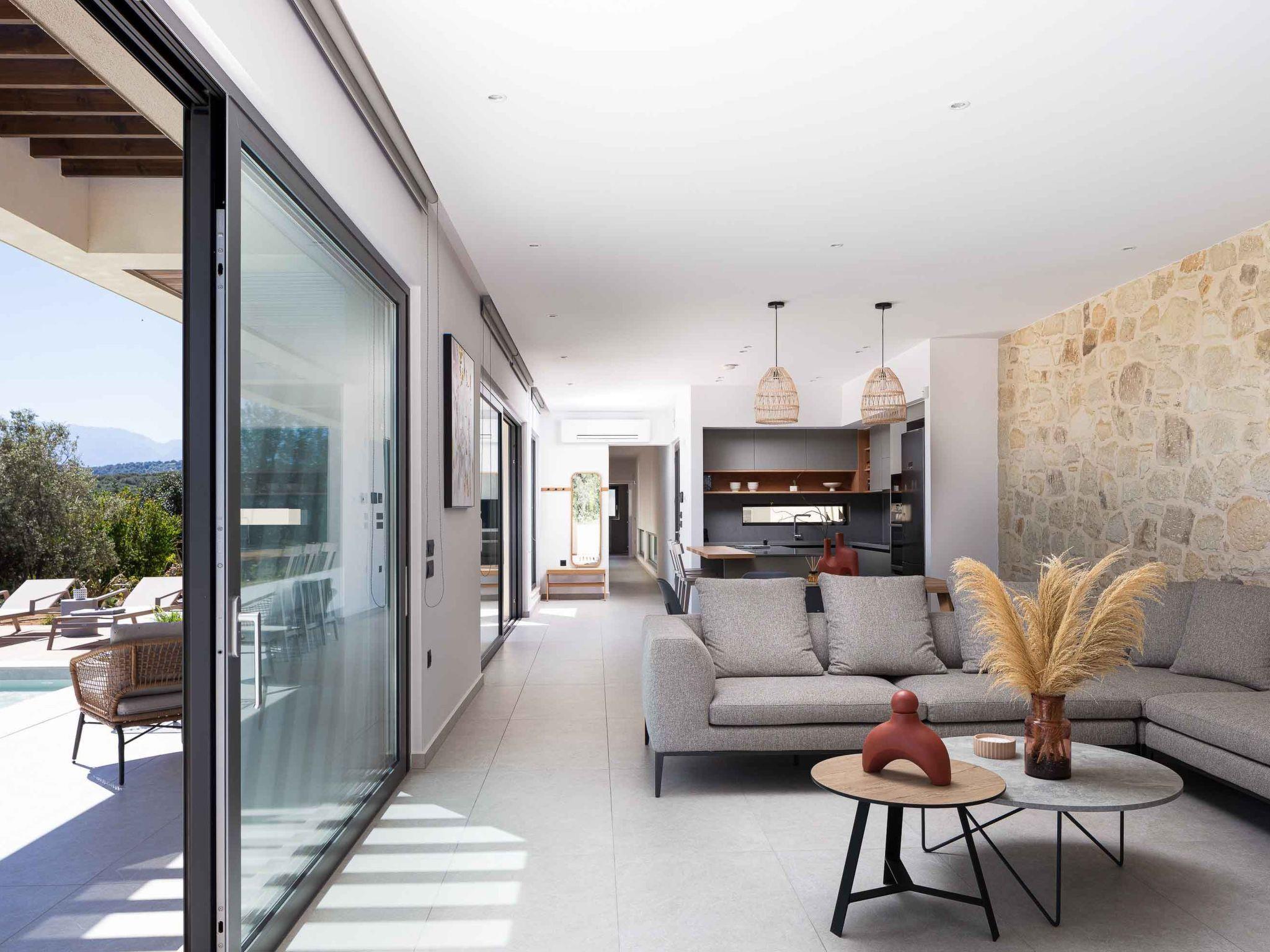 This hidden residence set within the area of Xirokambi, is a true gem and the perfect spot for guests who would like to relax away from the lights of a town! Spread over one floor, Villa Aglaea is designed to bring ease, offering everything needed for a comfy home base. A one-floor property equipped with all the necessary facilities, furnished with an exceptional selection of elements and its impeccable stylish decor will instantly wow you from the moment you step foot in it. On an envious spot with a panoramic view, you can make the most of your holiday and create an unforgettable experience, this is your unique well-being retreat break!