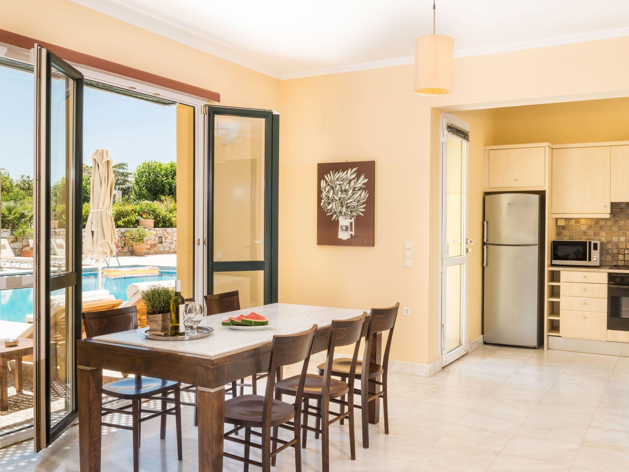 Next to the living room, there is the dining area, with a lovely view to the swimming pool. At the fully-equipped kitchen, you can prepare any specialty you desire.