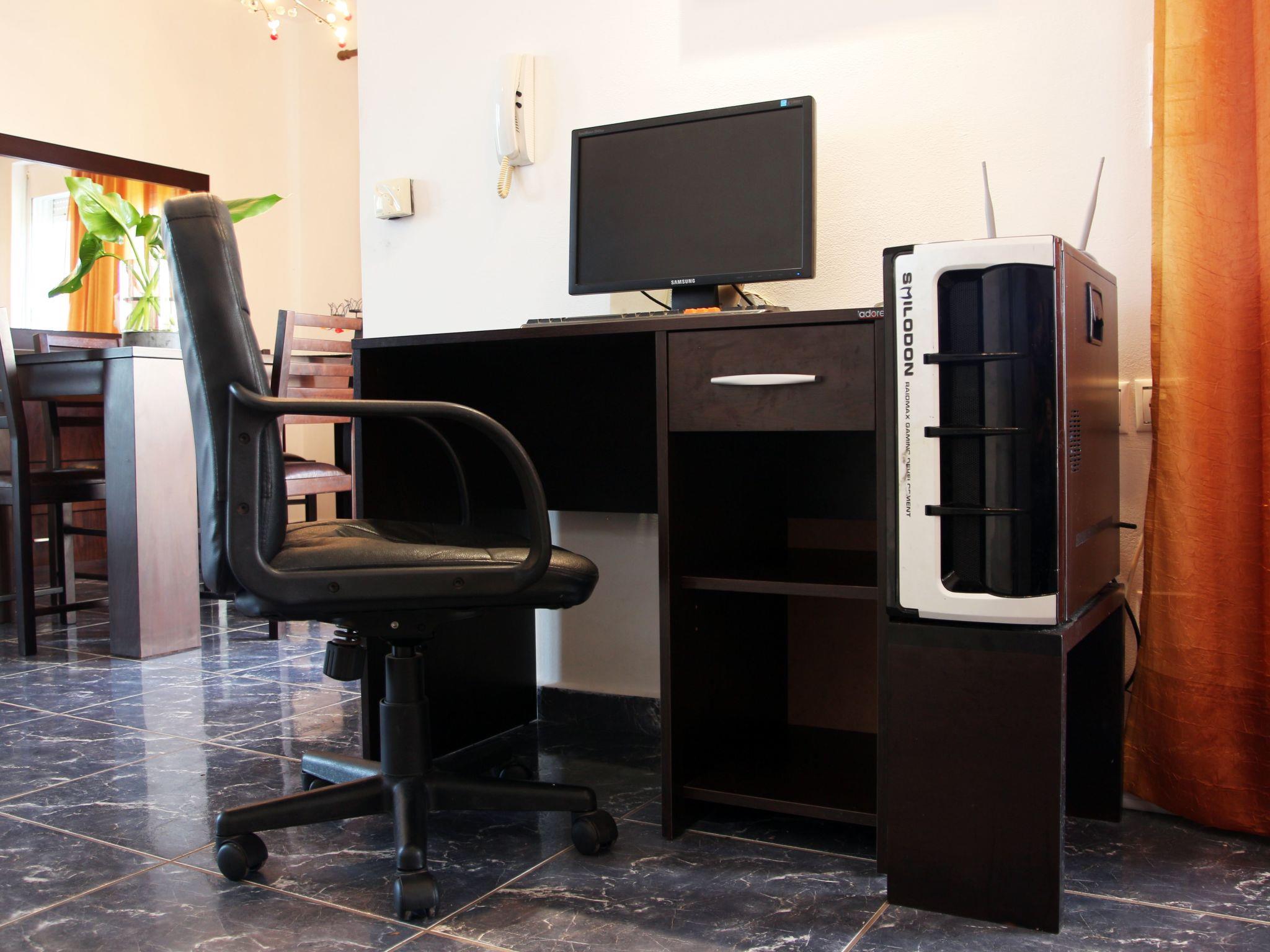 A villa you selected has the following conveniences Private outdoor pool with jet streams •Barbeque in top roof •Safe box in each villa •Air conditioners (WARM - COLD) with ionizer •flat iron, clothes rack, ironing board •hair drier •solar and electric water heater •high chair for a baby •baby bed •Baby Stroller •Cable / Satellite TV in the living room plasma 32" •Hi-tech audio-visual electronics •Desktop PC with free high speed Internet connection ( TFT screen, connection camera ) •Free internet (WIFI) in the whole area •Refrigerator, electric oven, microwave oven, dishwasher, fryer, toaster, boiler, coffee machine, blender •Washing machine •Complete utensils in the kitchen for food preparation. •In winter ( November - April) operates heater 40000 therm.