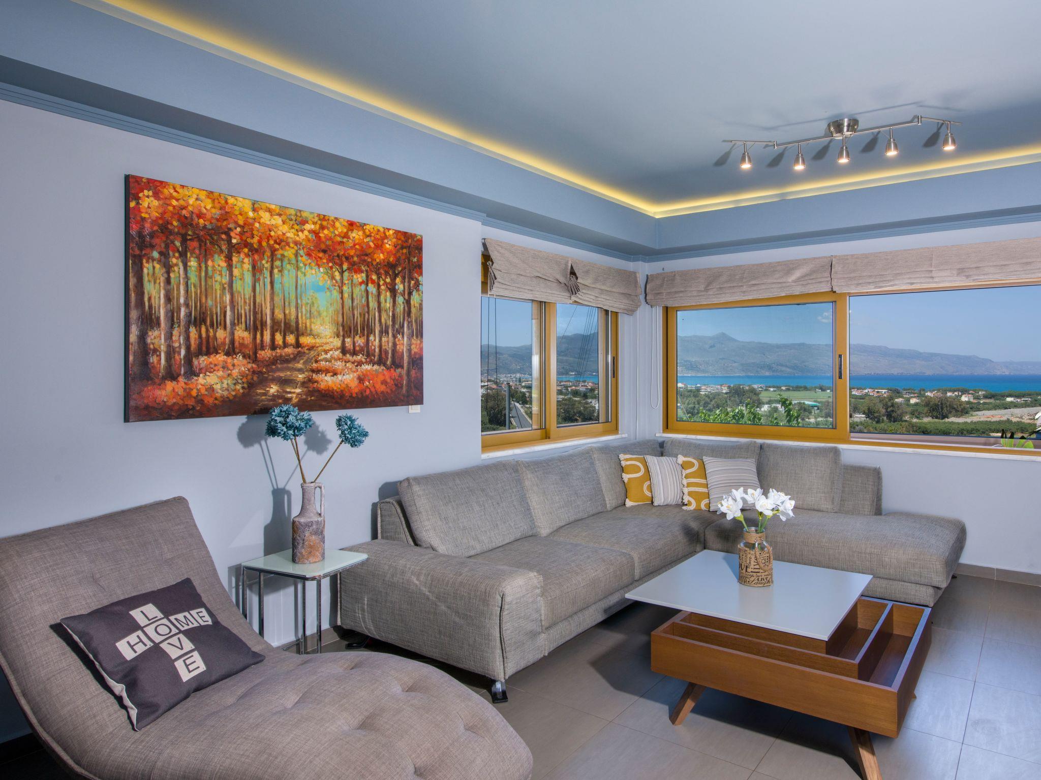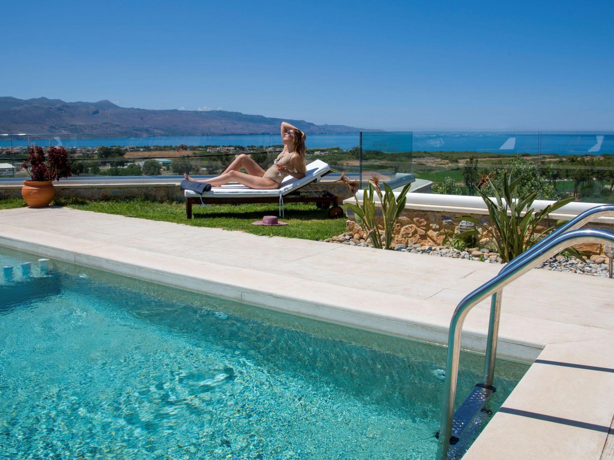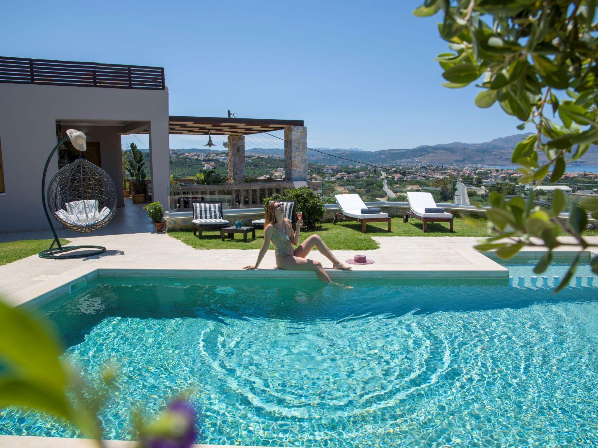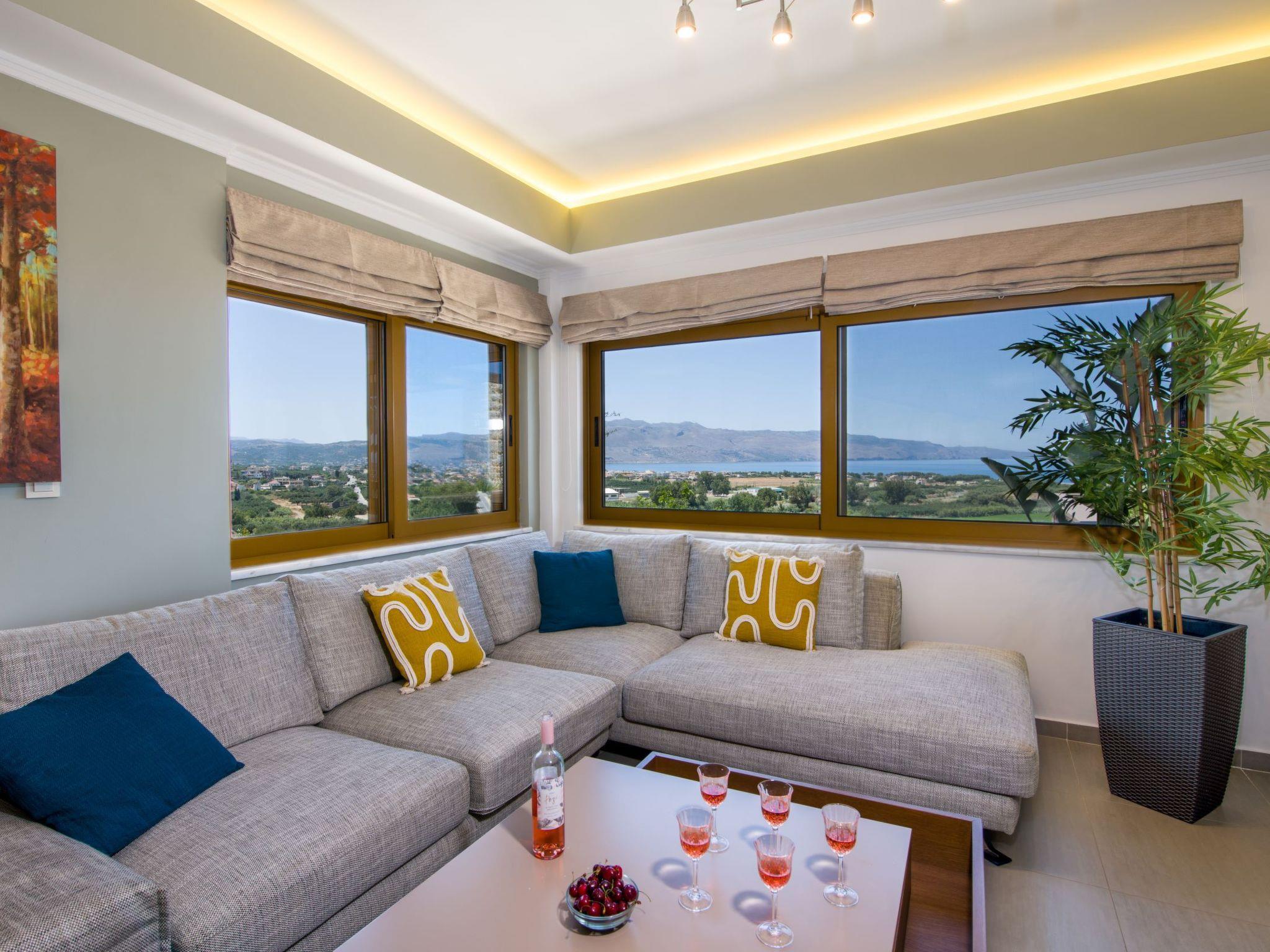 The privileged location of the villa offers beautiful views of the Kolimpari gulf, the mountains and the blue Cretan Sea.