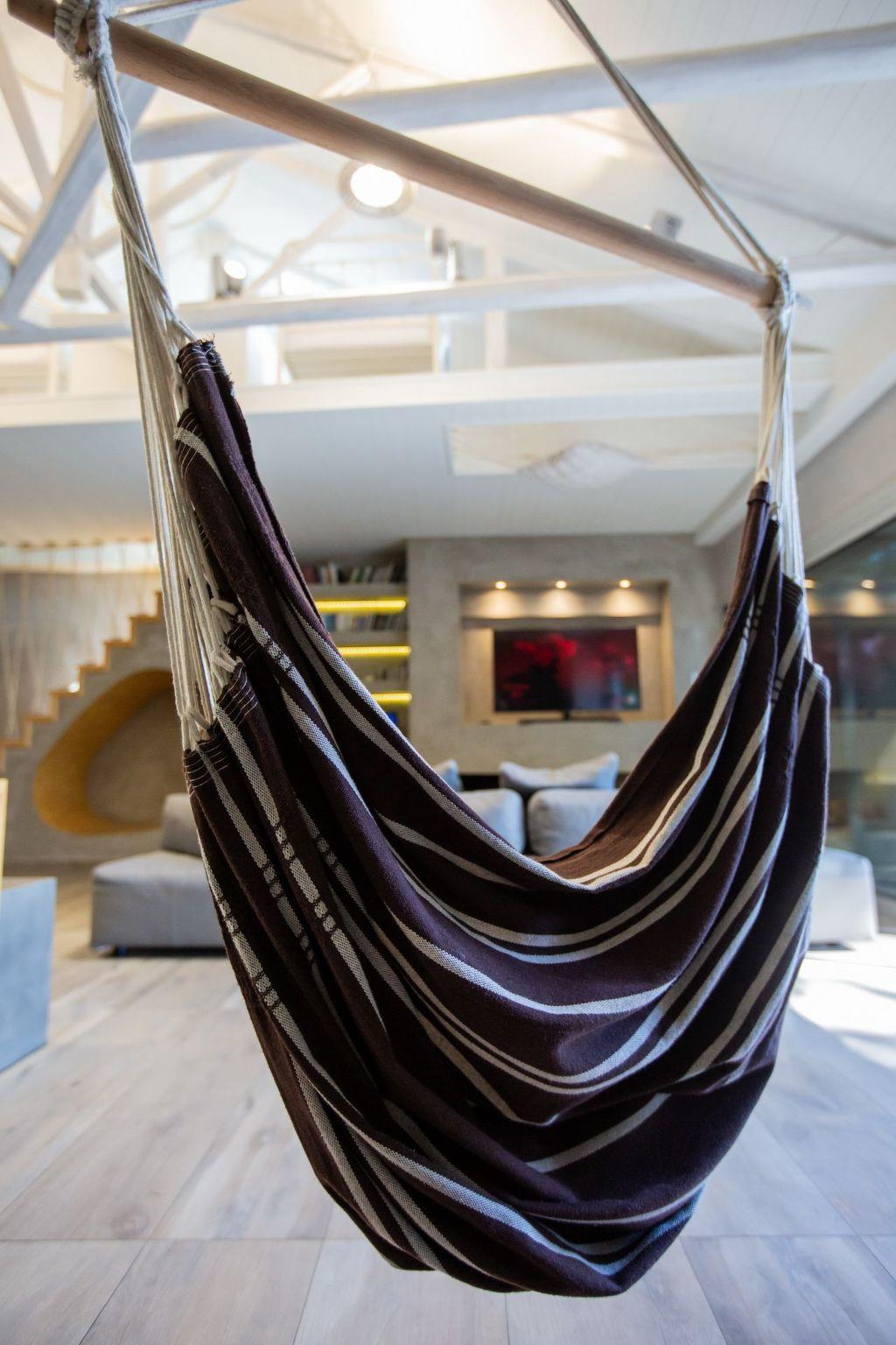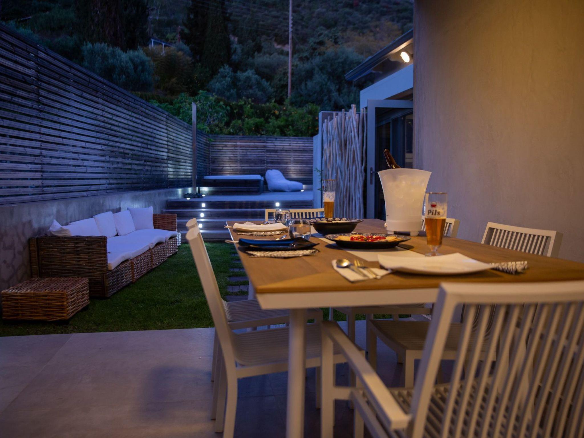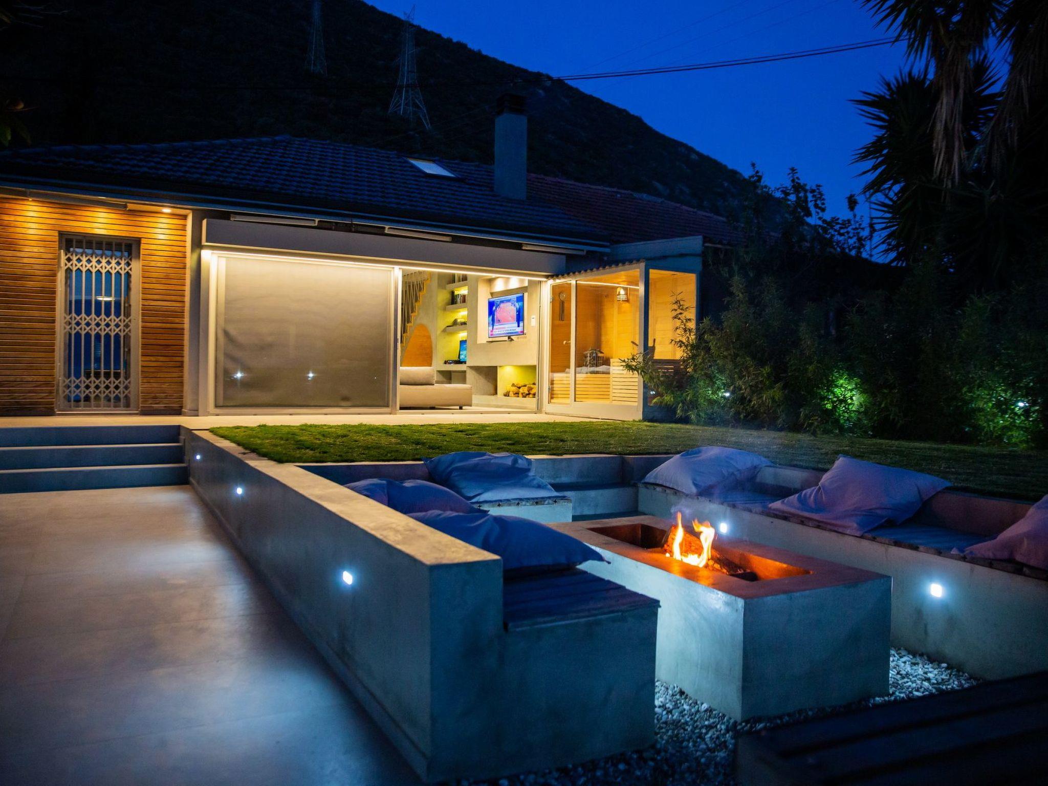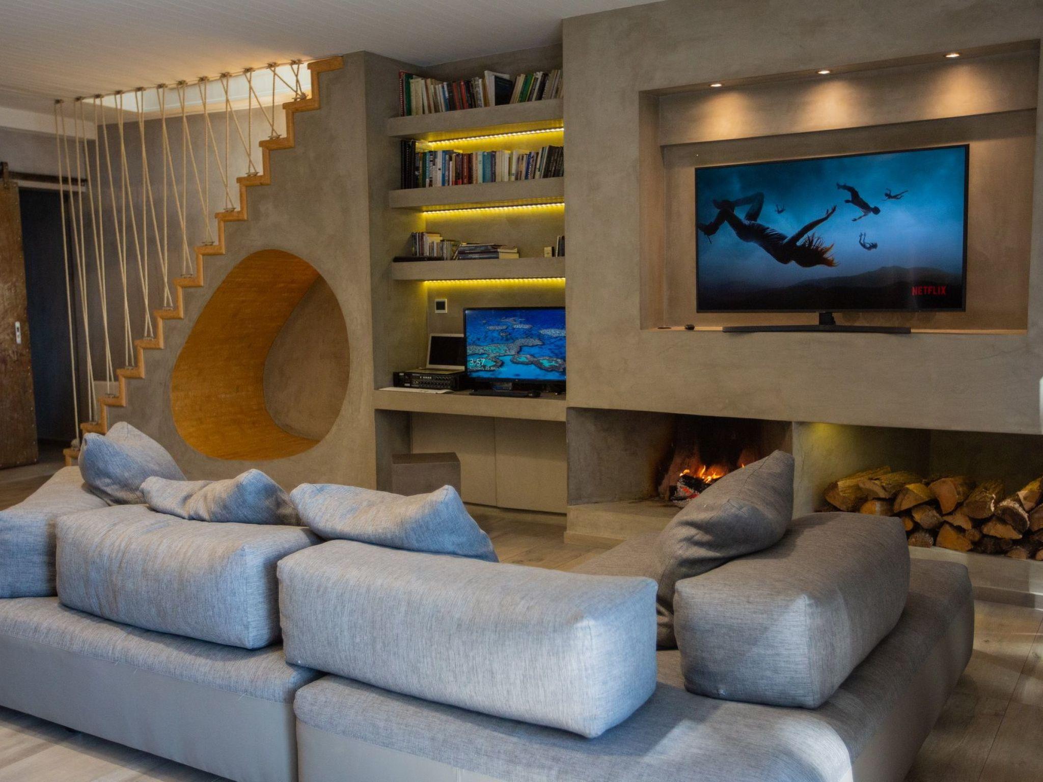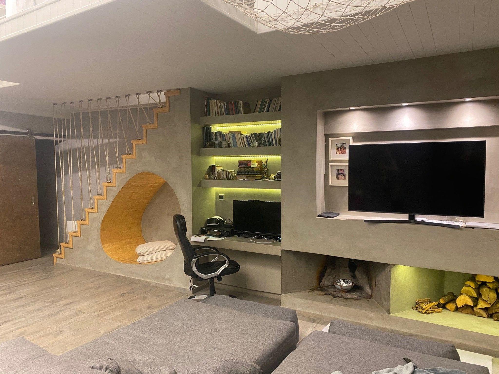 It’s built in with the sea” as it is only 10 meters away from it and is located in the best part of the beach, under plane trees and near a small sea platform. It is a charming and spacious villa of 130sq.m with large spaces and a bright living room facing to the south. This luxurious two-story villa with two bedrooms and two bathrooms can provide accommodation for up to six people. The combination of tall wooden ceilings and large glass doors allows a stunning view on the sea, the Rio-Antirio bridge, a small picturesque church and the Peloponnesian mountains.“ This villa is an absolute smart home, renovated with today’s highest standards of house construction and accomplishes the in-out living perfectly.On the ground floor there is a beautiful living room with a fireplace and a 55” television, an open spaced kitchen with an island fully equipped with branded built-in electrical devices, a dedicated multimedia workspace, and a built-in “nock” couch all in the same open space.There is also a large master bedroom with a king size bed, a double doored closet, a bathroom with two sinks and an in-out shower with multiple water ejectors. Finally there is an extraordinary WC, a large walk-in closet and a laundry room. On the second floor (attic) there is a bedroom with 2 single beds, 2 hammock beds, a desk with a bookcase and a roof window that offers a unique view and brightens up the place.
