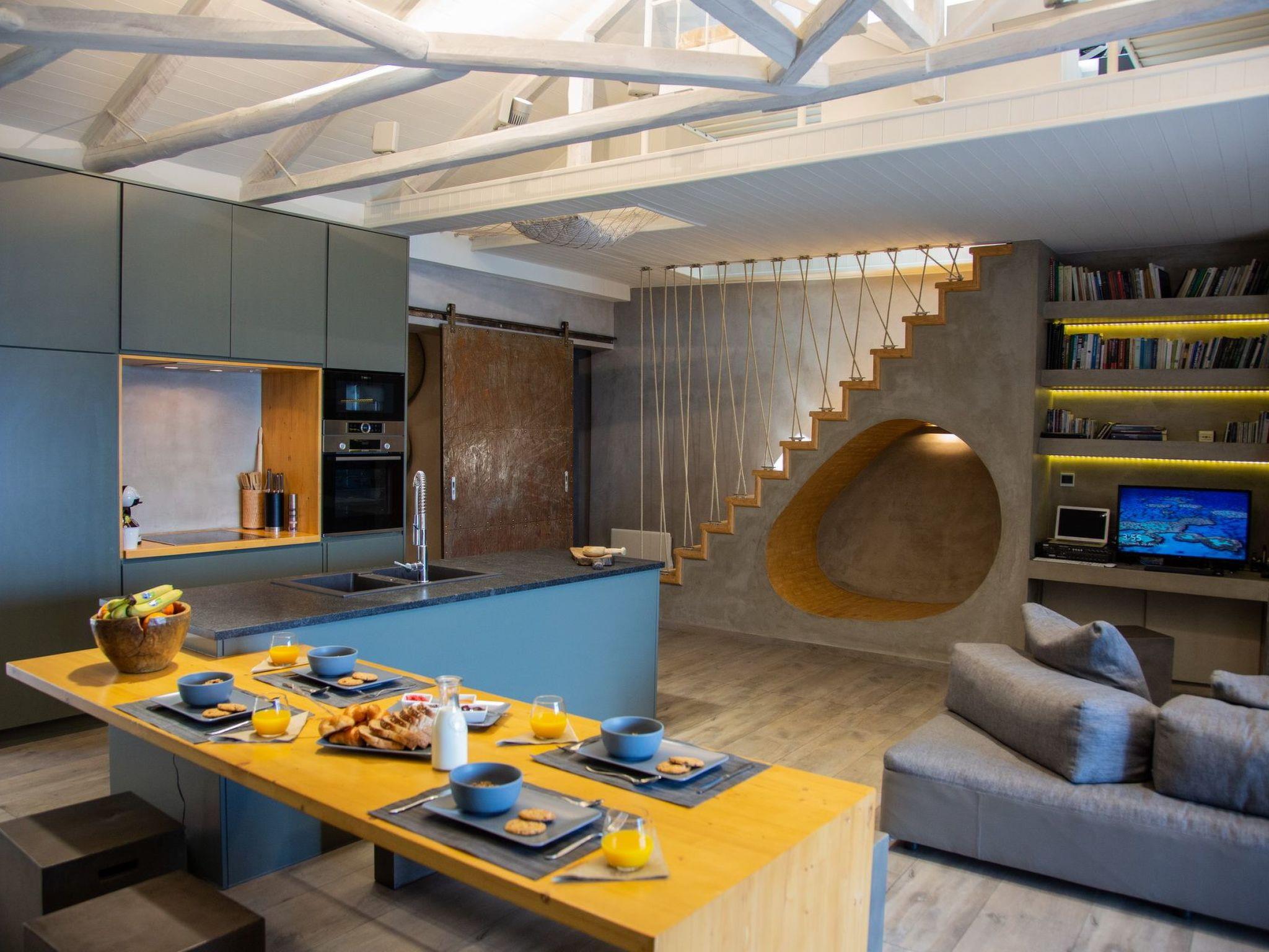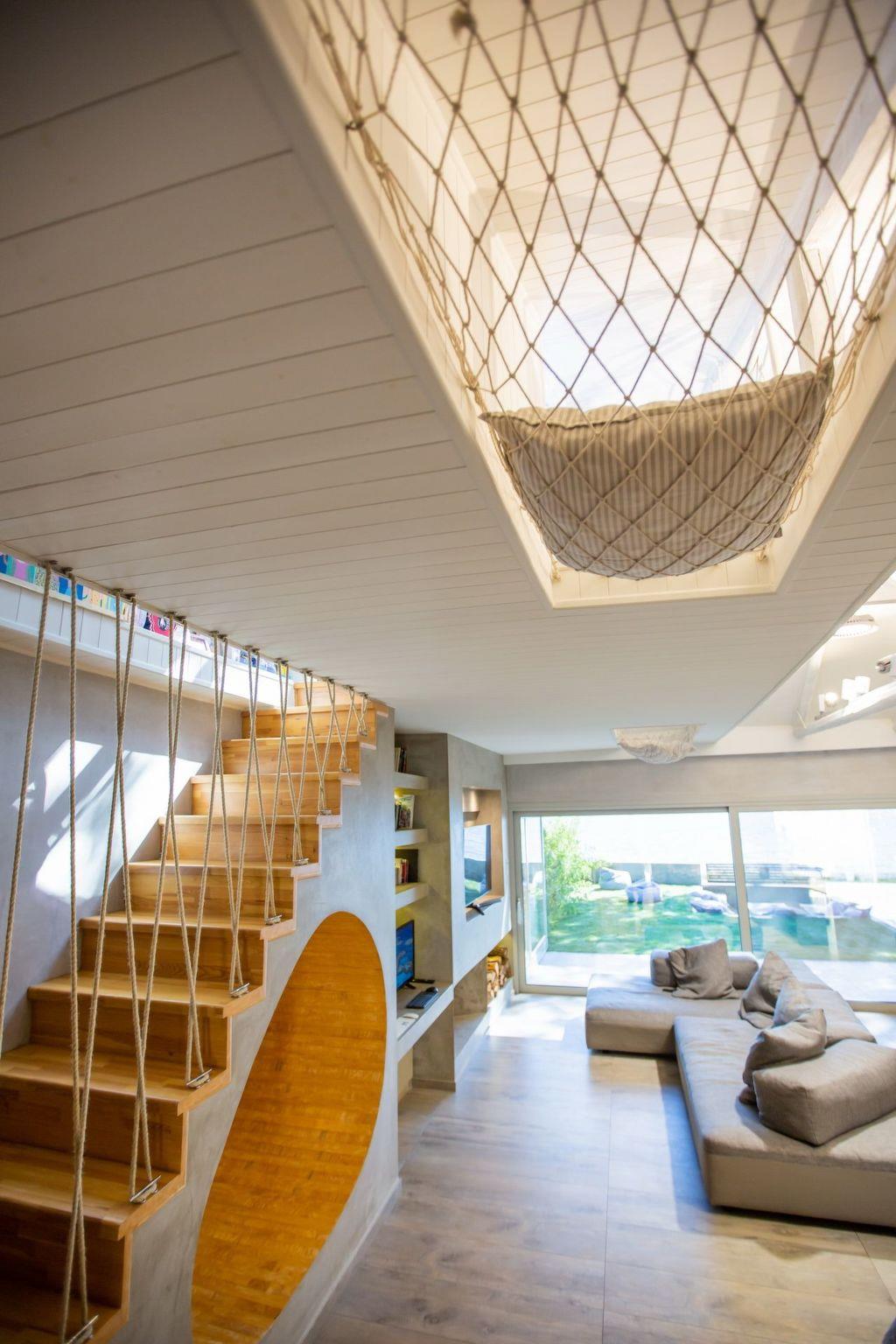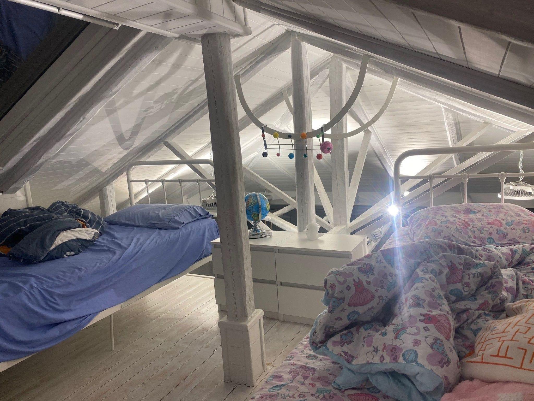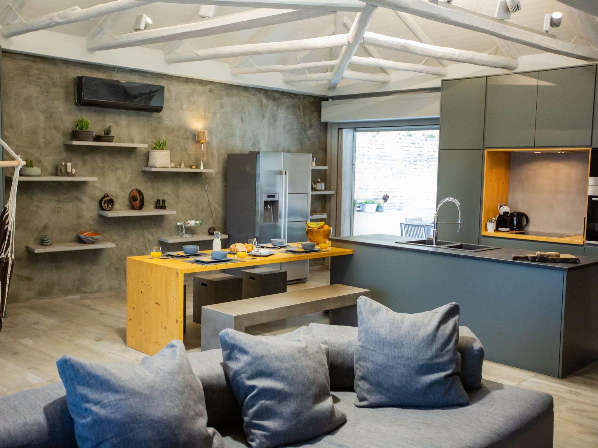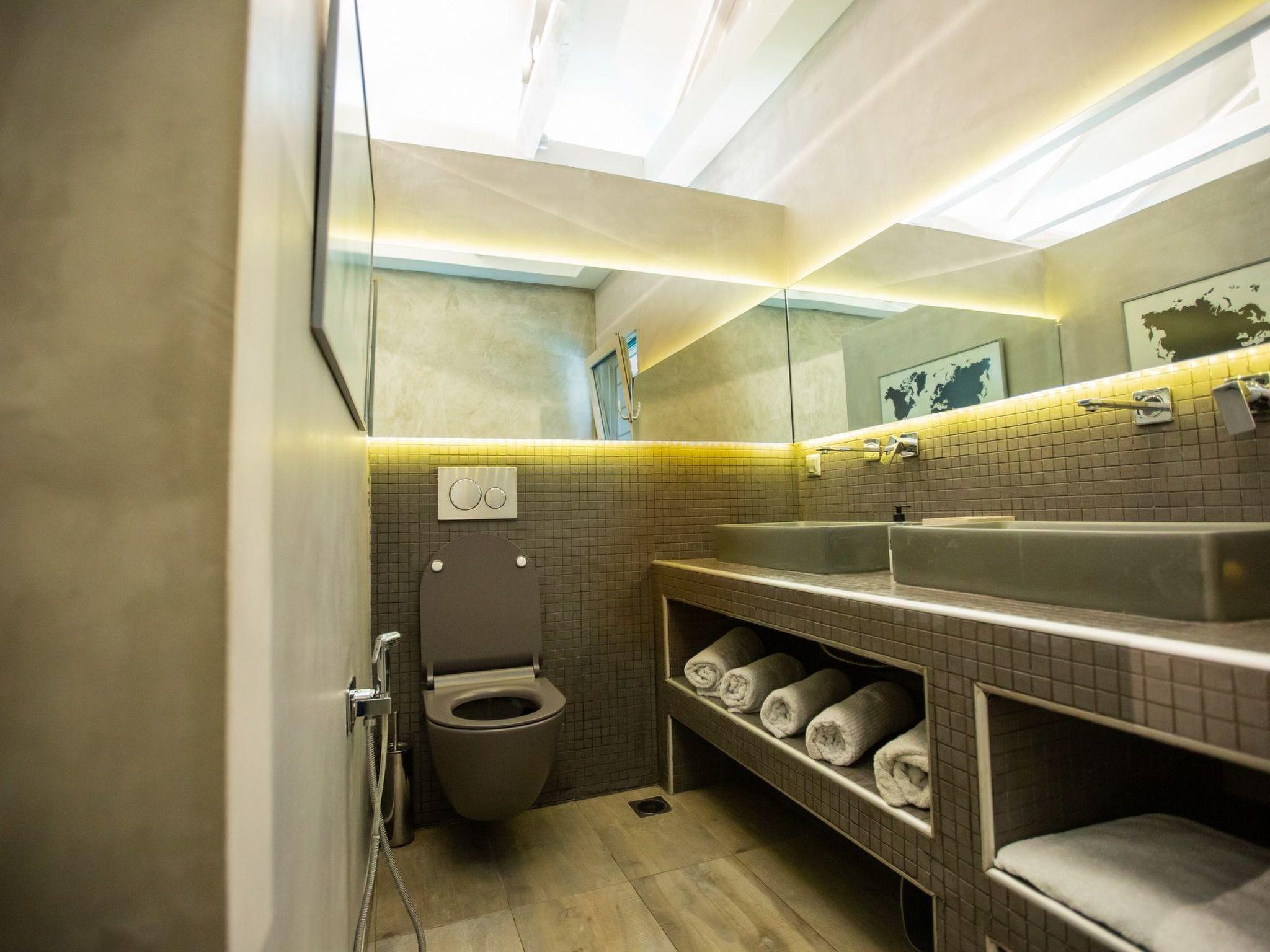 It’s built in with the sea” as it is only 10 meters away from it and is located in the best part of the beach, under plane trees and near a small sea platform. It is a charming and spacious villa of 130sq.m with large spaces and a bright living room facing to the south. This luxurious two-story villa with two bedrooms and two bathrooms can provide accommodation for up to six people. The combination of tall wooden ceilings and large glass doors allows a stunning view on the sea, the Rio-Antirio bridge, a small picturesque church and the Peloponnesian mountains.“ This villa is an absolute smart home, renovated with today’s highest standards of house construction and accomplishes the in-out living perfectly.On the ground floor there is a beautiful living room with a fireplace and a 55” television, an open spaced kitchen with an island fully equipped with branded built-in electrical devices, a dedicated multimedia workspace, and a built-in “nock” couch all in the same open space.There is also a large master bedroom with a king size bed, a double doored closet, a bathroom with two sinks and an in-out shower with multiple water ejectors. Finally there is an extraordinary WC, a large walk-in closet and a laundry room. On the second floor (attic) there is a bedroom with 2 single beds, 2 hammock beds, a desk with a bookcase and a roof window that offers a unique view and brightens up the place.