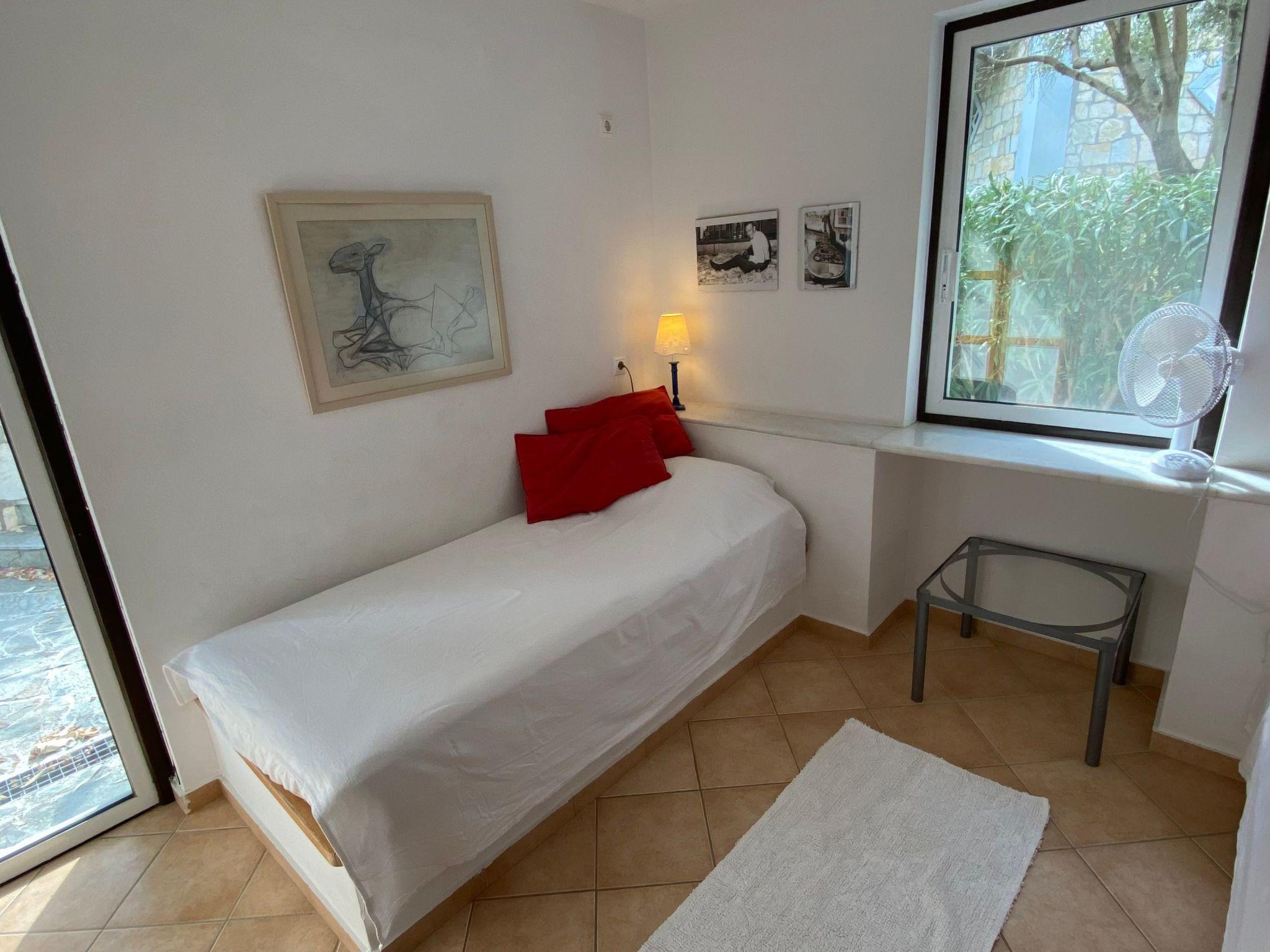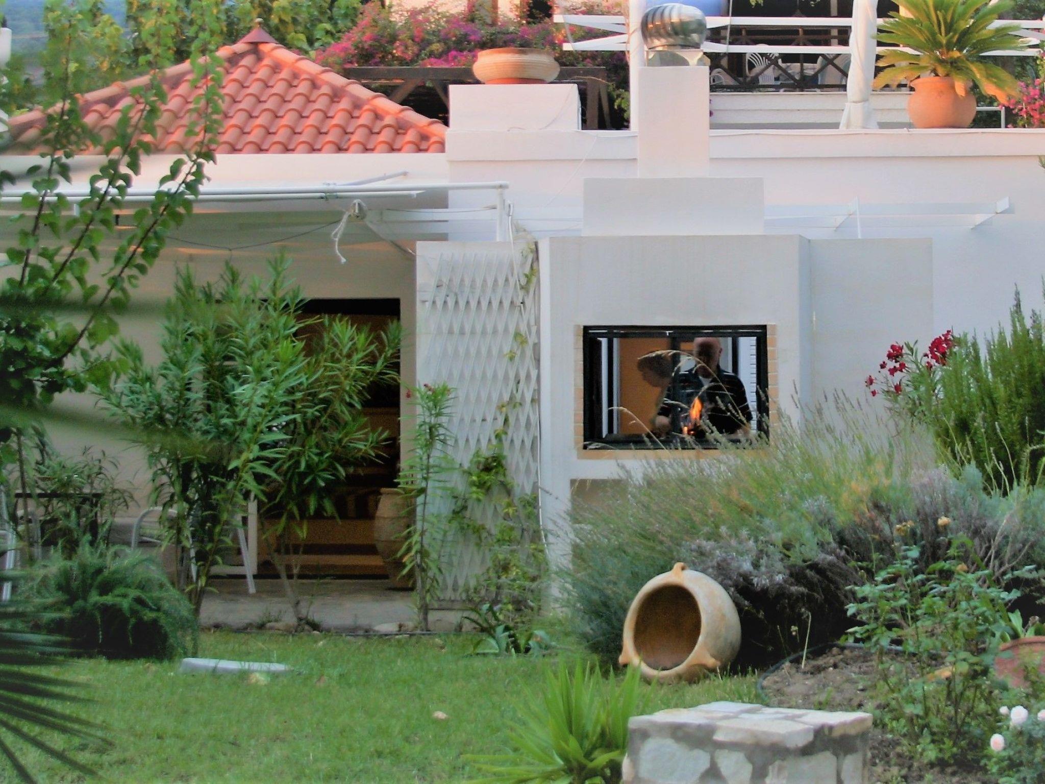 The interior of the house has been carefully selected to make your stay as pleasant as possible. There is a washing machine for your exclusive use, so you don't have to do without fresh clothes even during a longer stay. The kitchen is well equipped for self-catering with a ceramic hob, dishwasher, coffee machine and kettle. On cooler evenings, the fireplace creates a cosy atmosphere, while the air conditioning system provides pleasant cooling on hot days. Two fans provide additional fresh air.