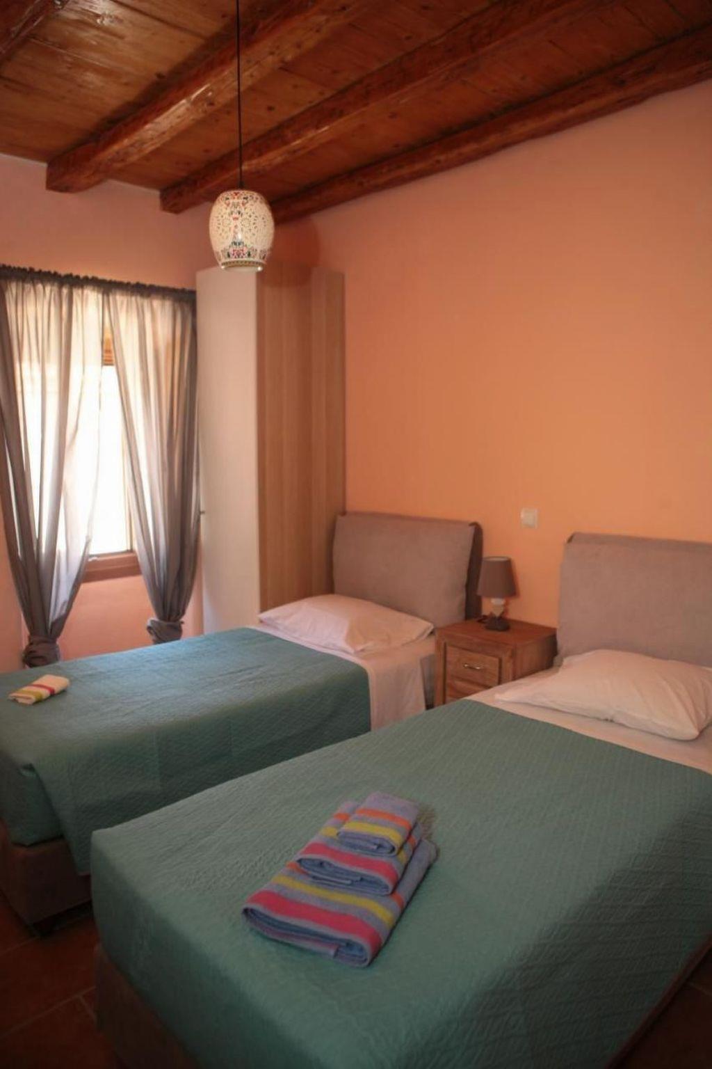 An old stone staircase leads to the big outside balcony on the first floor, where you can have your breakfast in the morning watching the nice view around or enjoy your drink at night watching the millions of stars in a clear sky. As you enter to the house, there is on the right side, The master bedroom with king size bed facing from the window the outside alea and the hill across, while from the inside bathroom's window the view to the village and the sea is catching your eye. On the left side of the floor exist Another double bedroom and A two single beds room sharing a bathroom. In between the bedrooms there is the living-dining room and kitchen place where you can enjoy as well the 42 inches flat satellite TV either laying in the huge couch or sitting in the Chesterfield leather sofa.