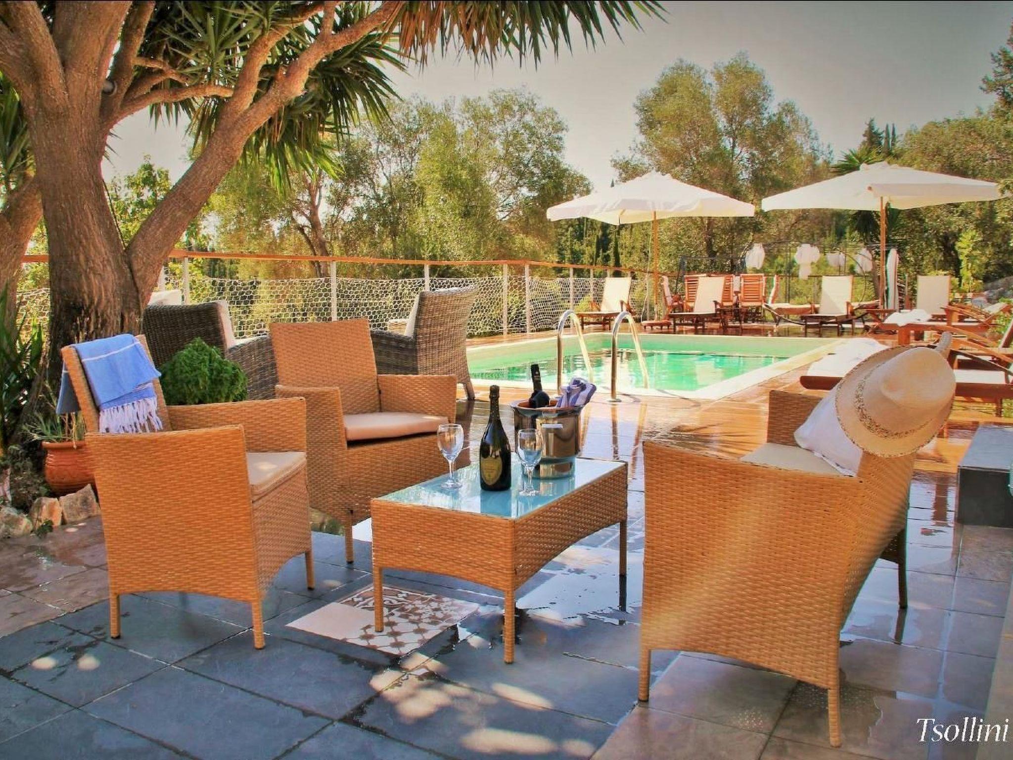 Outside there are the courtyards in different levels ,the gardens, full of trees, flowers, spices and herbs and the swimming pool size 4,5 x 7 with surrounding area of 150 square meters where you can spend a whole day swimming and lying in the sun, resting and reading under the shadow of our Giouka Tree, or dinning under the kiosk. But most spectacular will be the full moon nights when the moon arises from the mountain of Ithaka across and the moonlight sparkles in the sea. All these makes it the most spectacular place to be enjoyed day and night for pleasure and fun to make your holidays a dream.