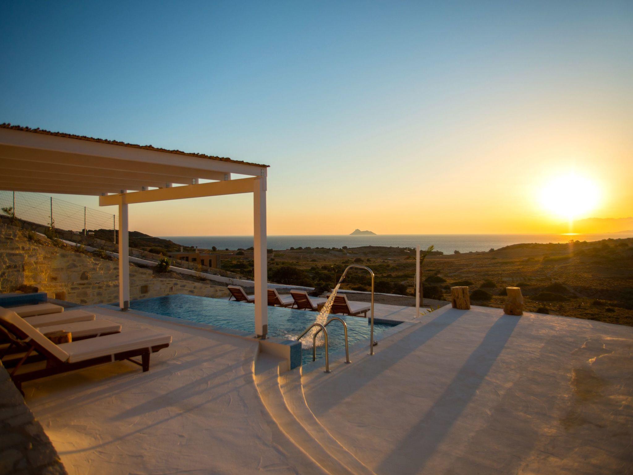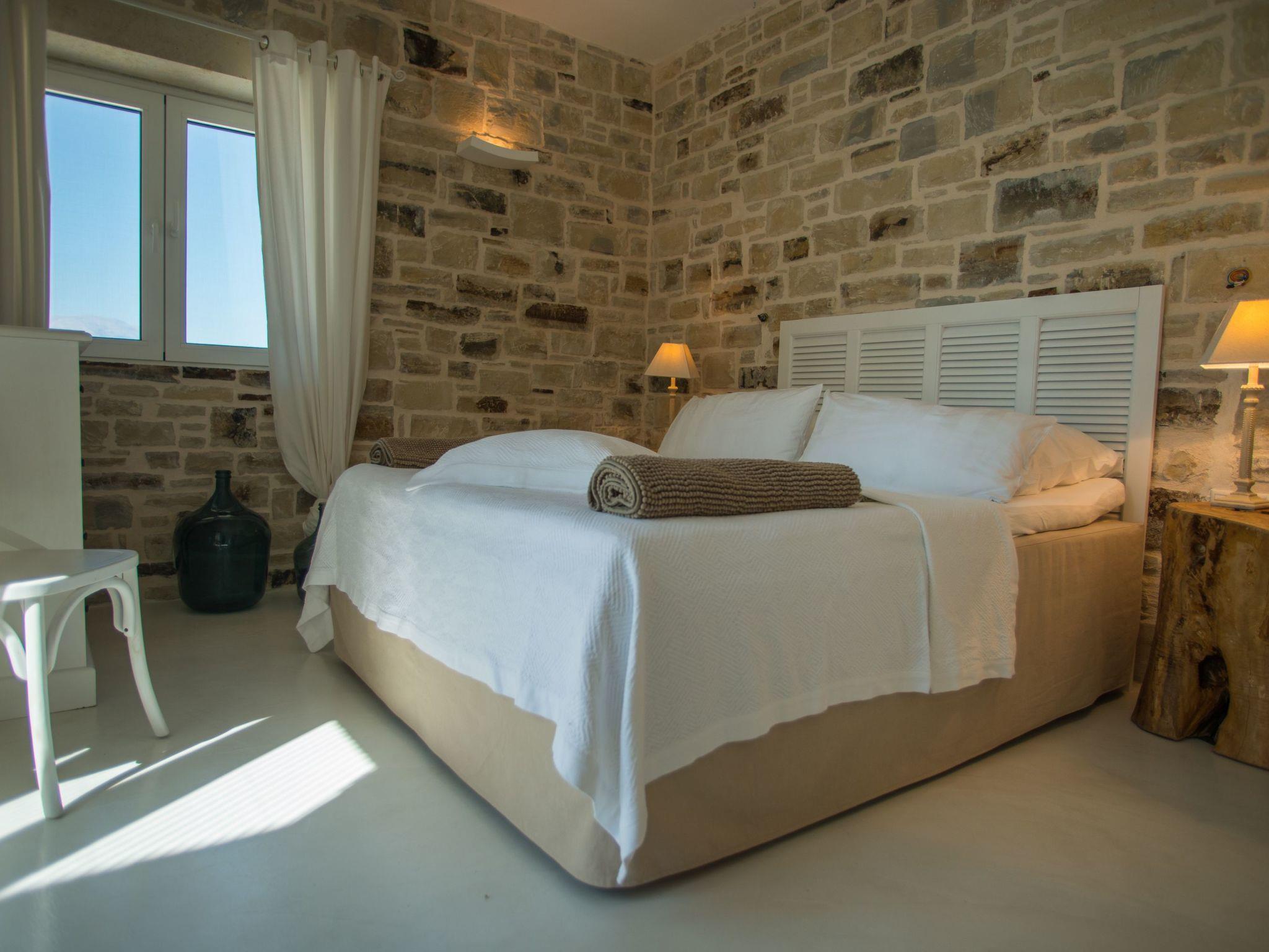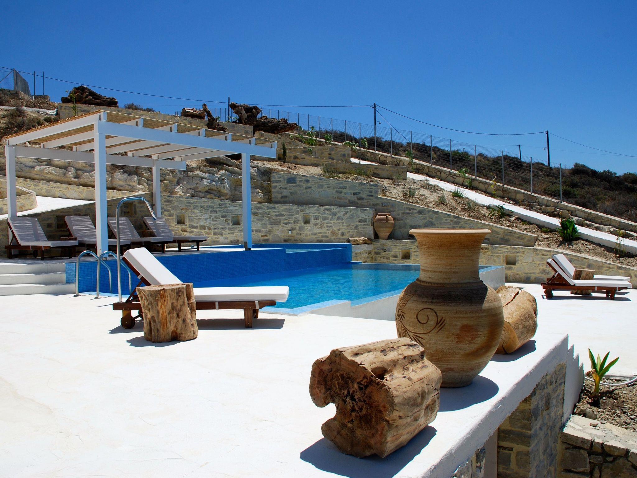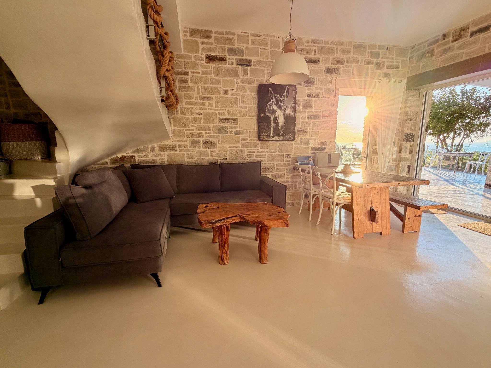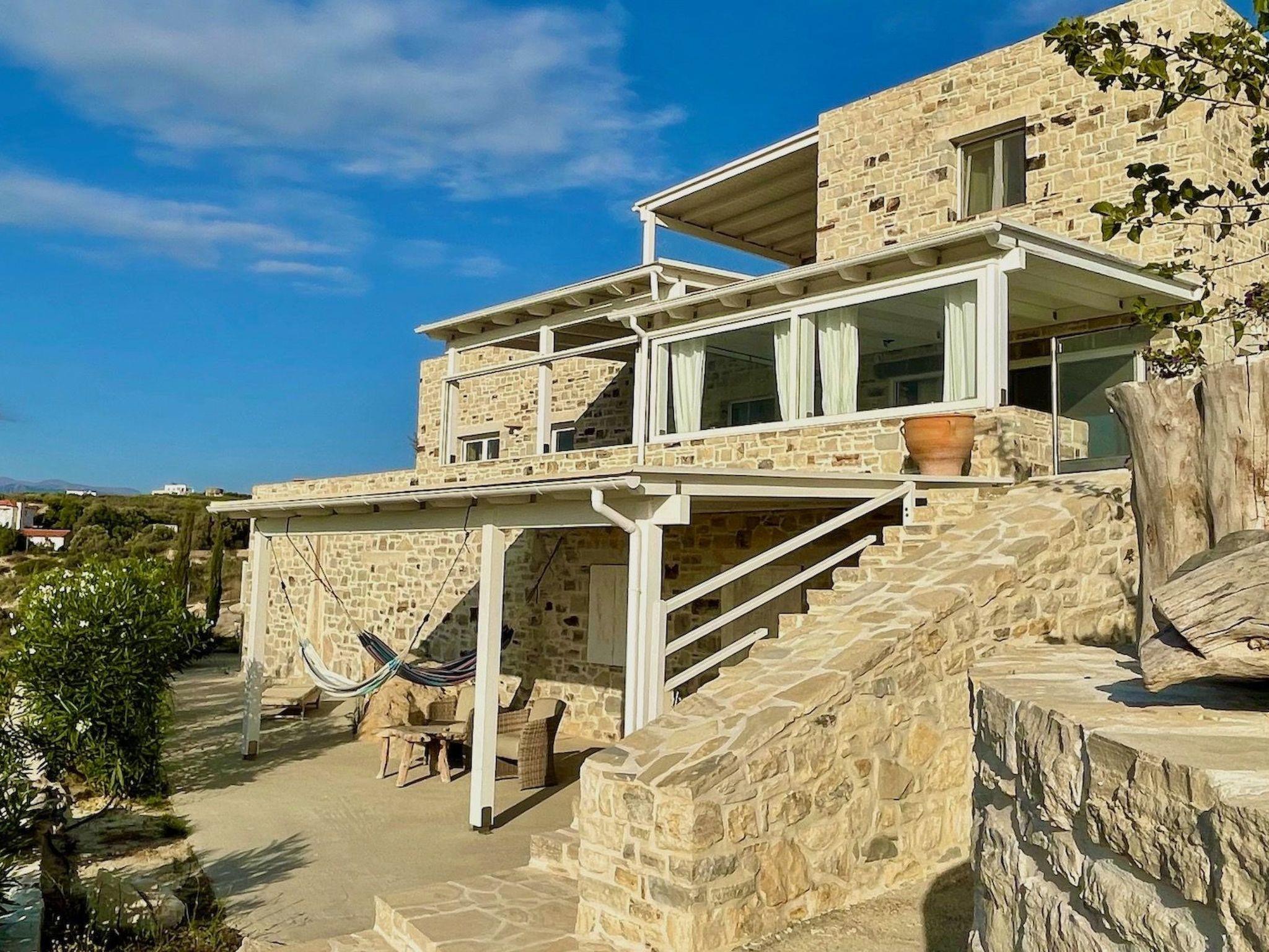Villa Inia, beach house, natural stone villa in a top location with a fantastic view of the sunset in the Libyan Sea, olive groves and the Ida Mountains.