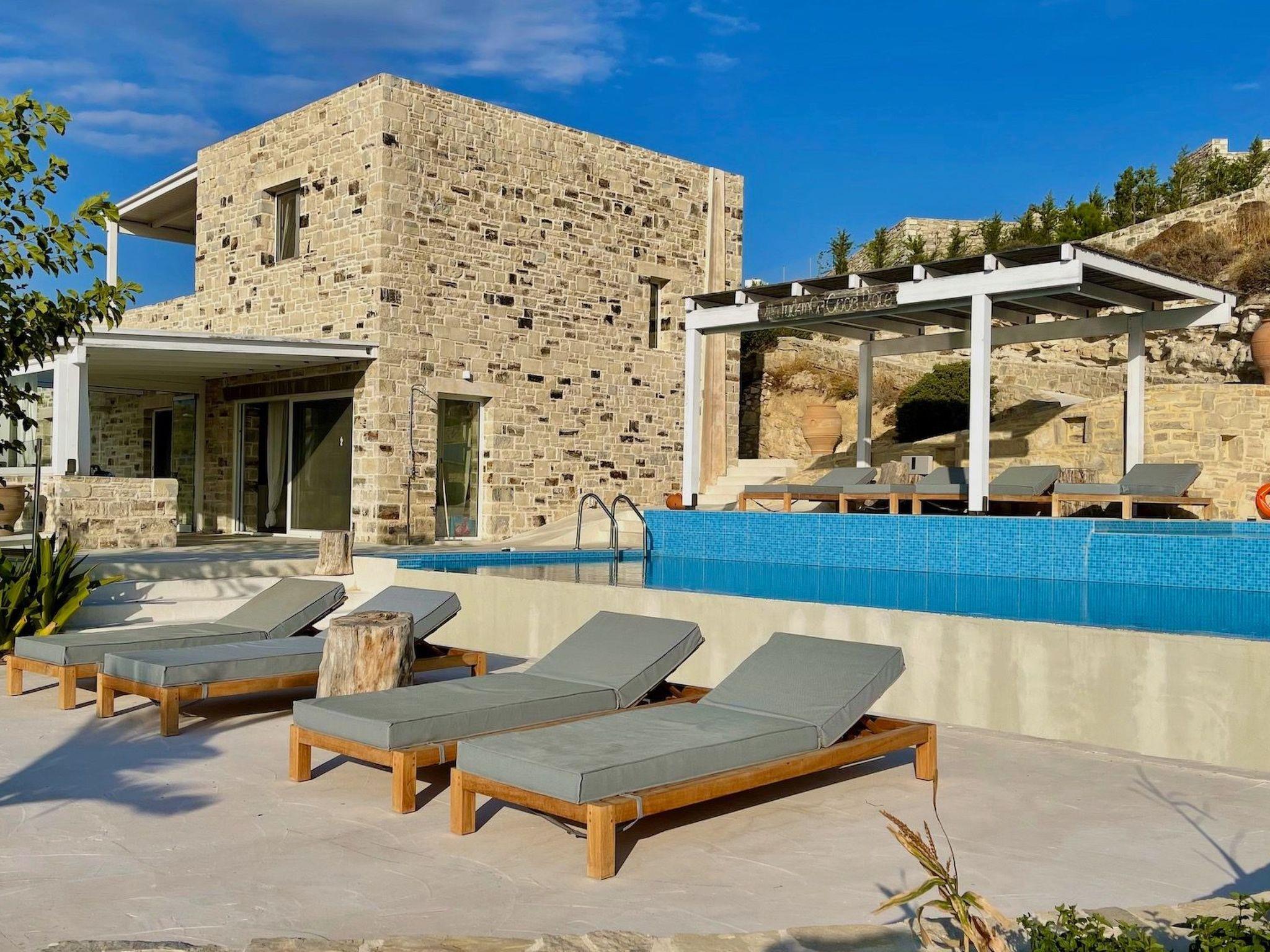 Detached holiday villa in a quiet hillside location on the outskirts of Pitsidia towards Komo beach, built of beautiful natural stone. With 370 m² of indoor and outdoor living space including 4 terraces, Villa Inia offers comfortable accommodation for a total of eight adults. Individually designed furnishings made of natural wood and stone await you. For your restful sleep, the beds in the bedrooms are made of pure natural materials from the award-winning brand CocoMat. The family service and personal on-site support round off your wonderful holiday. Villa Inia is very comfortably equipped so that you can feel at home on your well-deserved holiday and don't have to do without anything. You will also find free WLAN throughout the house and the terraces.