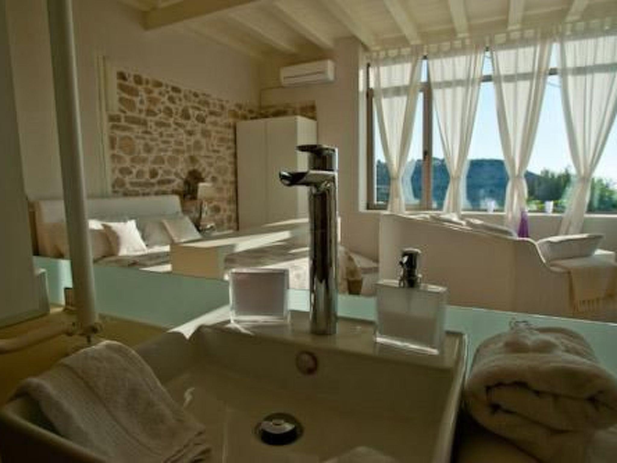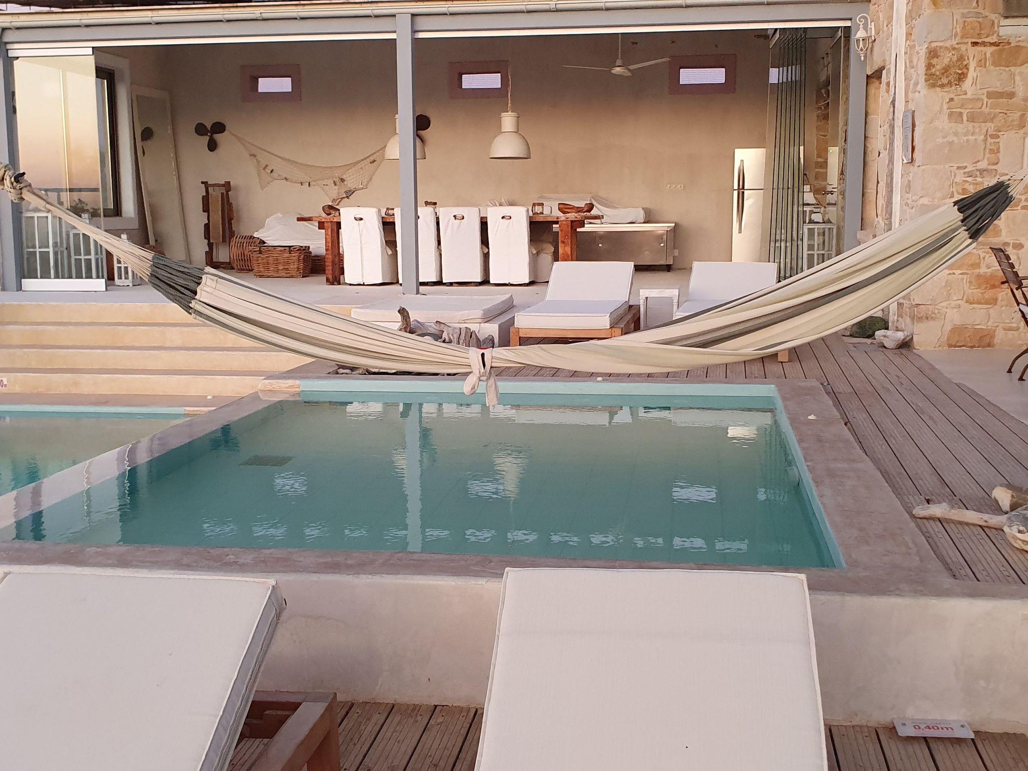 The further highlight of Villa Thea is the heated infinity swimming pool without chlorine, equipped with a salt filter system, from the children's pool 2m x 3.50m with whirlpool function you can glide into the 5m x 9m x 1.50m swimming pool. This is also equipped with a splash shower for massage treatments. Green garden with palm and fruit trees and olive grove, 2 parking spaces are at your disposal. A barbecue and fireplace are available, nudism is possible.