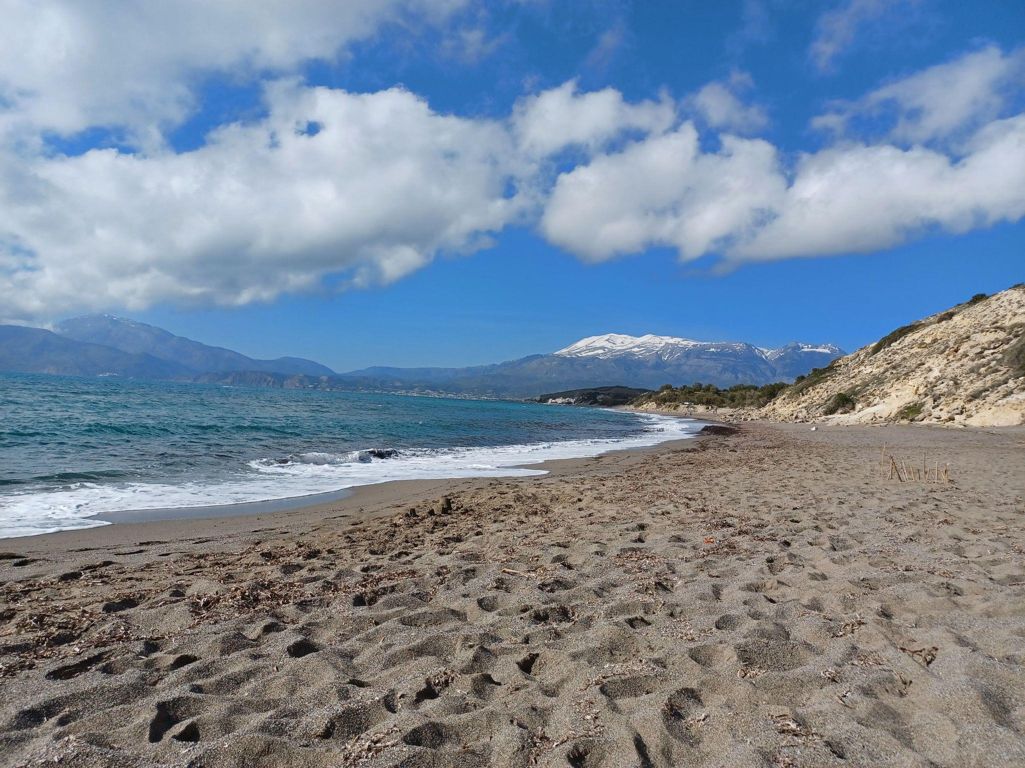 The extensive beach (Komos) is about 2 kilometres away and can be reached by car in about 5 minutes. It is one of the most beautiful sandy beaches in Crete and, with a length of approx. 5 km, offers crystal-clear water, opportunities for walks, dives and trips by canoe or SUP. Part of this beach is for nudists.
