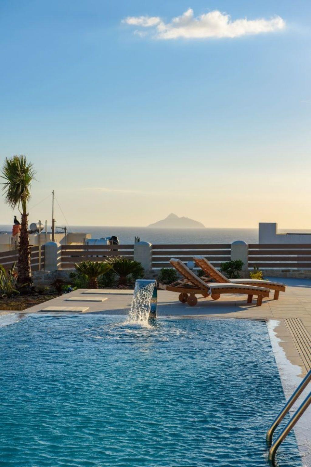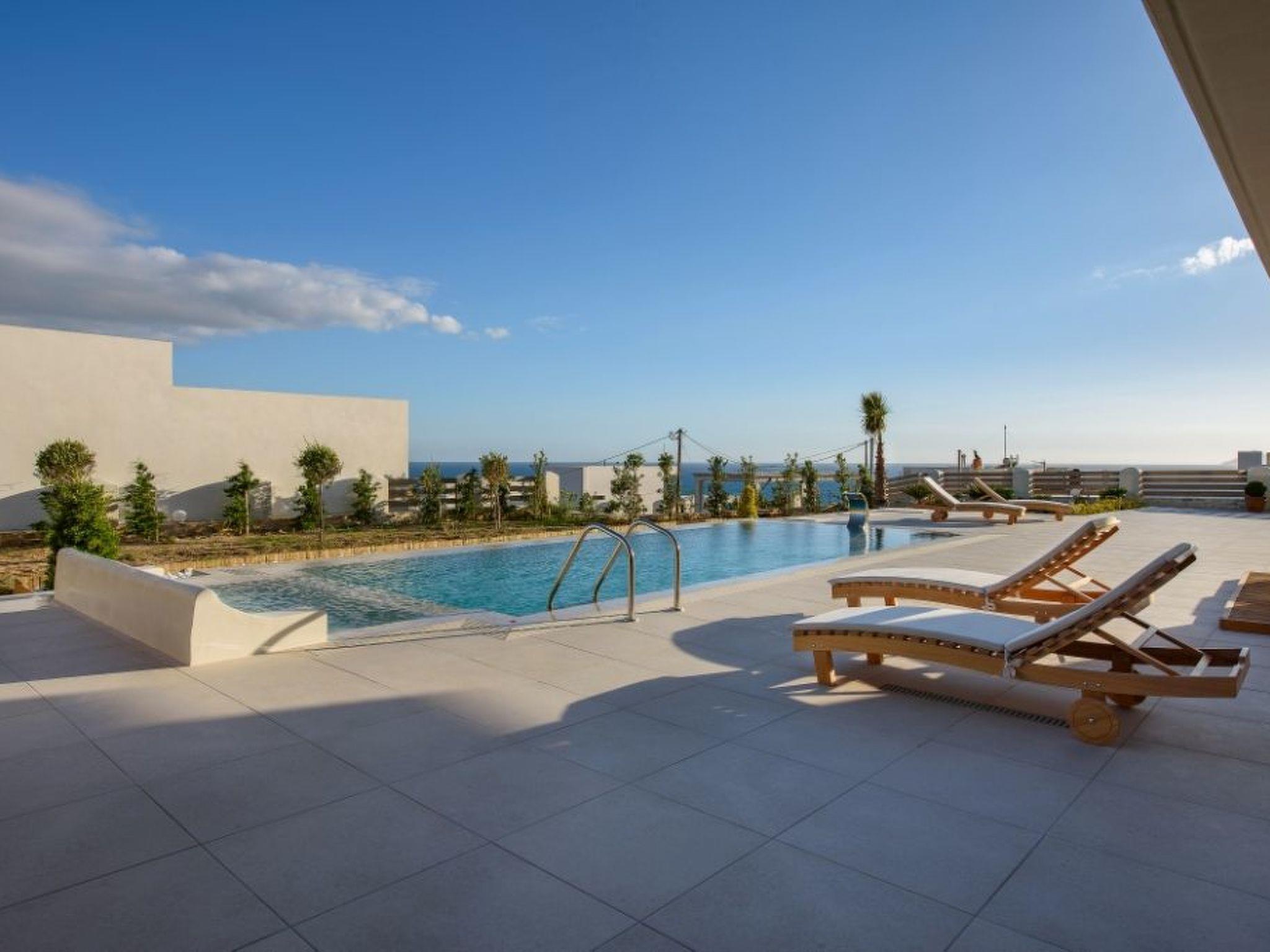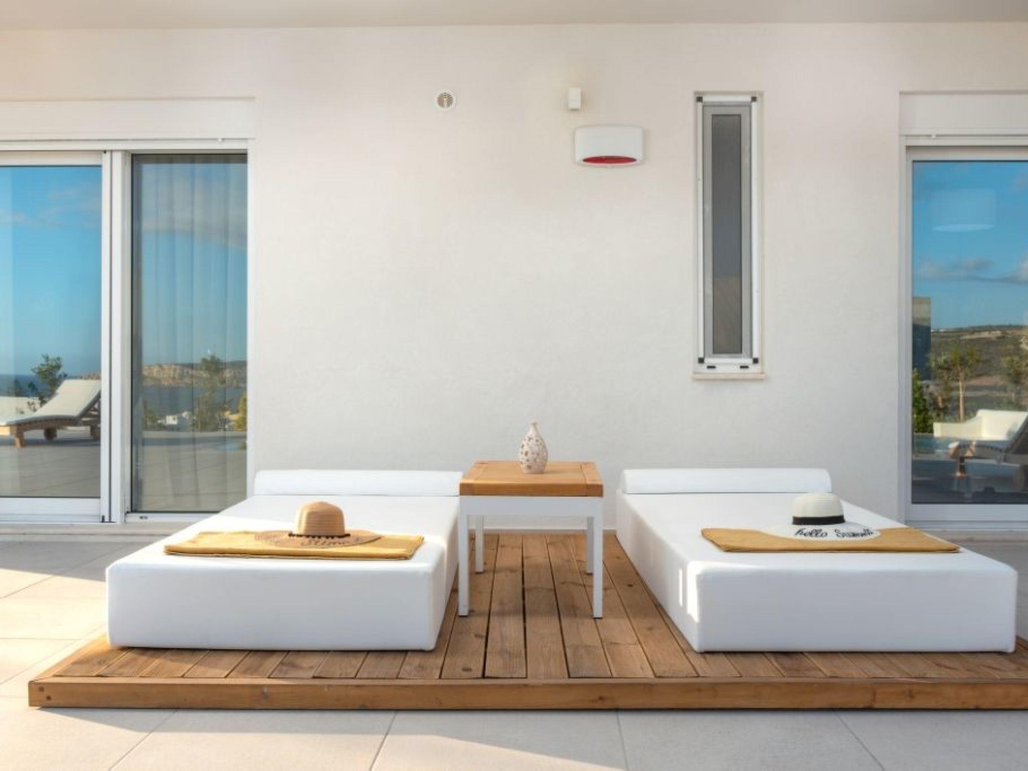 Large panoramic windows offer spectacular views of the Libyan Sea and the Paximadi Islands. If you are a nature lover and long for peace and quiet, this modern villa is the perfect choice for you. The villa, which has an open-plan kitchen/living room, a large sofa bed, 2 airy bedrooms with double beds 1.60 m x 2.00 m, 2 bathrooms and a guest toilet, can comfortably accommodate up to 6 people. The tasteful living area and the fully equipped kitchen with dining area, the large balcony, 43sqm, with seating area and dining table give an unobstructed view of the sea and in the evening of fantastic sunsets.