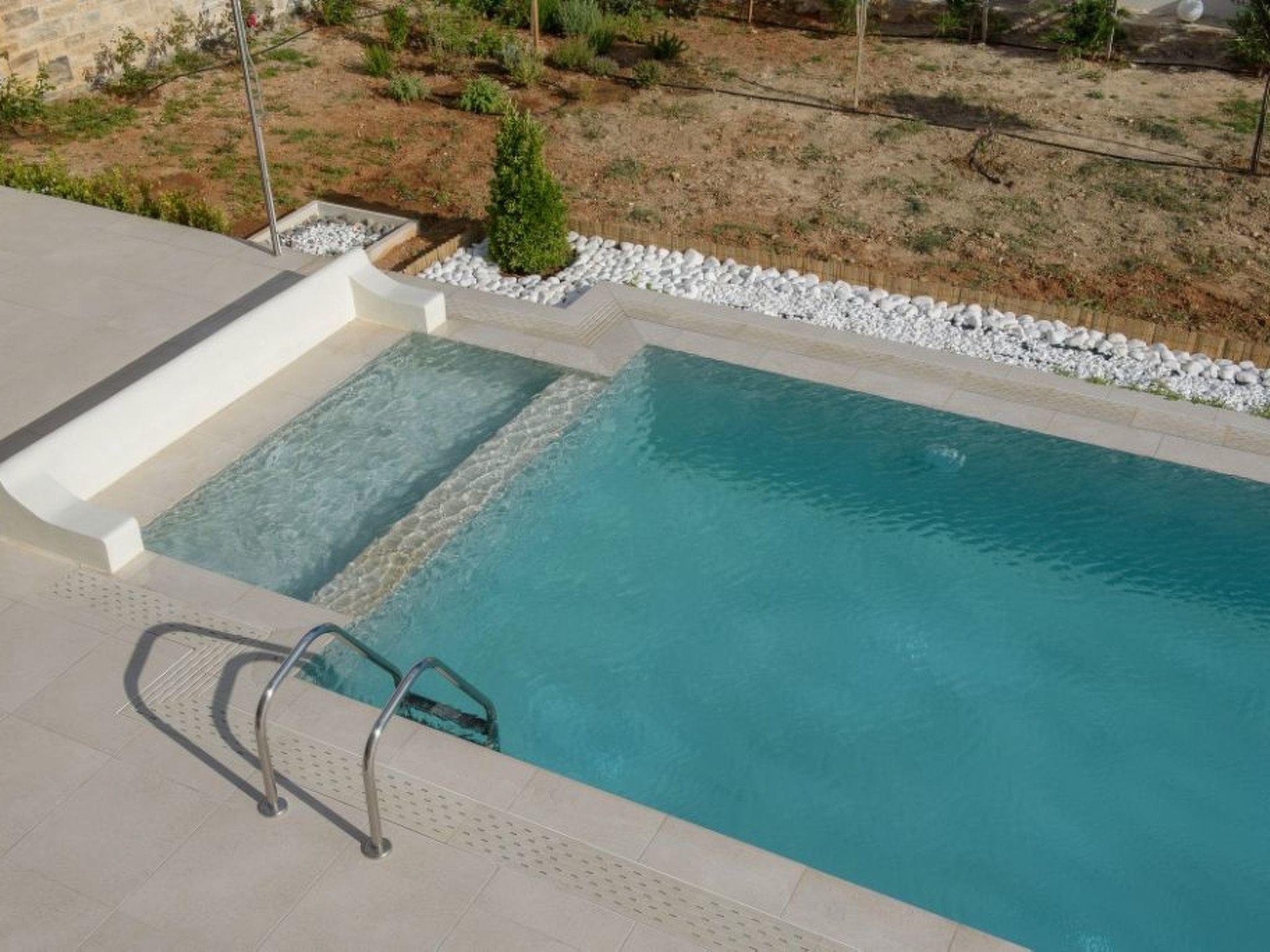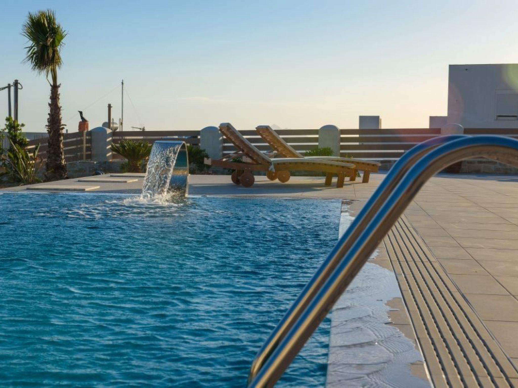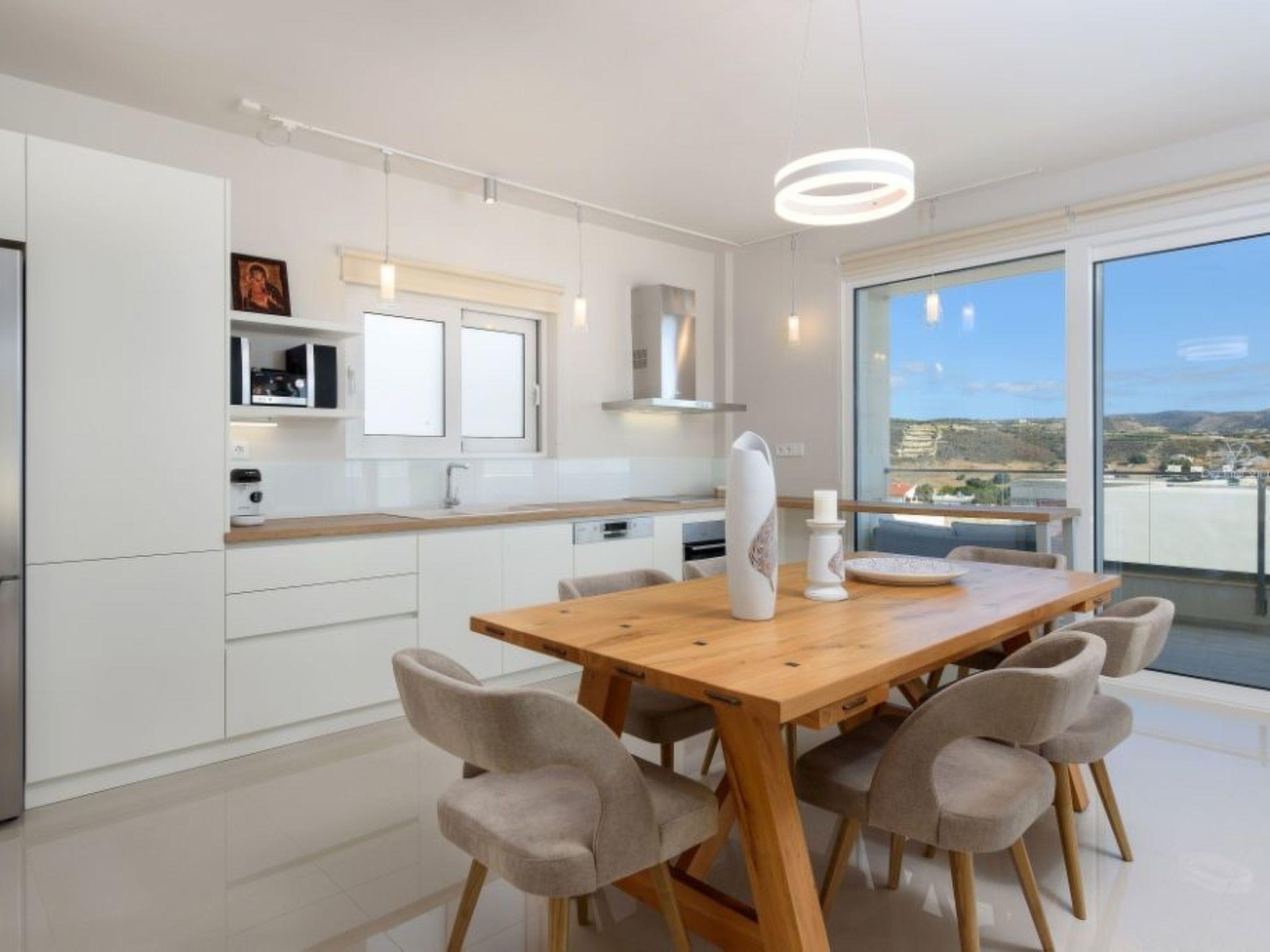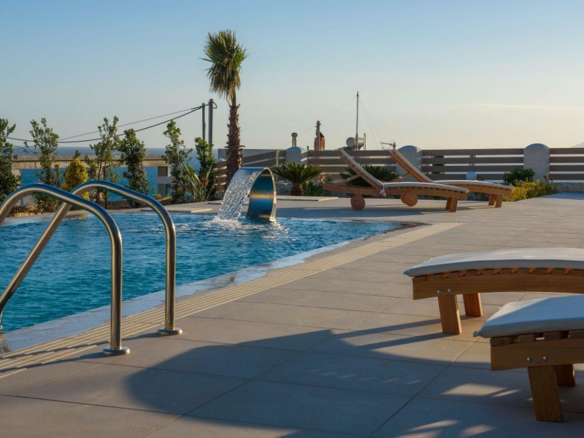 Large panoramic windows offer spectacular views of the Libyan Sea and the Paximadi Islands. If you are a nature lover and long for peace and quiet, this modern villa is the perfect choice for you. The villa, which has an open-plan kitchen/living room, a large sofa bed, 2 airy bedrooms with double beds 1.60 m x 2.00 m, 2 bathrooms and a guest toilet, can comfortably accommodate up to 6 people. The tasteful living area and the fully equipped kitchen with dining area, the large balcony, 43sqm, with seating area and dining table give an unobstructed view of the sea and in the evening of fantastic sunsets.