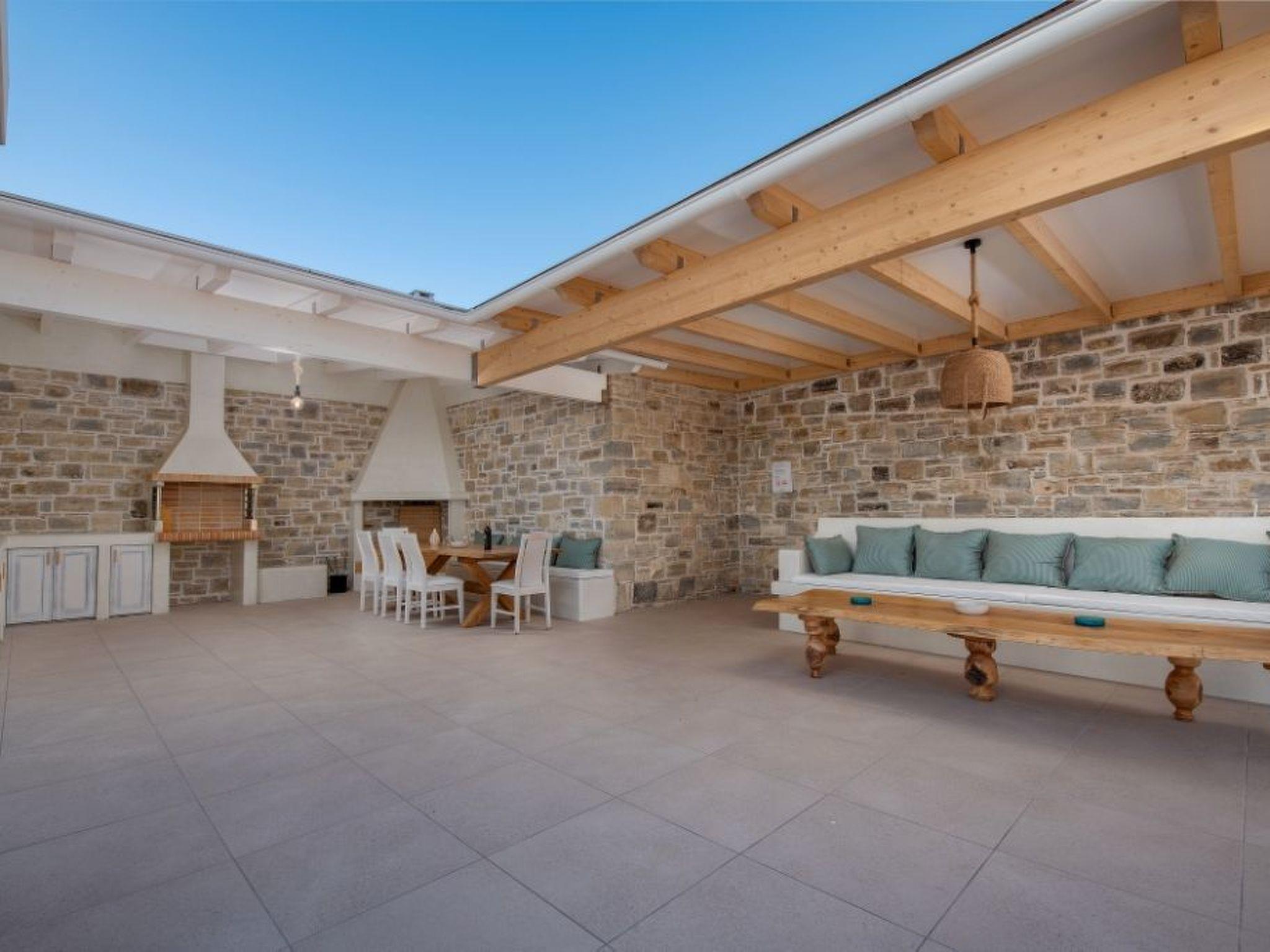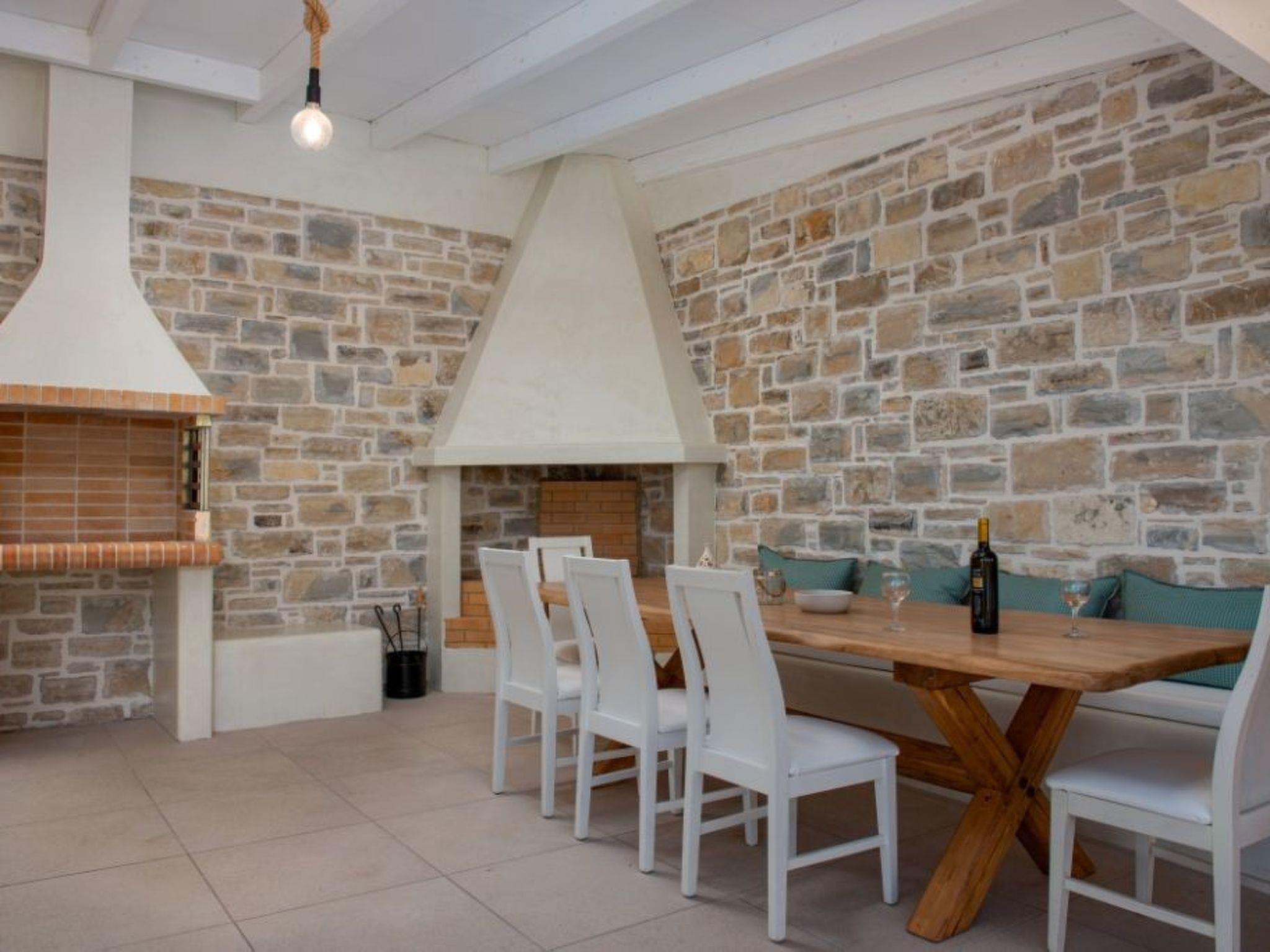The villa has been furnished with much love and attention to the smallest detail. Even in winter, the villa is a cosy holiday home with underfloor heating and a fireplace. The outdoor living area with shaded area, offers plenty of space around the swimming pool, 9.5 m x 4 m x 1.50 m, (salt electrolysis), a splash shower, an adjoining children's pool 3.50 m x 2 m x 0.40 cm and a relaxation bench, 2 day beds, 4 sun loungers and you can enjoy the view of the garden and the sea. The large outdoor kitchen with dining table, fridge-freezer, fireplace and barbecue adds to the comfort and unforgettable impression of the house.