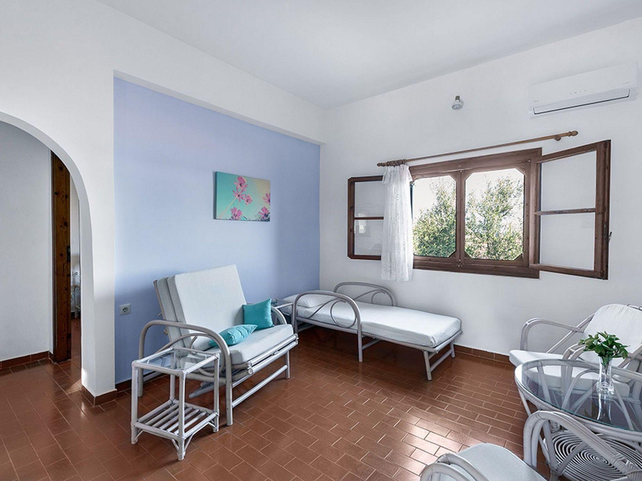 Location: Completely quiet on a large plot of land with olive and pine trees on a hillside on the edge of the pretty village of Mavrovouni. The complex is located above the long sandy beach, which can be reached via a small side road. There are 3 tavernas and a beach bar along the beach and a surf school 1.5 km away.