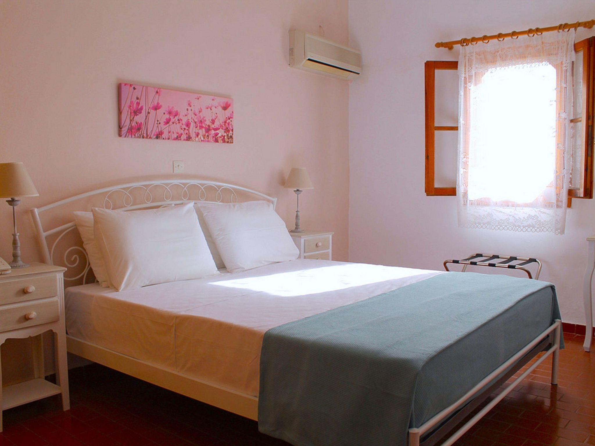 Location: Completely quiet on a large plot of land with olive and pine trees on a hillside on the edge of the pretty village of Mavrovouni. The complex is located above the long sandy beach, which can be reached via a small side road. There are 3 tavernas and a beach bar along the beach and a surf school 1.5 km away.