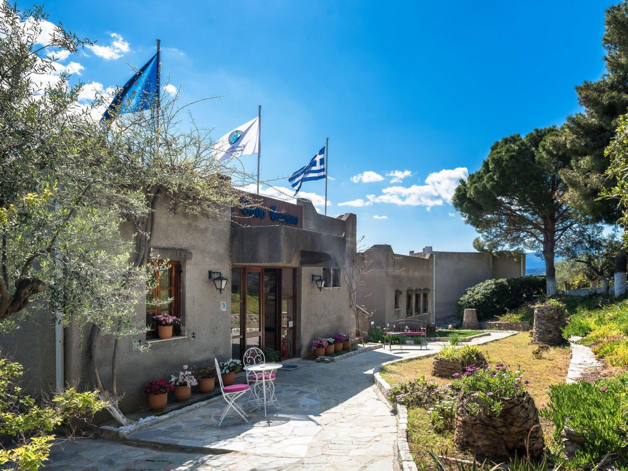 Location: Completely quiet on a large plot of land with olive and pine trees on a hillside on the edge of the pretty village of Mavrovouni. The complex is located above the long sandy beach, which can be reached via a small side road. There are 3 tavernas and a beach bar along the beach and a surf school 1.5 km away.