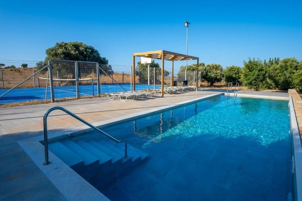 Ein besonderes Highlight ist die schöne Terrasse, die zum Verweilen, Frühstücken und Entspannen einlädt. Hier genießen Sie die ruhige Lage und das mediterrane Ambiente der weitläufigen Anlage.