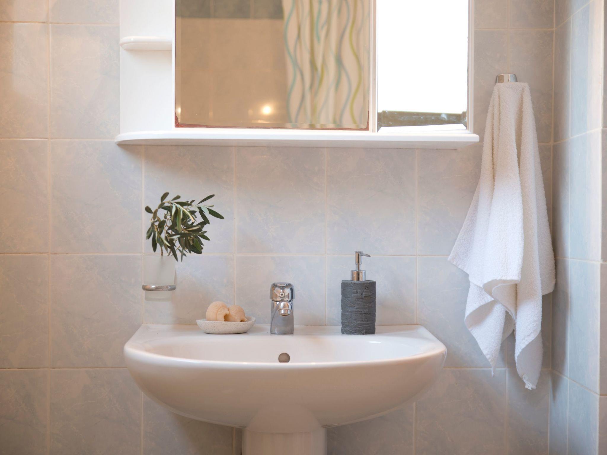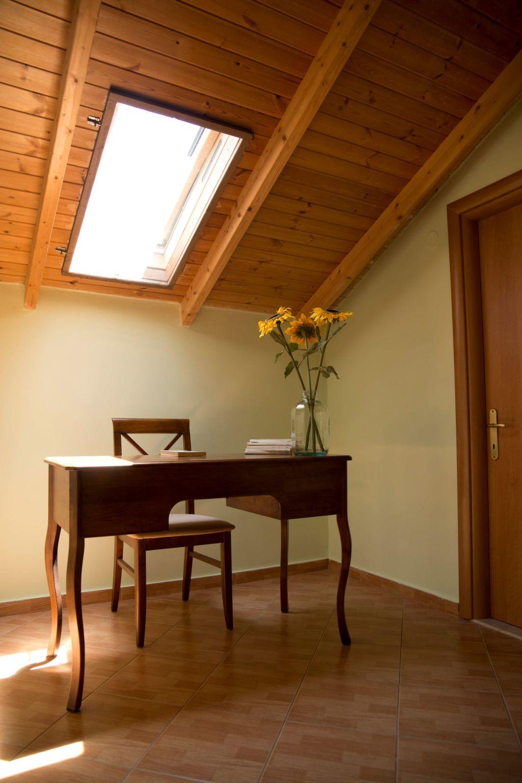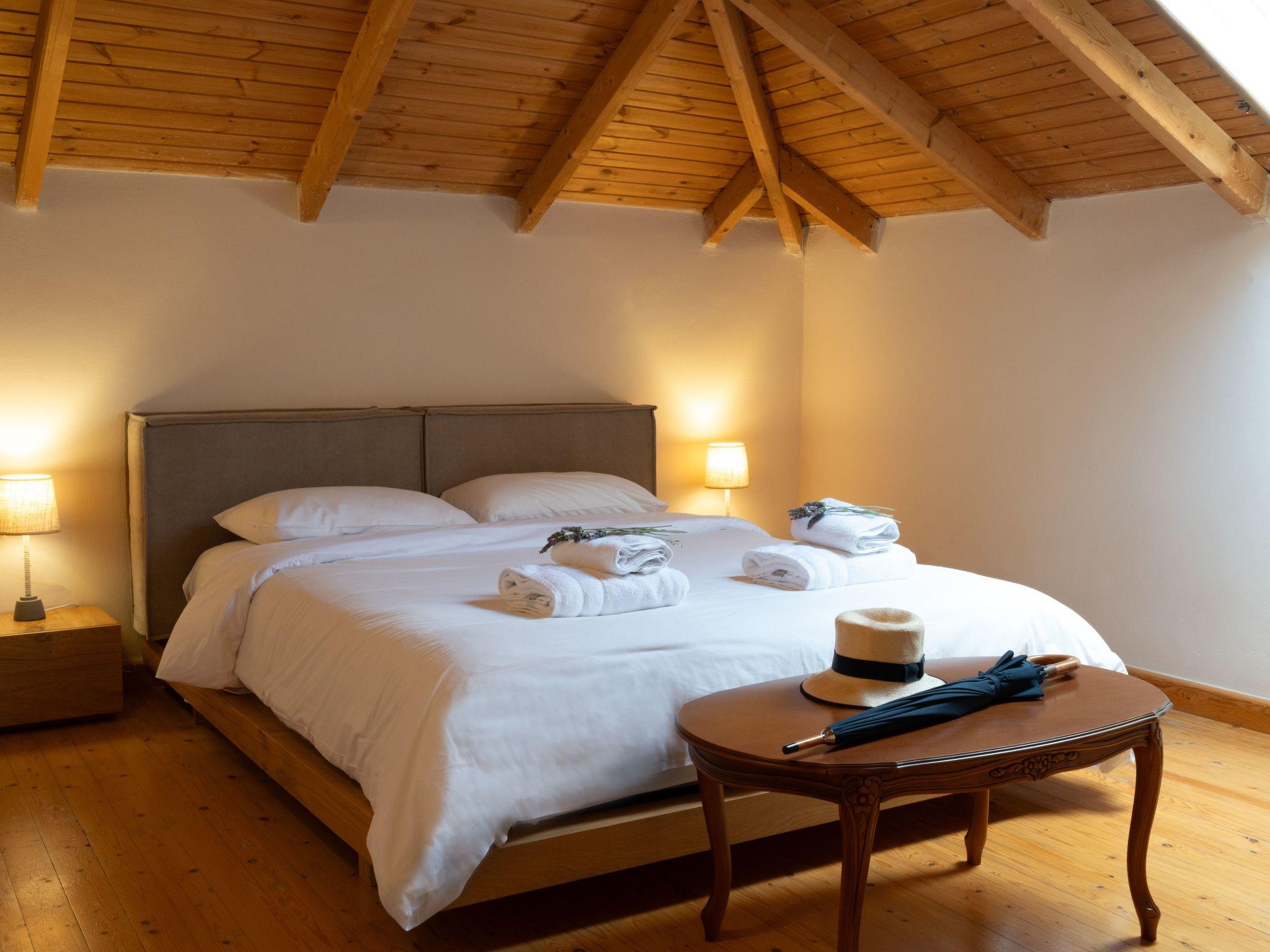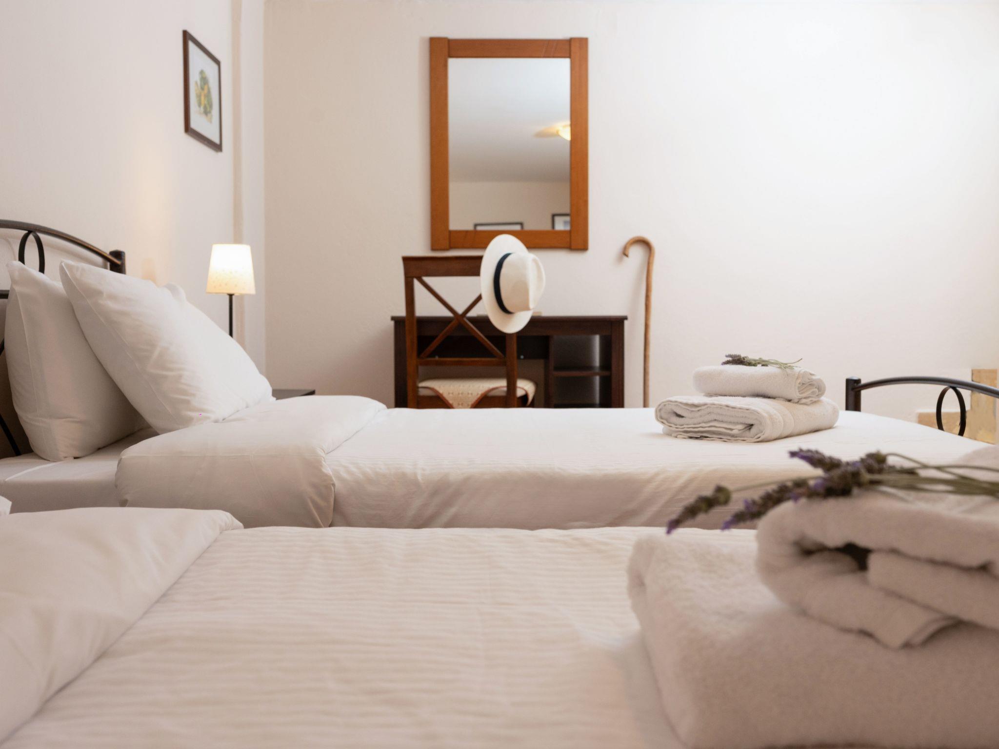 The ground floor is about 50 m² in size and comprises of the following rooms: A living room with a fireplace, a flat screen TV, a big sofa and chairs. There is also a fully-equipped kitchen with an oven, microwave, coffee machine, fridge and a dining area, as well as a bathroom with a bath tub. A marble staircase leads to the first floor, which includes: one big bedroom with double bed and one more with two single beds. The floor is complemented with a bathroom with shower. There is also a 3rd bedroom with two single beds at the basement of the house, which can be accessed from the ground floor. There is central heating and AC for all the rooms, except the 3rd which is the coolest and has a fan.
