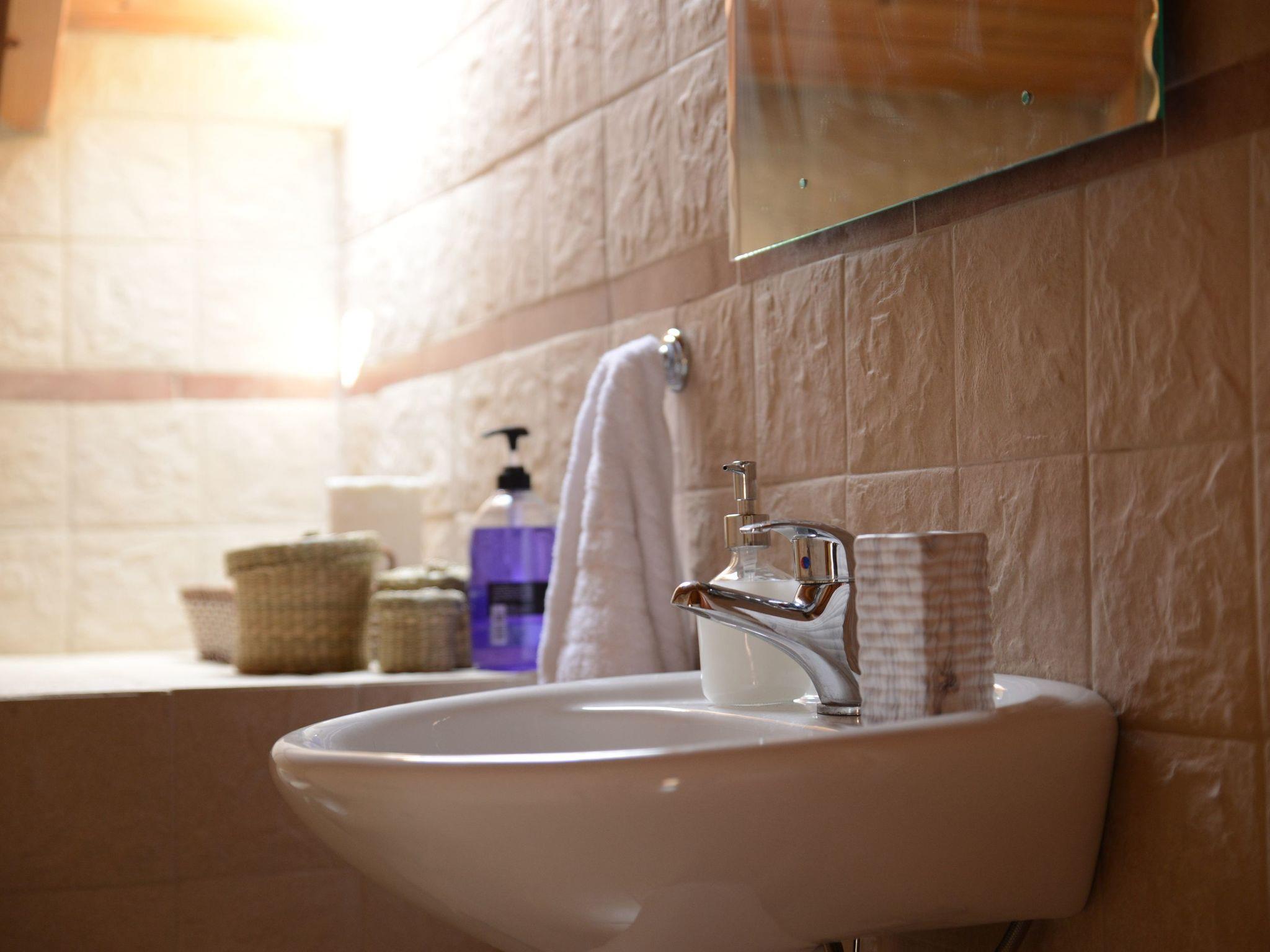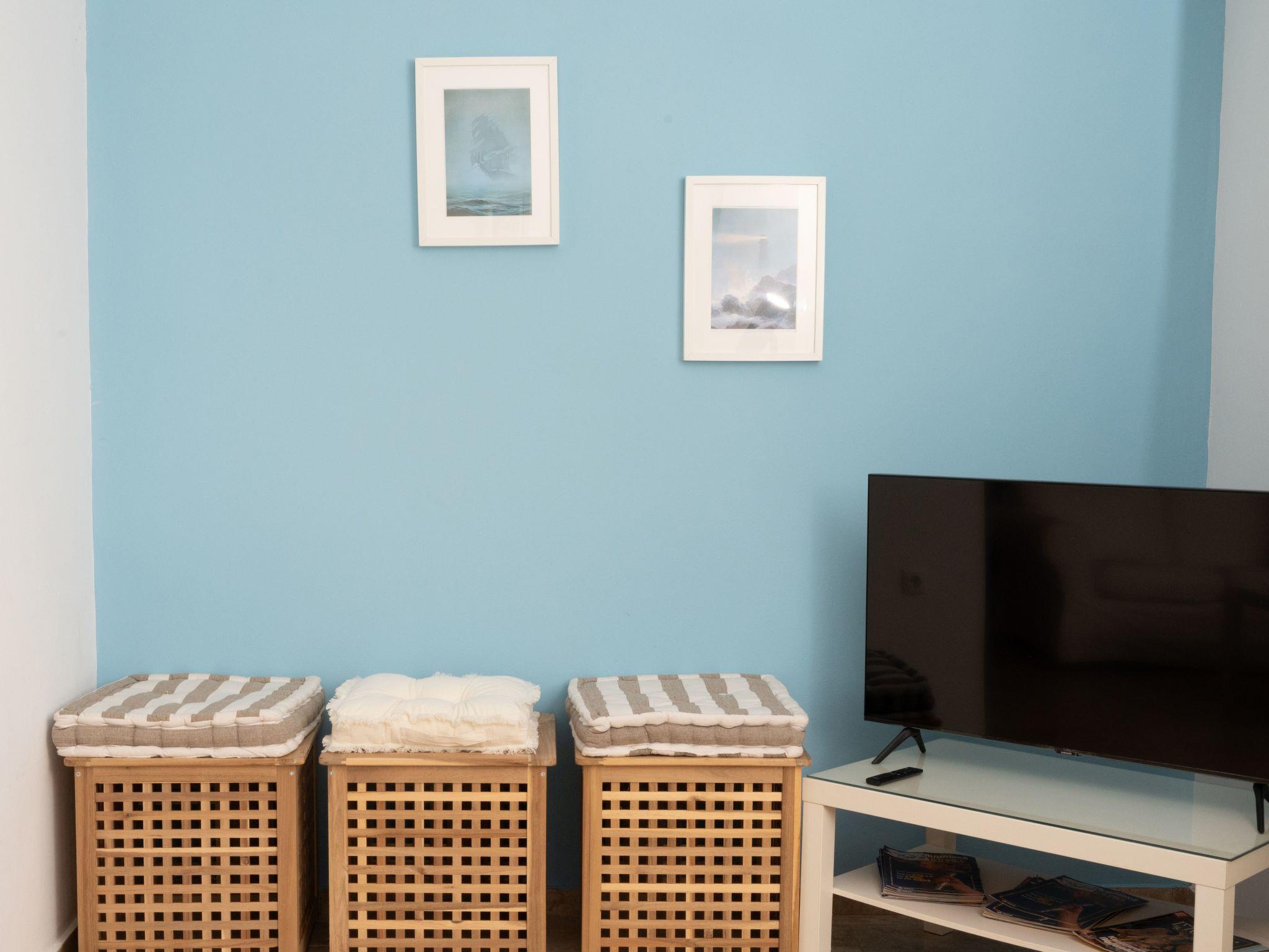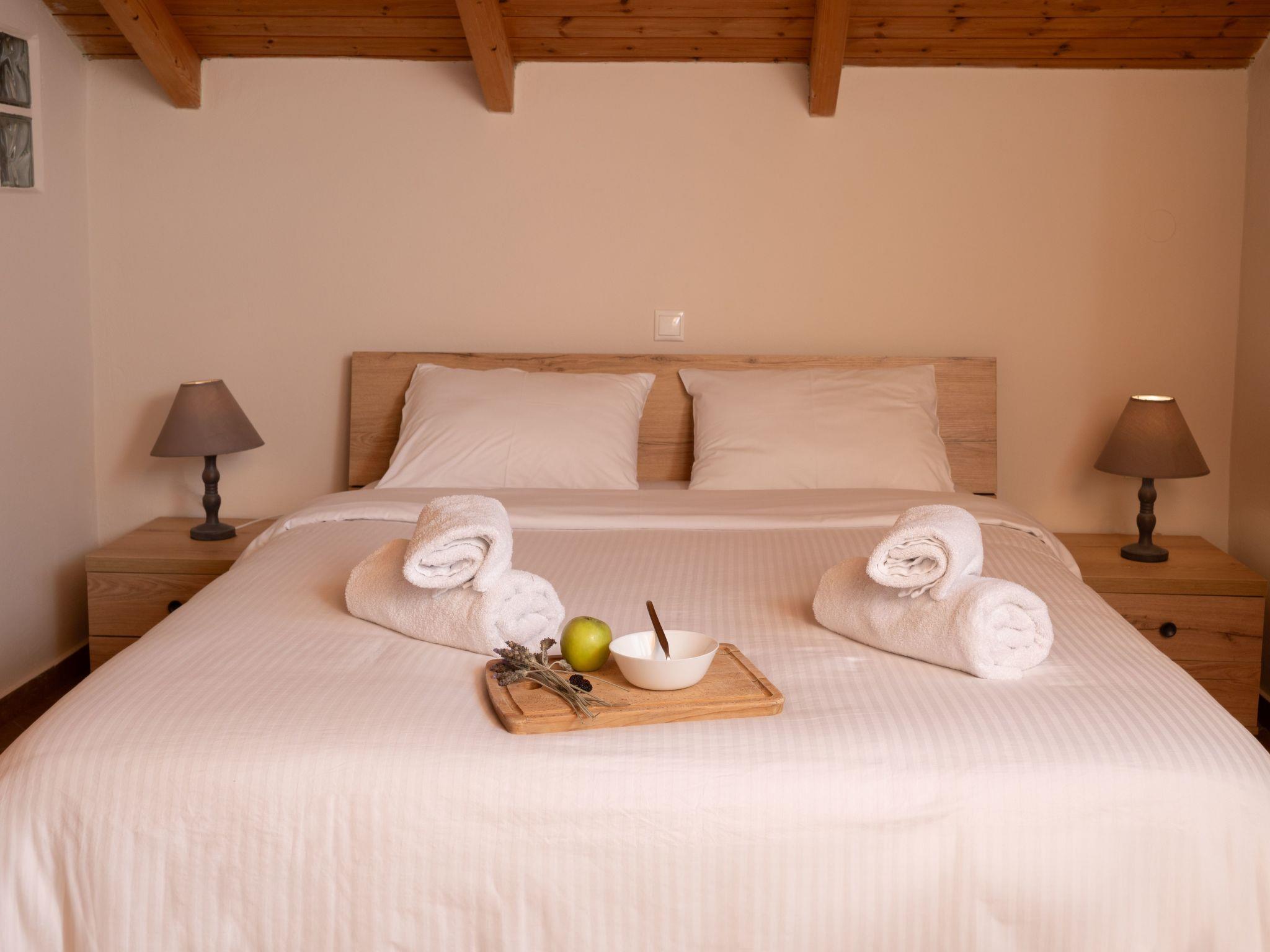 The ground floor is about 50 m² in size and comprises of the following rooms: A living room with a fireplace, a flat screen TV, a big sofa and chairs. There is also a fully-equipped kitchen with an oven, microwave, coffee machine, fridge, dishwasher and a dining area, as well as a bathroom with a shower. A marble staircase leads to the first floor, which includes: two separate bedrooms with double beds. The floor is complemented with a bathroom with shower and one extra toilet. There is also a 3rd bedroom with three single beds at the basement of the house, which can be accessed from the ground floor. There is central heating and AC for all the rooms, except the 3rd which is the coolest and has a fan.