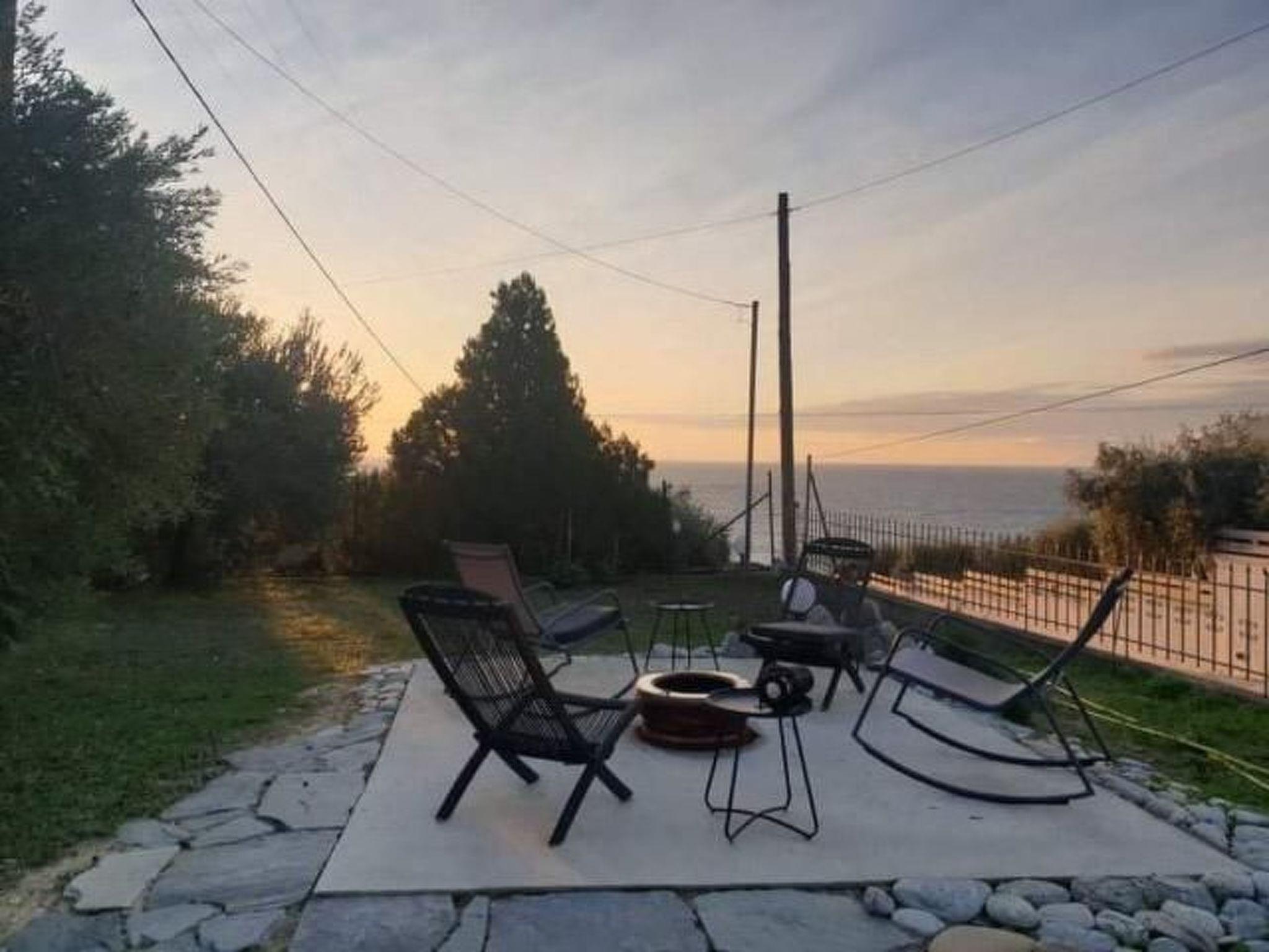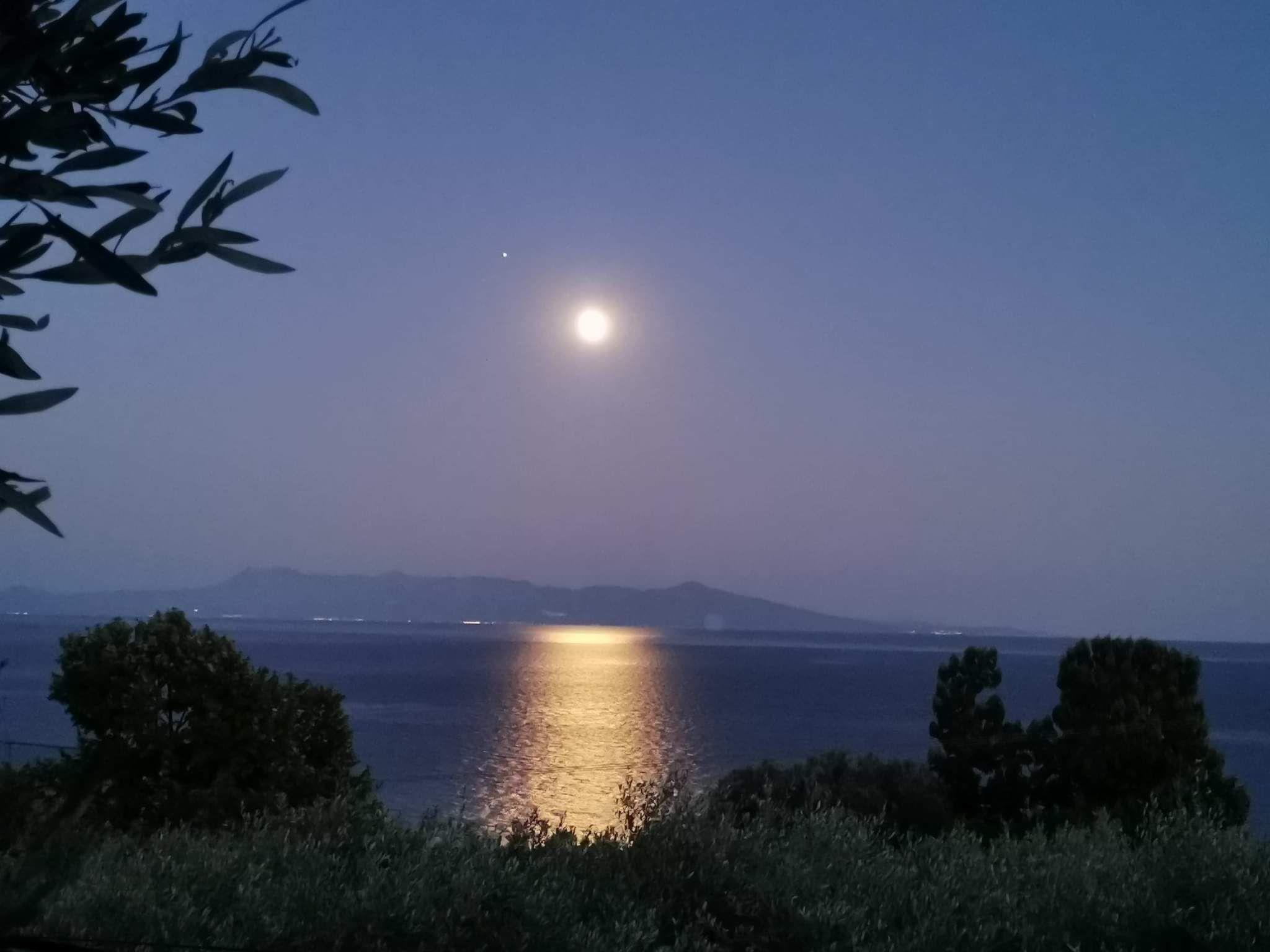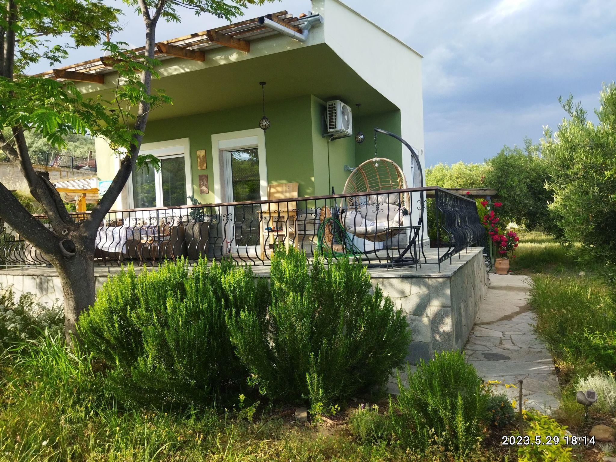 In the front garden area there is a fireplace with a view of the sea and the stars at night, in the back garden area there is a barbecue area with a large, shaded dining area and from here you also have a fantastic view over the sea to the island of Thassos.