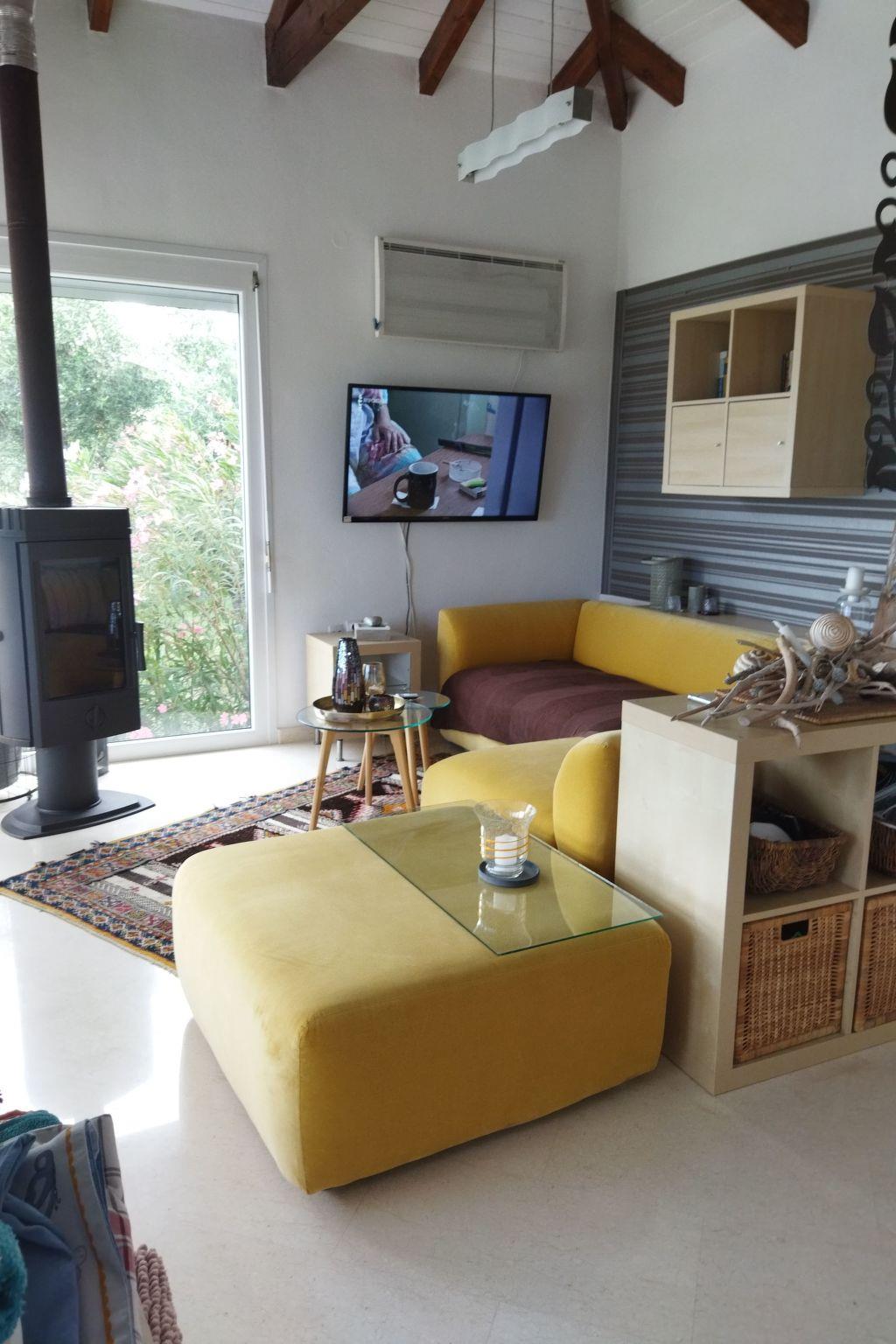 Inside, you will find fully equipped accommodation that leaves nothing to be desired. The villa has two bedrooms and two bathrooms, guaranteeing comfort and privacy for up to two guests. Amenities such as a washing machine for your sole use, an induction hob, a dishwasher and a kettle ensure a carefree stay. A fireplace is available for cosy evenings, while three fans ensure a pleasant coolness on warmer days. Thanks to the partial air conditioning and renewable energy from solar power, the climate in the house always remains pleasant and environmentally friendly.