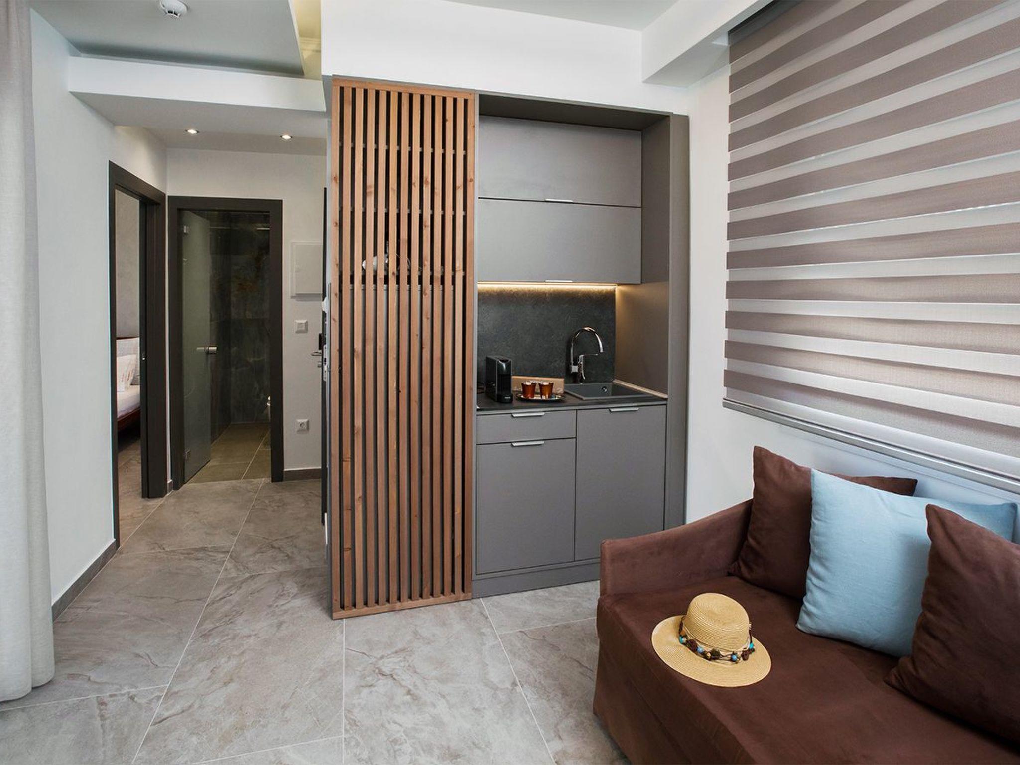 You are in a place where you can enjoy the sea breeze and the best Mediterranean climate. With private access to the beach, direct location to the crystal-clear bay with sunrises and sunsets, surrounded by idyllic countryside and several cycling and hiking trails. The ideal retreat from the hustle and bustle of modern life. Would you prefer to enjoy nature rather than water sports such as water skiing or windsurfing? You can still have a wonderful time in the area surrounding your accommodation, mountain biking, cycling tours, hiking, golf, mini golf, bowling, and so on. In general, you can see, hear, smell, taste and feel Greek culture in Halkidiki. When travelling around the peninsula, you can hardly get enough of the visual attractions that the natural landscape has to offer. Green pine forests alternate with golden flat sandy beaches, green meadows with olive and pistachio trees, steep coasts with extensive vineyards. You will be accompanied by the scent of herbs from the lush vegetation, birdsong and fresh, iodised sea air. For history buffs, there are also numerous museums, archaeological sites and artefacts to explore to familiarise you with ancient Greek culture. Take a trip to Kassandra, where the traditional market takes place, to Meteora, to the Pella theatre and open-air concert, to the ancient archaeological site of Olynthos or to the famous cave in Petralona. Athitos, a newly awakened, traditional stone-built village with cobbled alleys and marvellous panoramic spots and bathing bays, is also worth a visit. The town centre is approx. 700 m away on foot for shopping facilities.