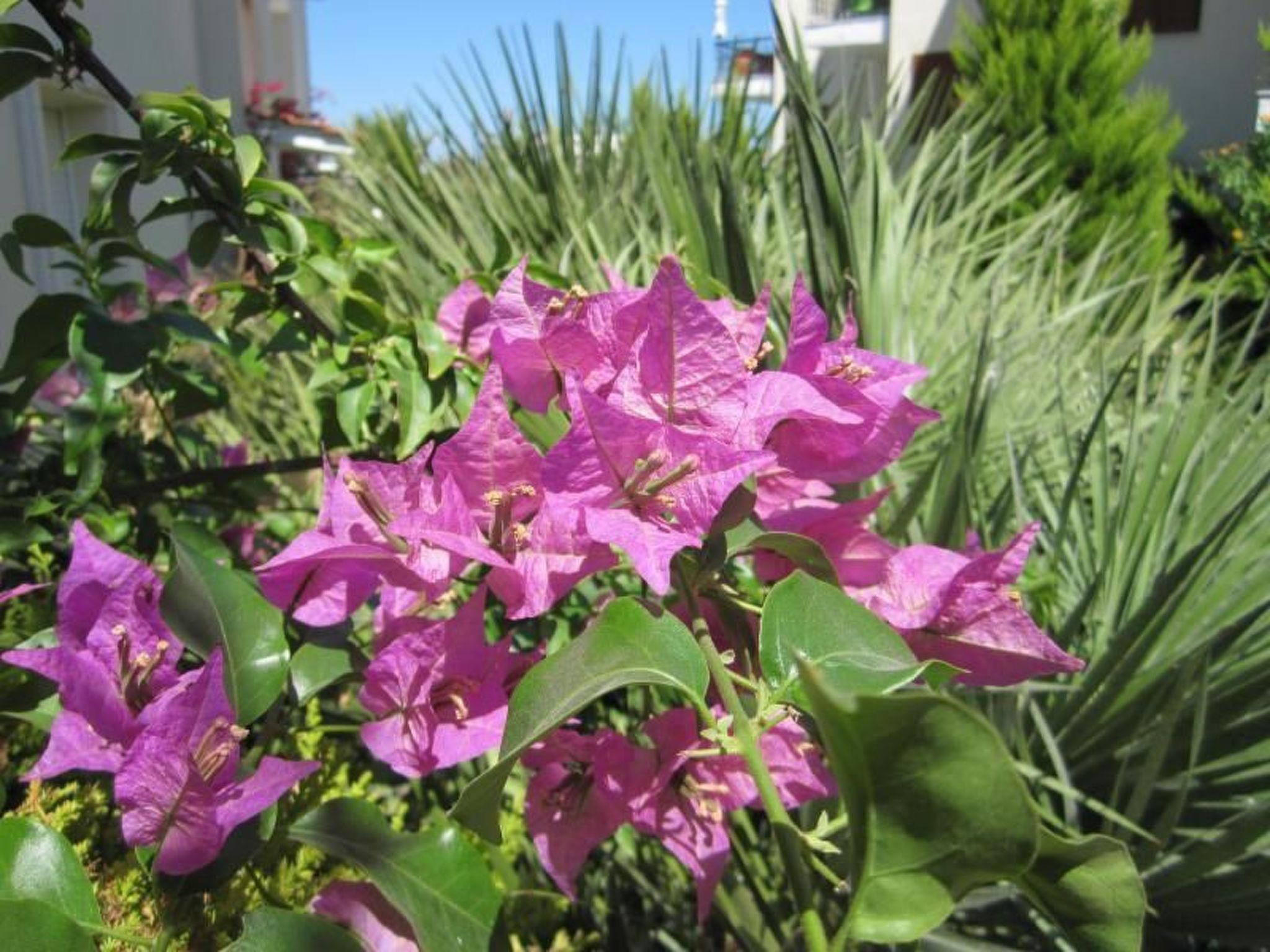 A park-like garden welcomes you with spacious grassy areas as well as cypresses, shrubs and palm trees. A large pergola and an outdoor barbecue invite you to eat and enjoy al fresco dining. Enjoy the beautiful weather on the communal terrace. The terrace is equipped with garden furniture, parasol and some garden loungers. The view of Mount Athos and the whole of Halkidiki is indescribable. The property is fenced. Enjoy the surroundings, the view of the garden and the beautiful weather on your own balcony with garden furniture.
