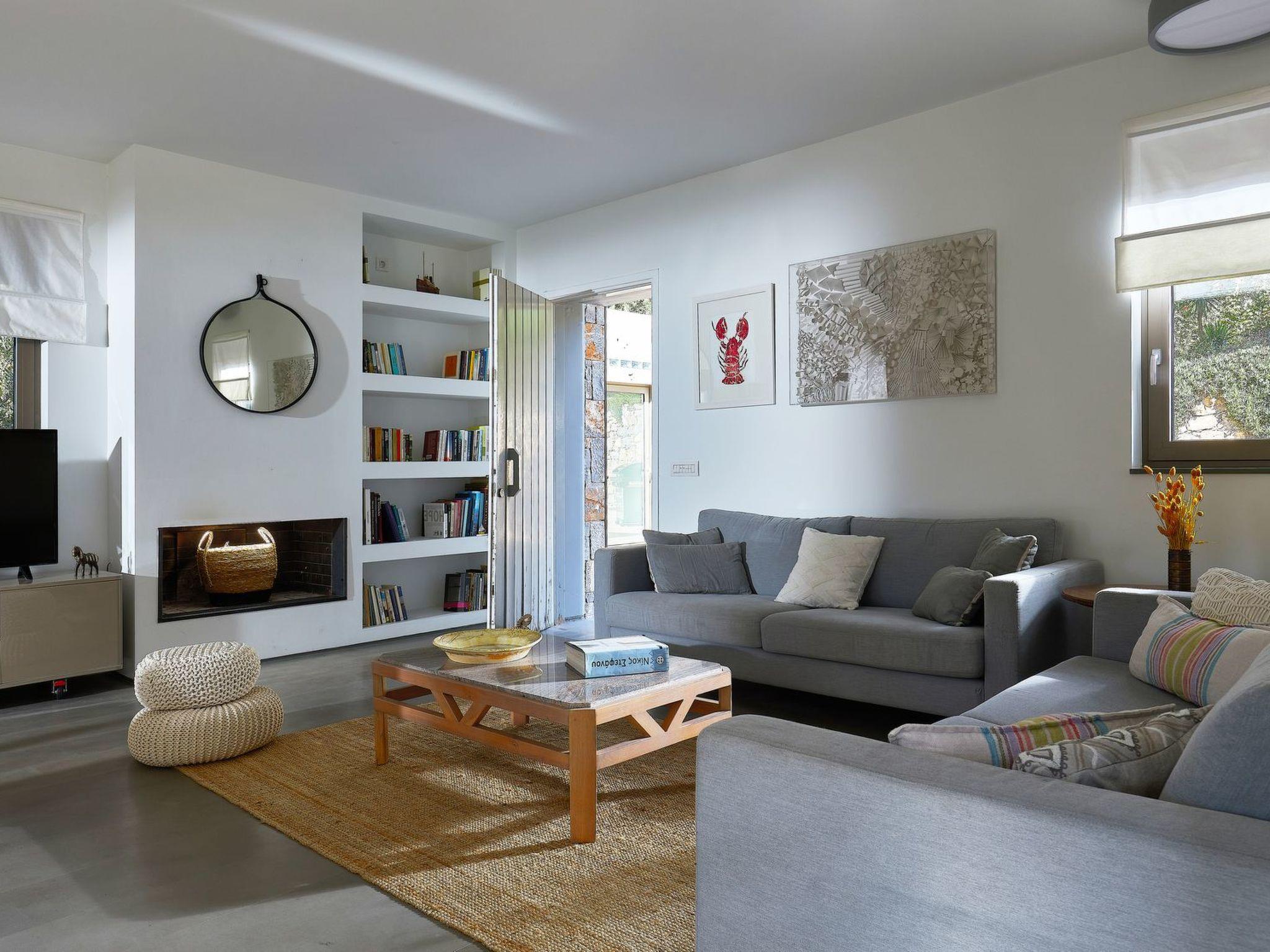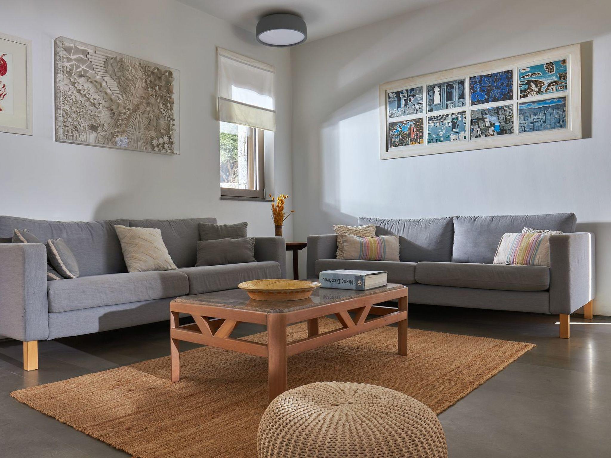 The architecture of the Villa is harmonically combined with that of the traditional village of Vrachasi, as stone is beautifully combined with modern touches. The exterior is well blended with the green olive groves that surround the estate and the absolute-blue color of the salt-water swimming pool offer an unparallel aesthesis of tranquility. The eco-friendly cleaning procedure of the pool safeguards a natural pool enjoyment every single day and the wooden deck, furnished with sunbeds and umbrellas will make your stay an absolute day and night pleasure.The luxurious, yet minimalistic interior, with spacious rooms and lounge areas, is decorated with stylish and design furniture and offer a like-home experience and coziness. The contemporary touches, with earthy colors and wooden surfaces, along with the state-of-the-art equipment and appliances provide a lovely feeling of contentment during your stay. Large windows allow abundance of natural light in the interior.