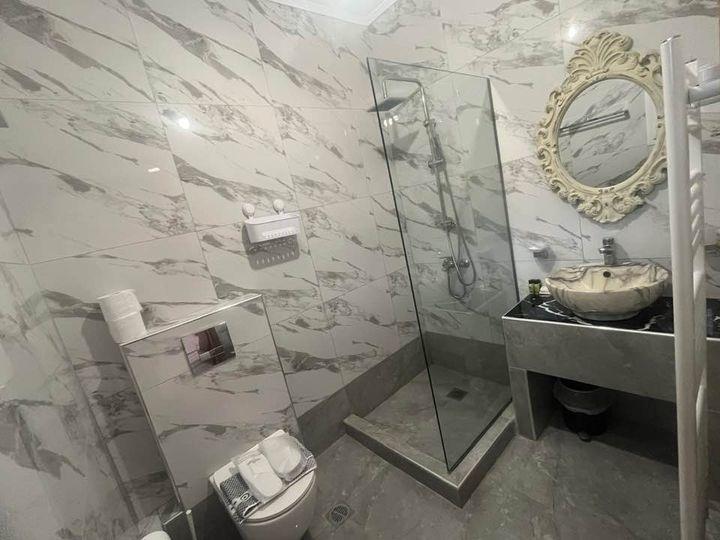 Komfortfaciliteter på badeværelset (hårtørrer, shampoo, hårbalsam, håndsæbe og brusegel)