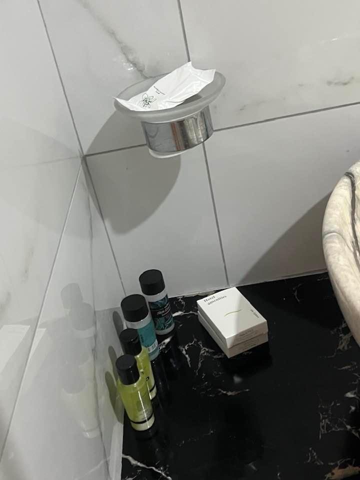 Komfortfaciliteter på badeværelset (hårtørrer, shampoo, hårbalsam, håndsæbe og brusegel)
