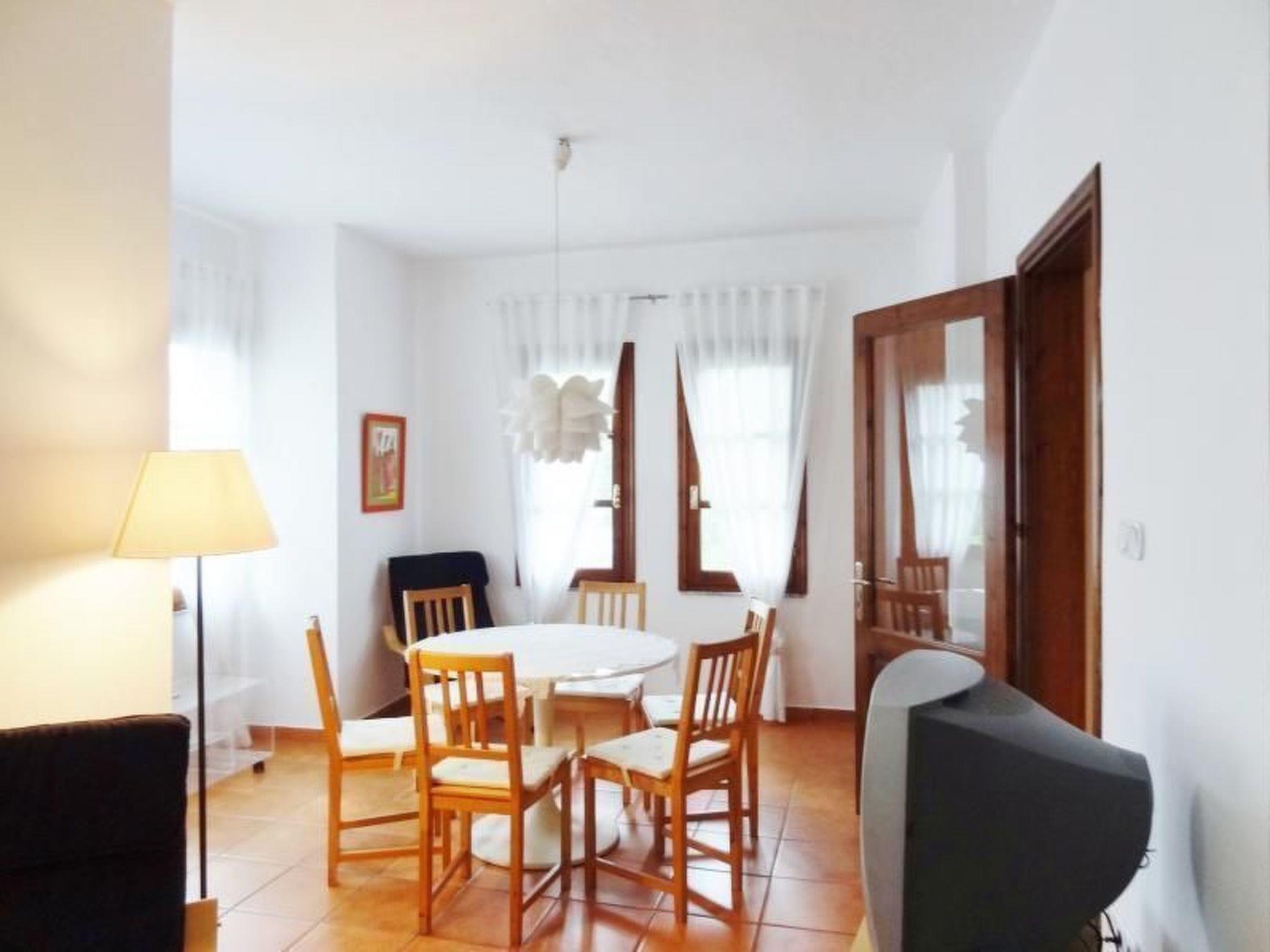 The centrepiece of the villa is located on the second floor: a large living room with a fireplace, a round dining table for 6 people, armchairs and a pull-out sofa bed. A passageway with a large cupboard for the house's laundry leads to the open-plan, generously equipped kitchen, which leaves nothing to be desired.