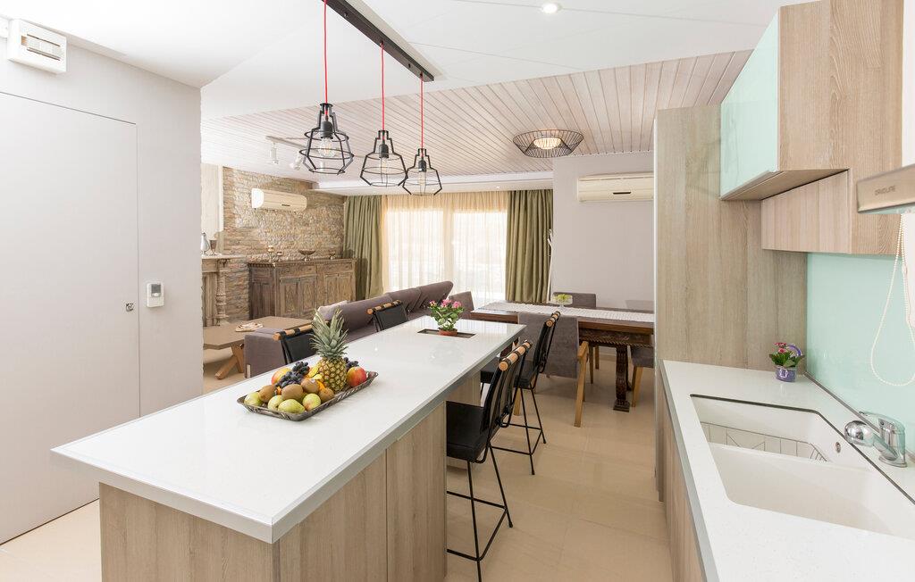 Dette smagfuldt og komfortabelt indrettede feriehus tilbyder masser af plads til en afslappende ferie med venner eller familie. Fremkald kulinariske lækkerier sammen og glæd jer til hyggelige måltider i en stilfuld og behagelig atmosfære. Snak om svundne tider i den store sofagruppe eller hold hyggelige spilleaftener.