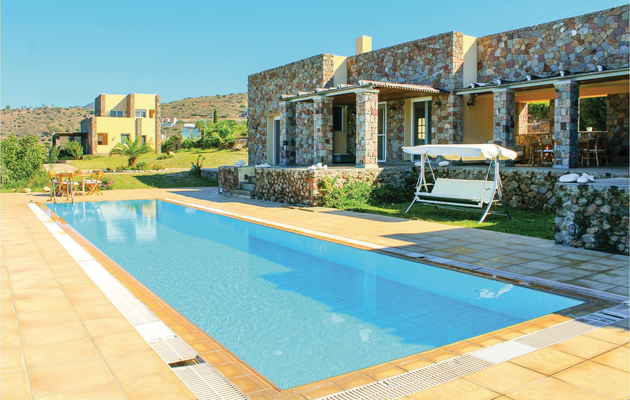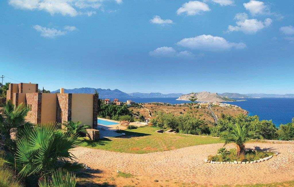 Dette moderne og stilfulde feriehus har en fremragende beliggenhed på den saroniske ø Égina, og er et perfekt valg til en herlig ferie i Grækenland. Til huset hører en privat swimmingpool, hvor I kan tage en forfriskende dukkert på varme sommerdage. I huset findes seks soveværelser, fem badeværelser, to køkkener og en rummelig stue-/spisestue. Til huset findes en dejlig, overdækket terrasse med spiseområde, hvor I kan sidde og slappe af, mens I nyder den storslåede udsigt over havet og fascineres af solnedgangen om aftenen. Der er kun 500 m til stranden fra huset.