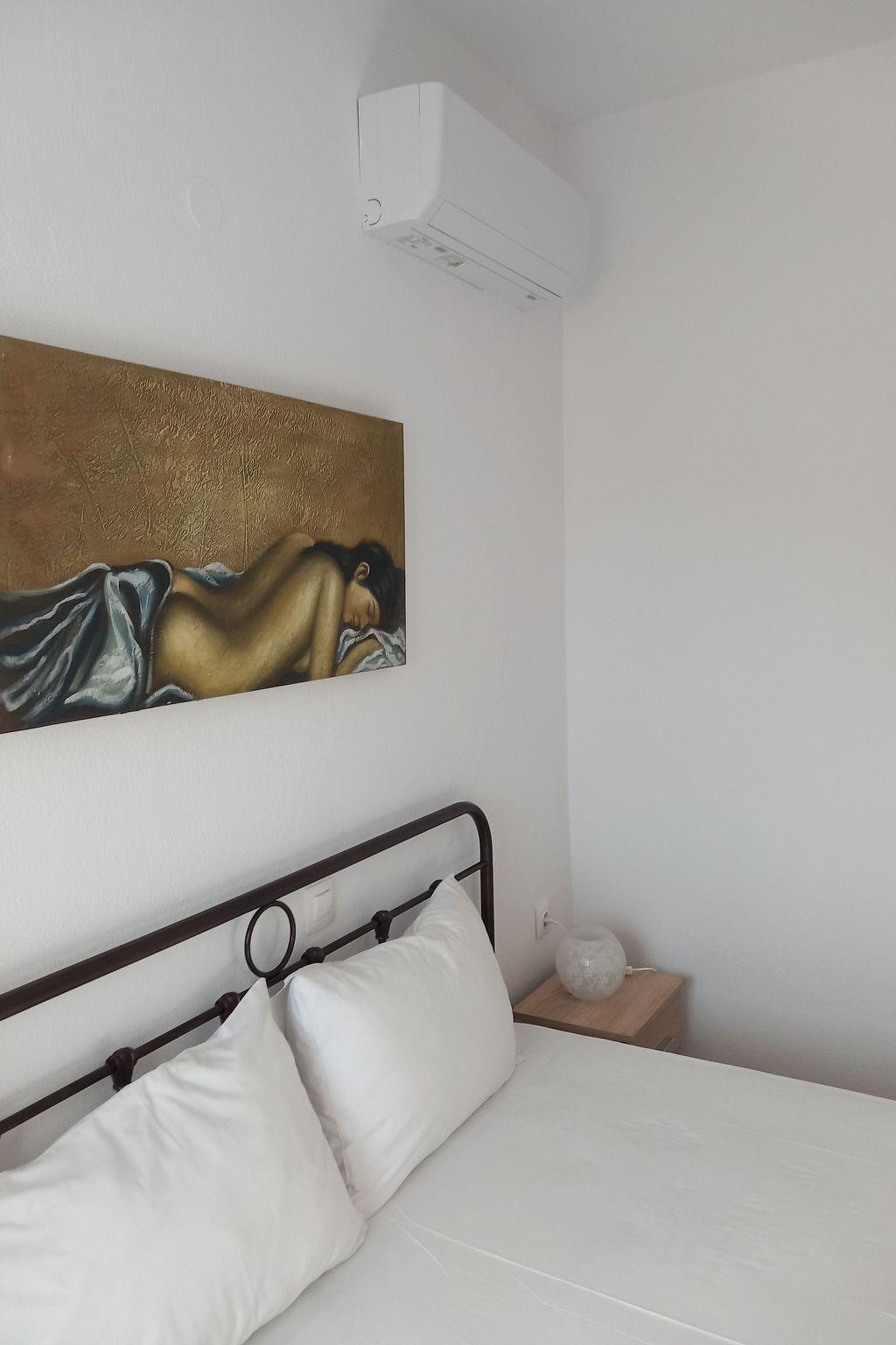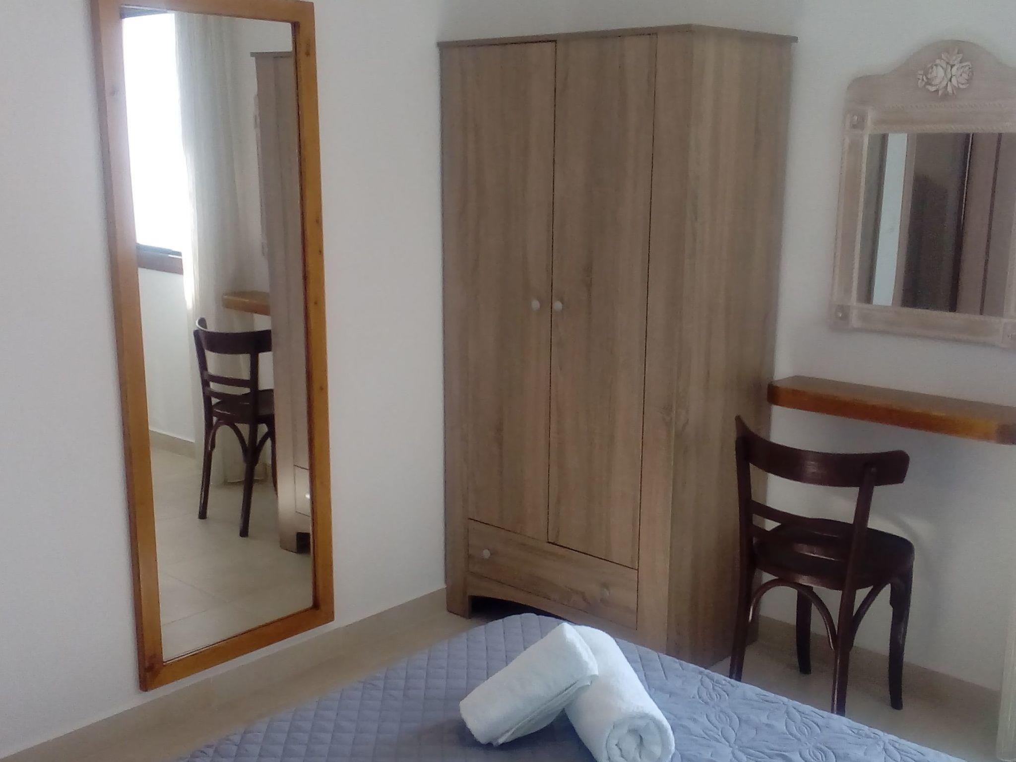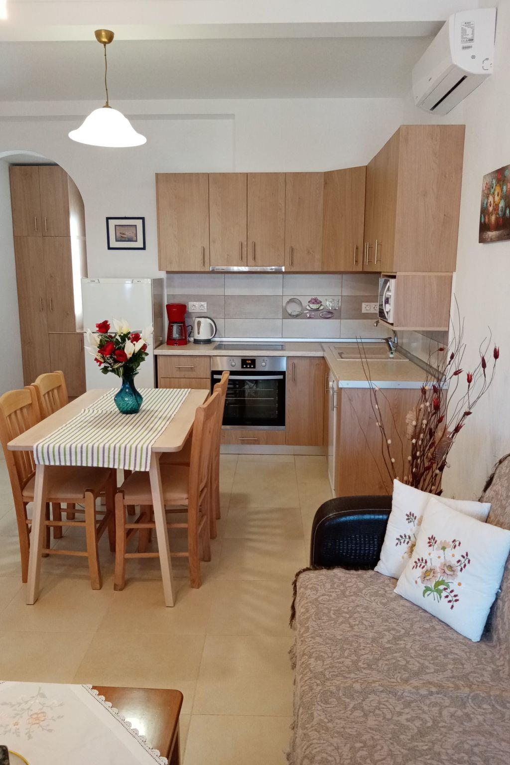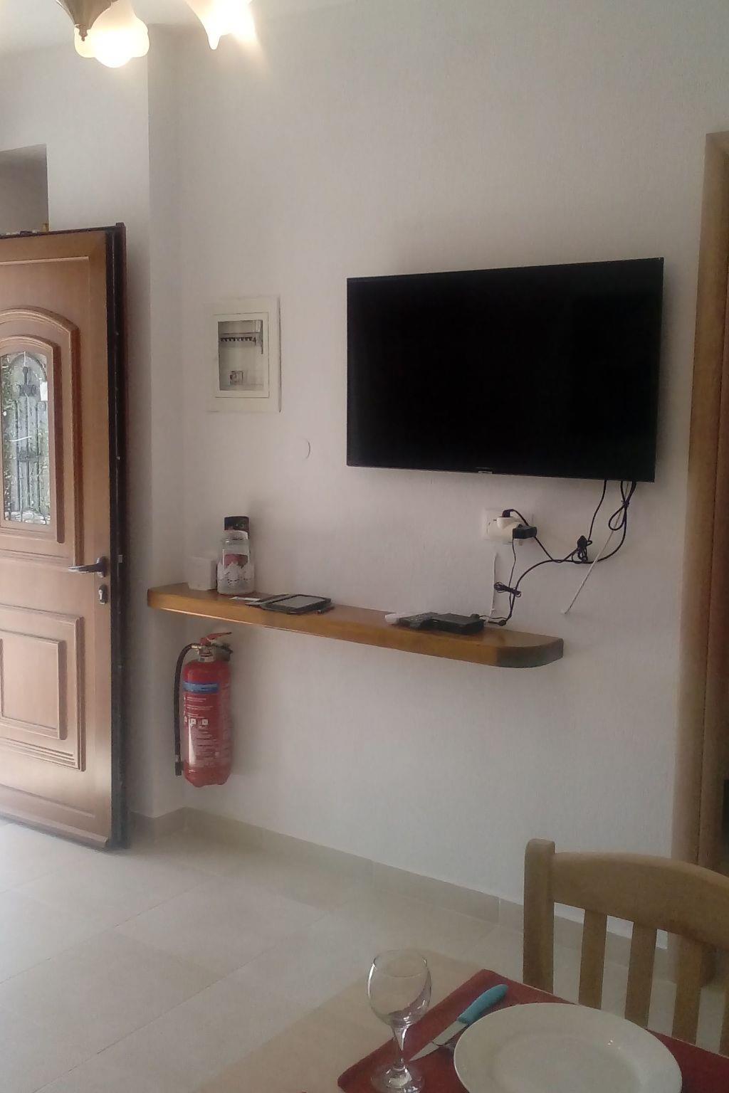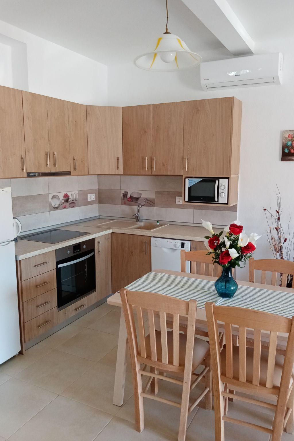 The flat has 2 bedrooms, one with a double bed and one with 2 single beds. Another person can sleep on the fold-out couch in the living room. A baby cot is also available. Babies and toddlers weighing up to 15 kilograms can sleep safely in there if required. The kitchenettes are fully equipped: Coffee machine, kettle, microwave, dishwasher, electric cooker, fridge and iron. In the bathroom you will find a washing machine and hairdryer. Hot water is supplied to the bathroom and kitchen by the solar system on the roof. A large flat screen TV hangs on the wall in the living room. A satellite dish on the roof ensures good reception of many German, English, French, Russian, Italian, Spanish and Turkish channels. Free Wifi is available. English and German books can be found in our bookshelf next to the front door should you get bored. Each flat has air conditioning in the living area and in the bedroom with the double bed.