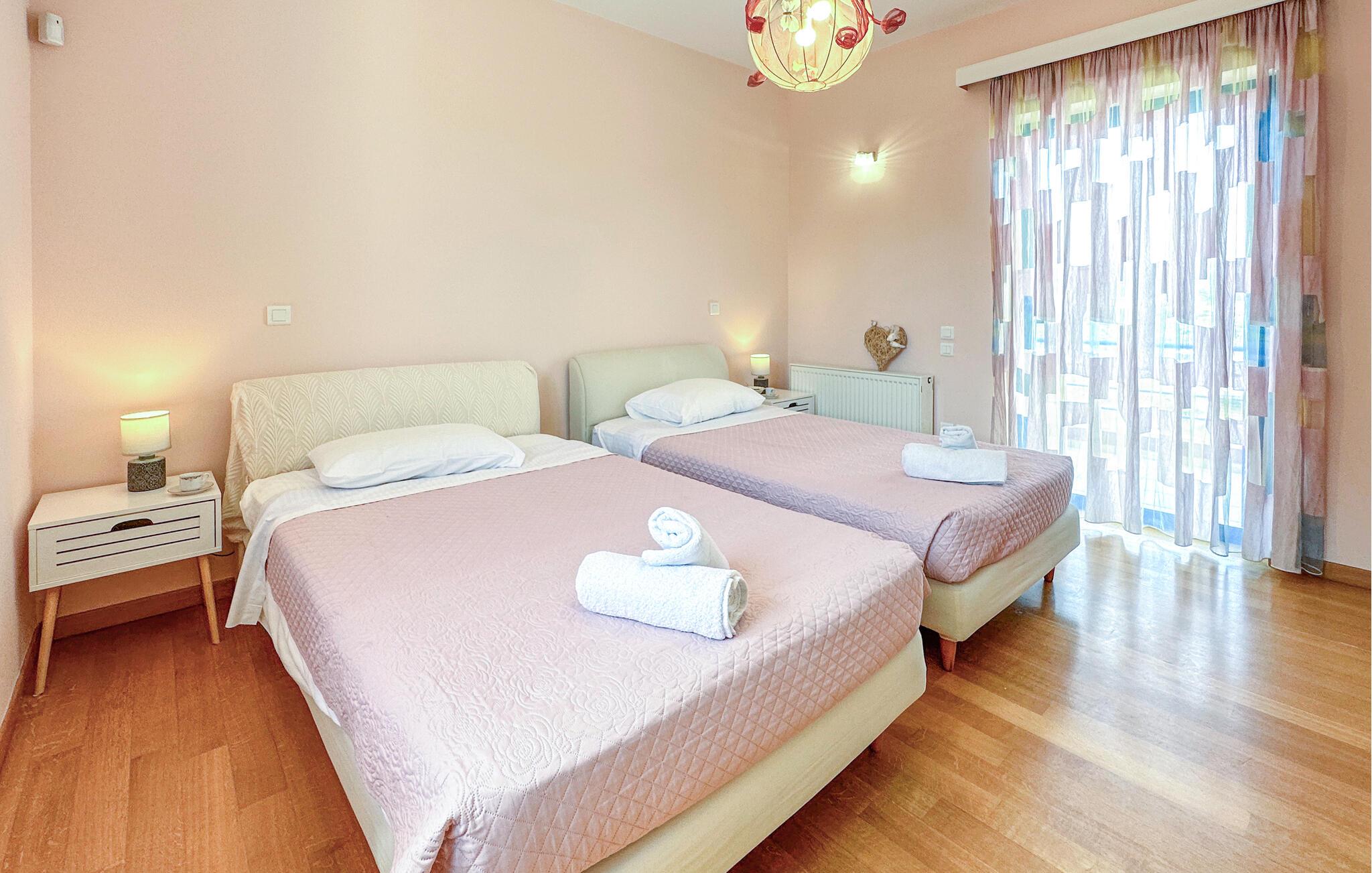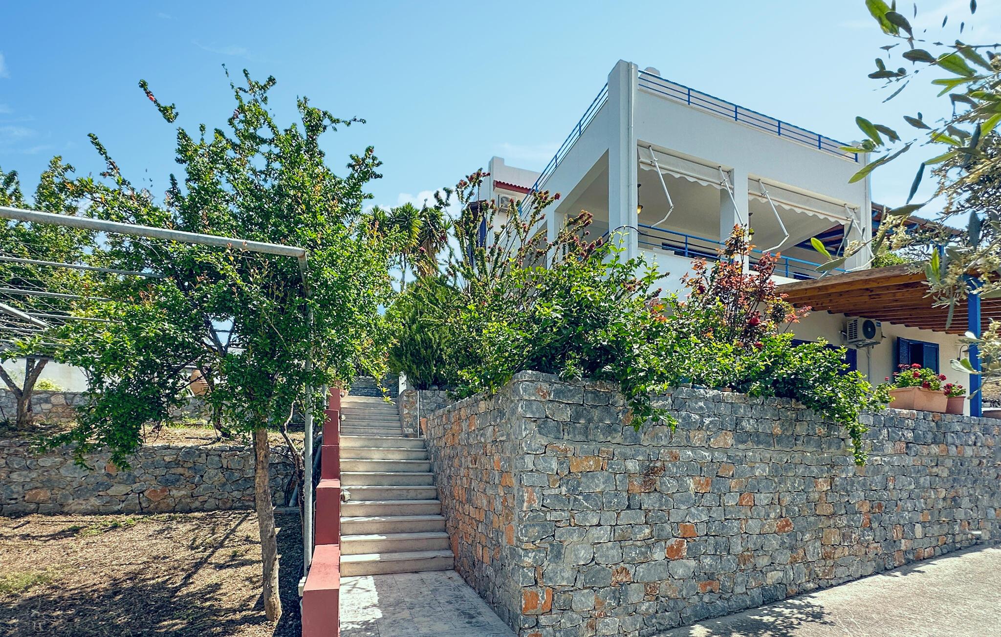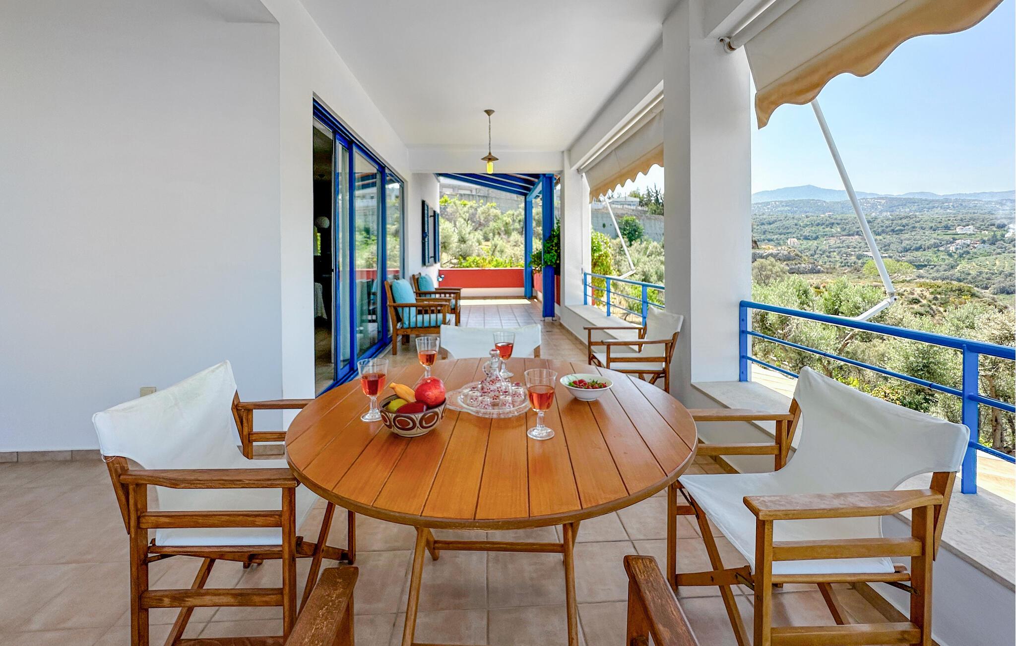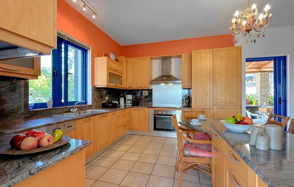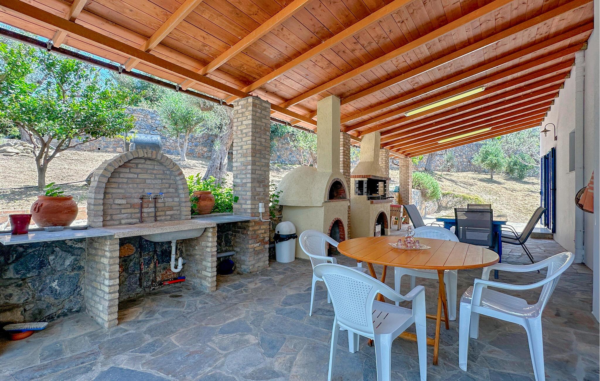 Dette rummelige feriehus på Kreta giver jer en smuk kombination af fred, ro, komfort og en god beliggenhed. Nyd ferien sammen i et miljø, der lægger op til at sætte hverdagen på pause og have det rart. Husets farvekoordinerede indretning skaber en varm atmosfære med personlig karakter. Find jer godt til rette i den store hjørnesofa og nyd jeres frie ferie i fulde drag. Slap af ved den åbne brændeovn eller tilbered måltider sammen i det hyggelige køkken. Spisebordet i køkkenet lægger op til fælles morgenmad om morgenen, mens et andet spisebord i stuen byder på plads nok til hyggelige aftener.