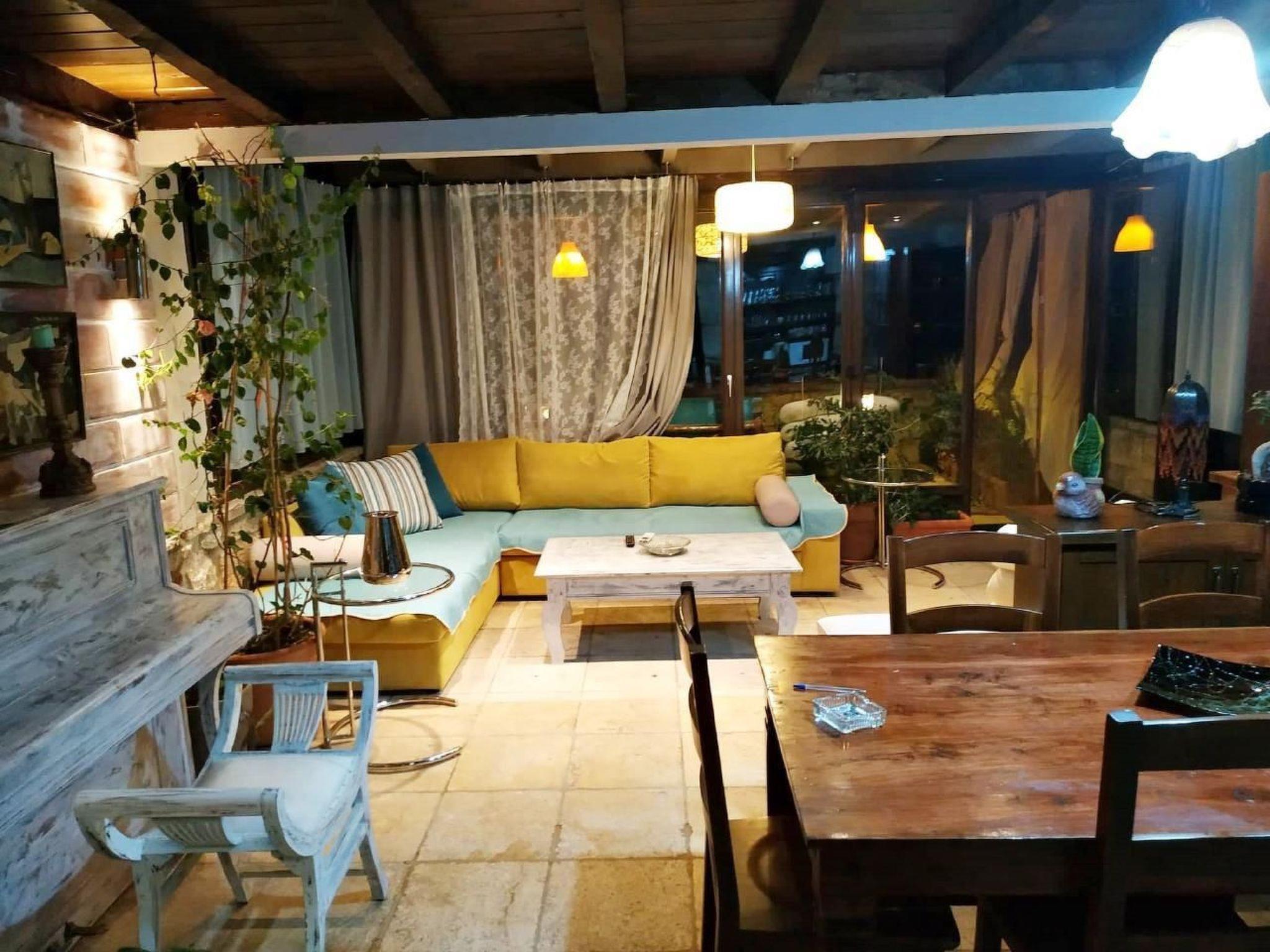 A staircase from there leads to a loft where there is a very large layer. Before the large terrace of the house (30 sq) is an atrium with glass where there are two single beds and a piano.