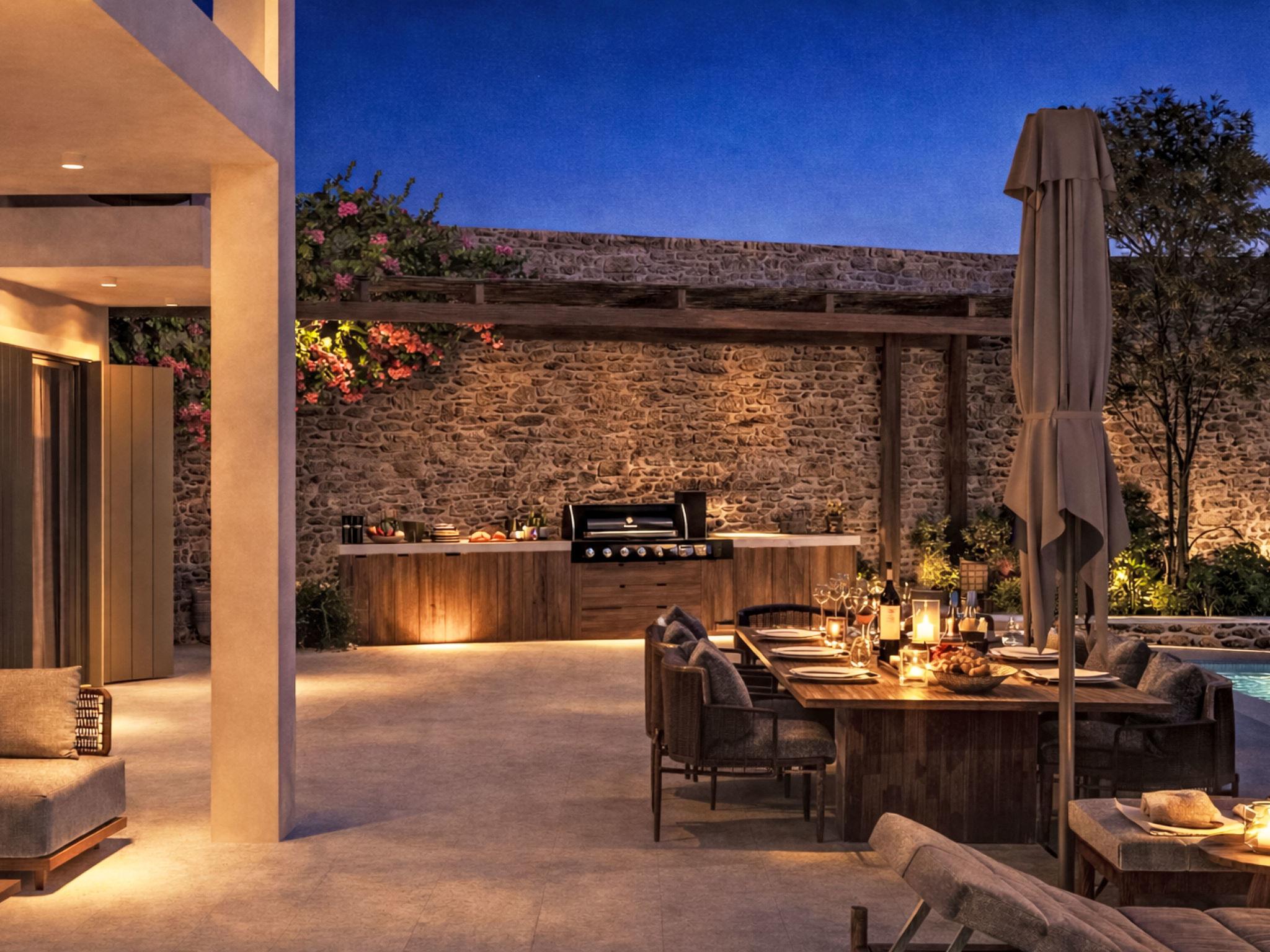 Modern, luxurious villa "Harmonia", built in 2025. 1 km from the sea, direct access to the beach, in the countryside. For shared use: table tennis. Private: property 160 m2 (fenced), swimming pool (seasonal availability: 01.Jan. - 31.Dec.). Outdoor shower, barbecue, children's playground. In the house: air conditioning, burglar alarm system. Parking (for 2 cars) at the house, public parking on the road. Supermarket 200 m, restaurant 350 m, bakery 100 m, bus stop 500 m, sandy beach 1 km pebble beach 1 km.