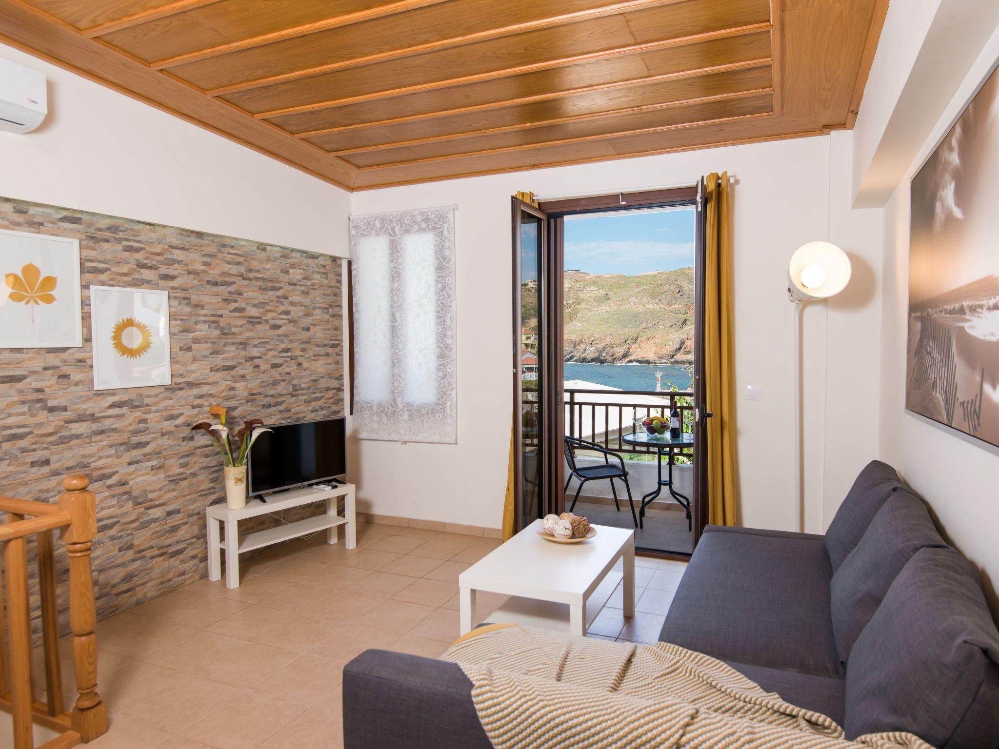The apartment's exterior is equally inviting, boasting a balcony off the living room where guests can revel in breathtaking views of the port, the shimmering sea, and the rolling hills beyond. This splendid outdoor space is the ideal spot to enjoy your morning coffee or unwind in the evening with a glass of wine, soaking in the vibrant scenes below. Just a short stroll from the apartment, the lively street comes alive with charming tavernas and coffee shops, inviting guests to immerse themselves in the local culture.