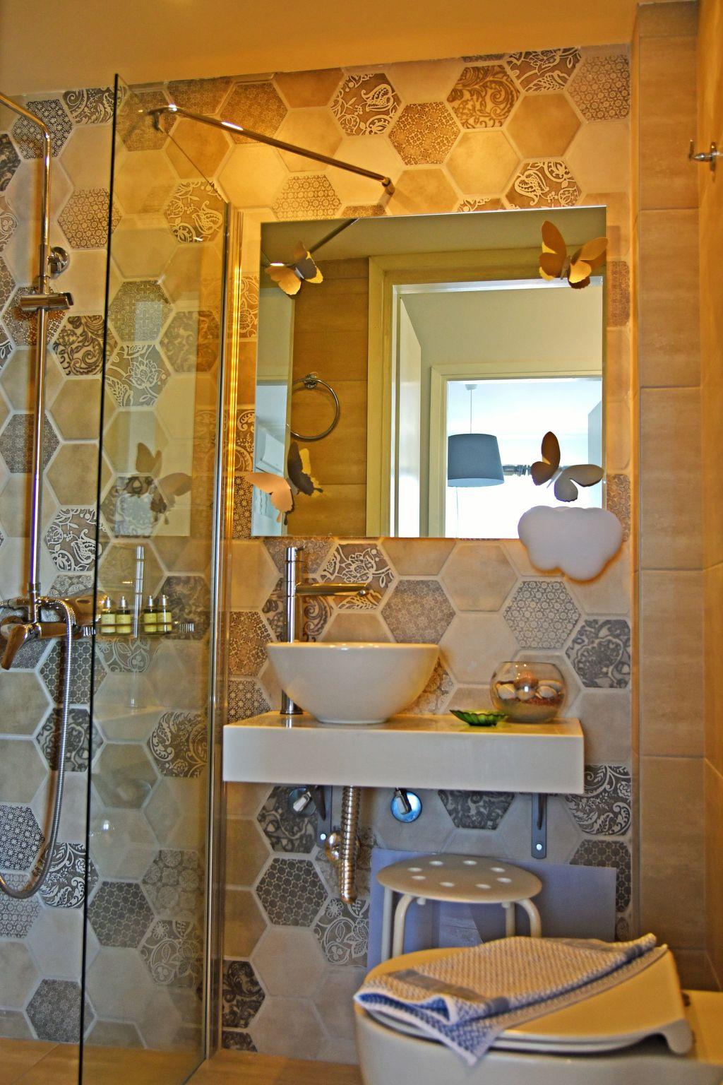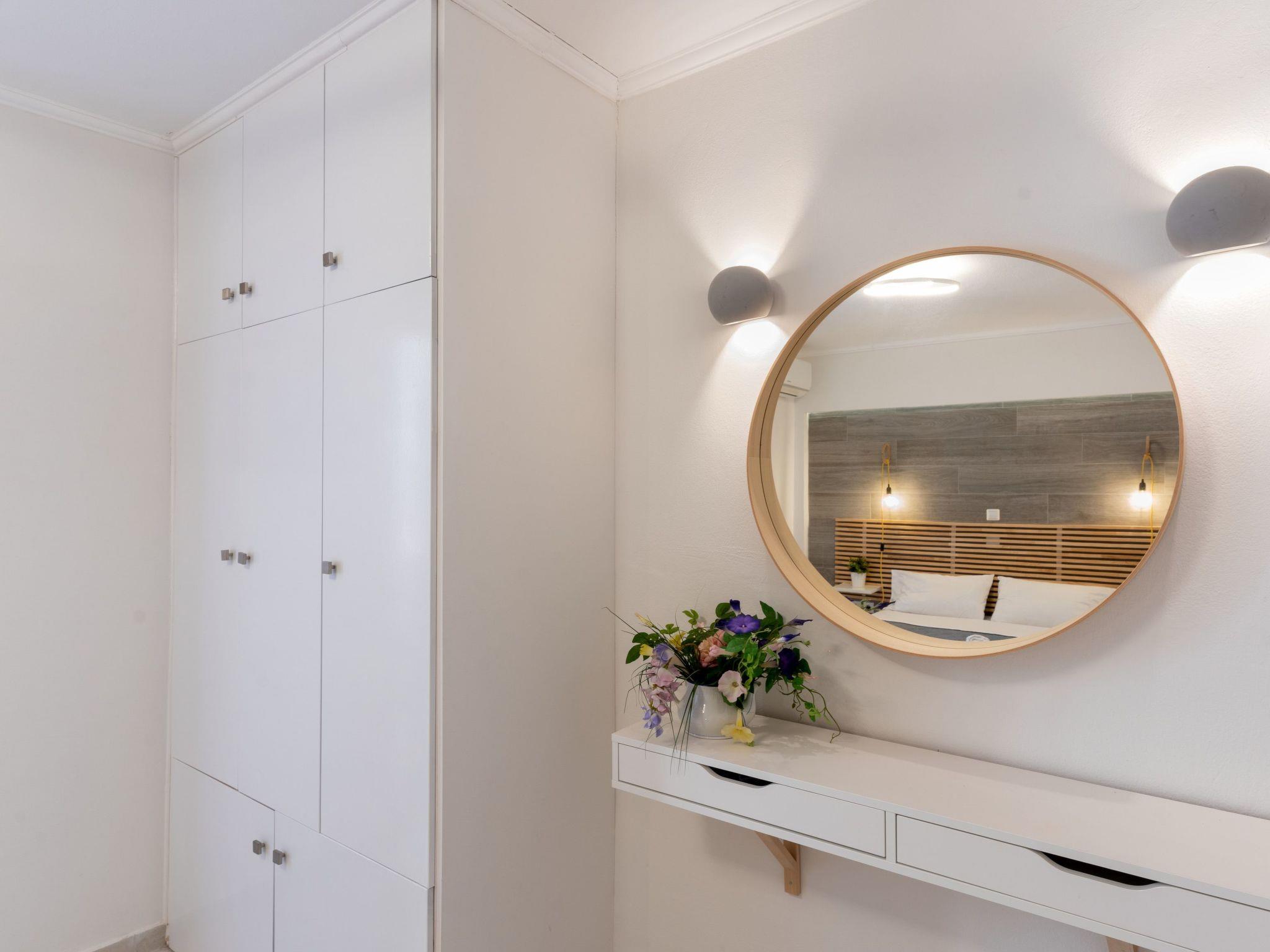 Outside, the apartment boasts a balcony that offers a serene sea view, making it an ideal spot for enjoying your morning coffee or watching the sunset. Alternatively, depending on availability, you may be treated to a large terrace that invites for outdoor relaxation and socializing, embodying the essence of vacation leisure.