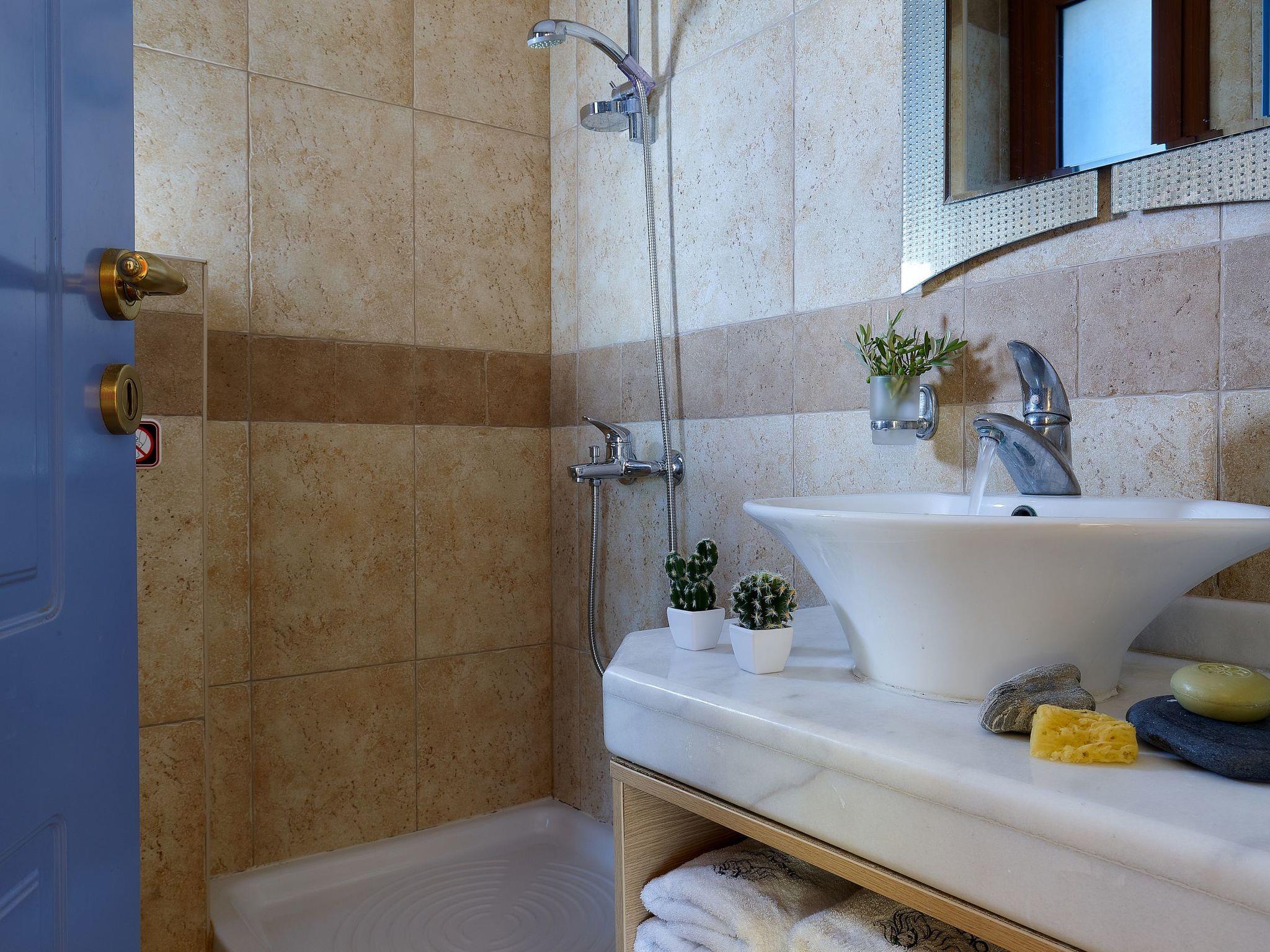 The villa offers access to many tourist attractions, beaches, big cities, airports, harbours/ports, etc. You can visit on foot or by car the calm beach at the bay of “Kalo Chorafi” which is at a distance of only 600 m from the Villas. You can swim at the light blue transparent waters of the secluded beach enjoying the Cretan sun under the umbrellas and the sunbeds provided by us.