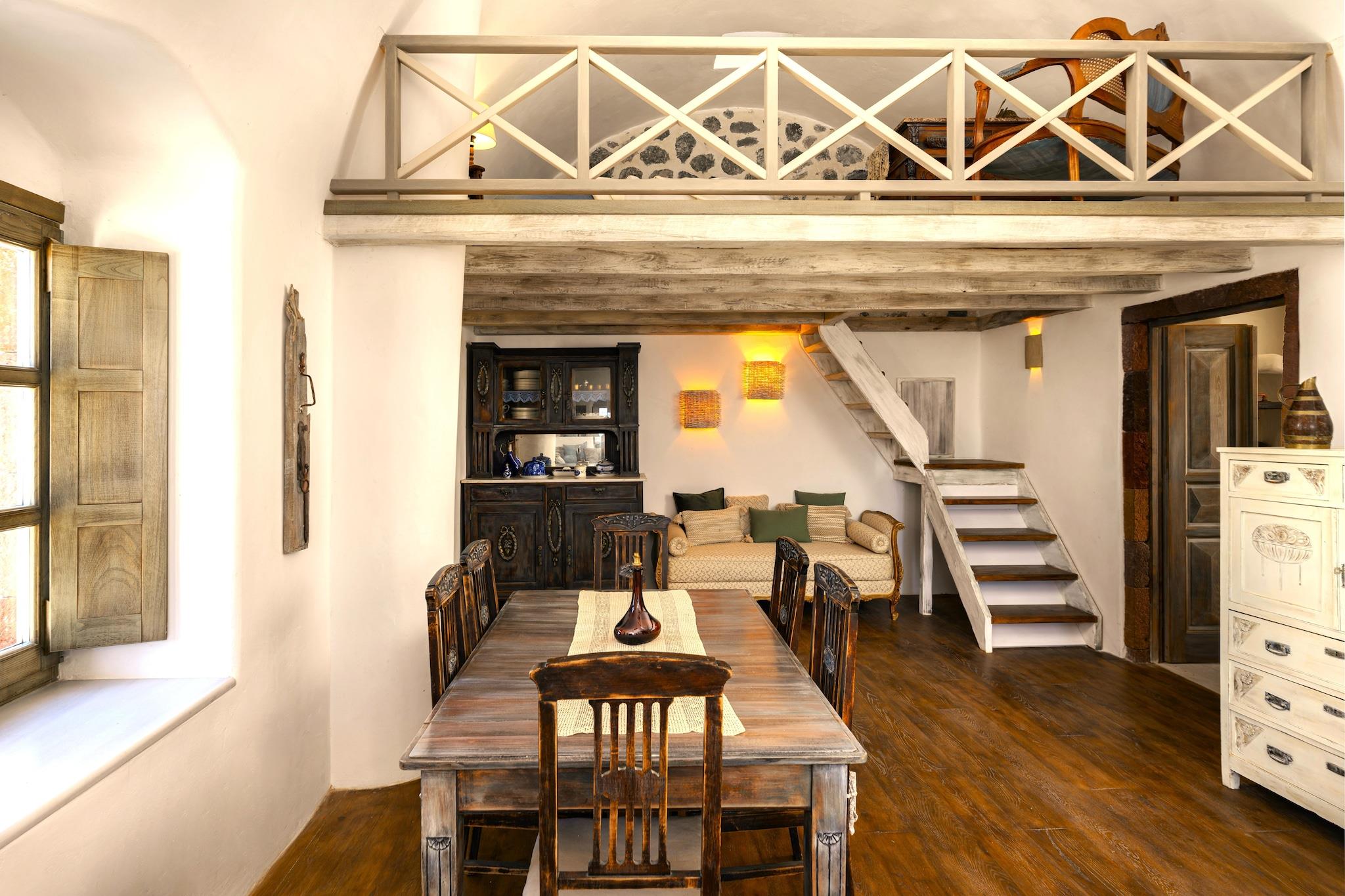 Beliggende i hjertet af den middelalderlige landsby Pyrgos inviterer Villa Santa Croce dig til at opleve Santorinis tidløse skønhed i luksuriøs komfort. Med udsigt over de historiske Castelli i Pyrgos og det endeløse blå Ægæerhav kombinerer denne elegante villa århundreder gammel arkitektur med moderne sofistikation. Villaen er bygget omkring et bevaret middelaldertårn og afspejler den venetianske charme gennem sine stenbuer og unikke designdetaljer. Den har plads til op til 10 gæster og tilbyder rummelige interiører, stilfulde soveværelser og rolige opholdsområder fyldt med naturligt lys. Gæsterne kan slappe af i den private hulepool, tage en dukkert i den udendørs jacuzzi eller nyde betagende solnedgange over vulkanen fra den panoramiske terrasse. Hvert hjørne af Villa Santa Croce fortæller en historie - fra dens kulturarvsinspirerede indretning til den storslåede udsigt, der forbinder dig med Santorinis fortid og nutid. Villaen ligger kun få skridt fra Pyrgos' traditionelle taverner, kunstgallerier og snoede gyder og tilbyder en autentisk, men eksklusiv flugt. Stueetagen har en master suite med en queensize-seng og et badekar i kobber samt to dobbeltsenge-mezzaniner, der deler et badeværelse med bruser, toilet og håndvaskarmatur. Der er også adgang til et separat toilet fra terrassen. Ovenpå finder gæsterne et lyst dobbeltværelse med en queensize-seng, en ekstra mezzanin med en dobbeltseng og et fuldt udstyret badeværelse med bruser, badekar og toilet. Uanset om du udforsker øens kulturskatte, fejrer en særlig lejlighed eller blot slapper af i raffineret ro, lover Villa Santa Croce et uforglemmeligt ophold, hvor historie, elegance og komfort mødes.