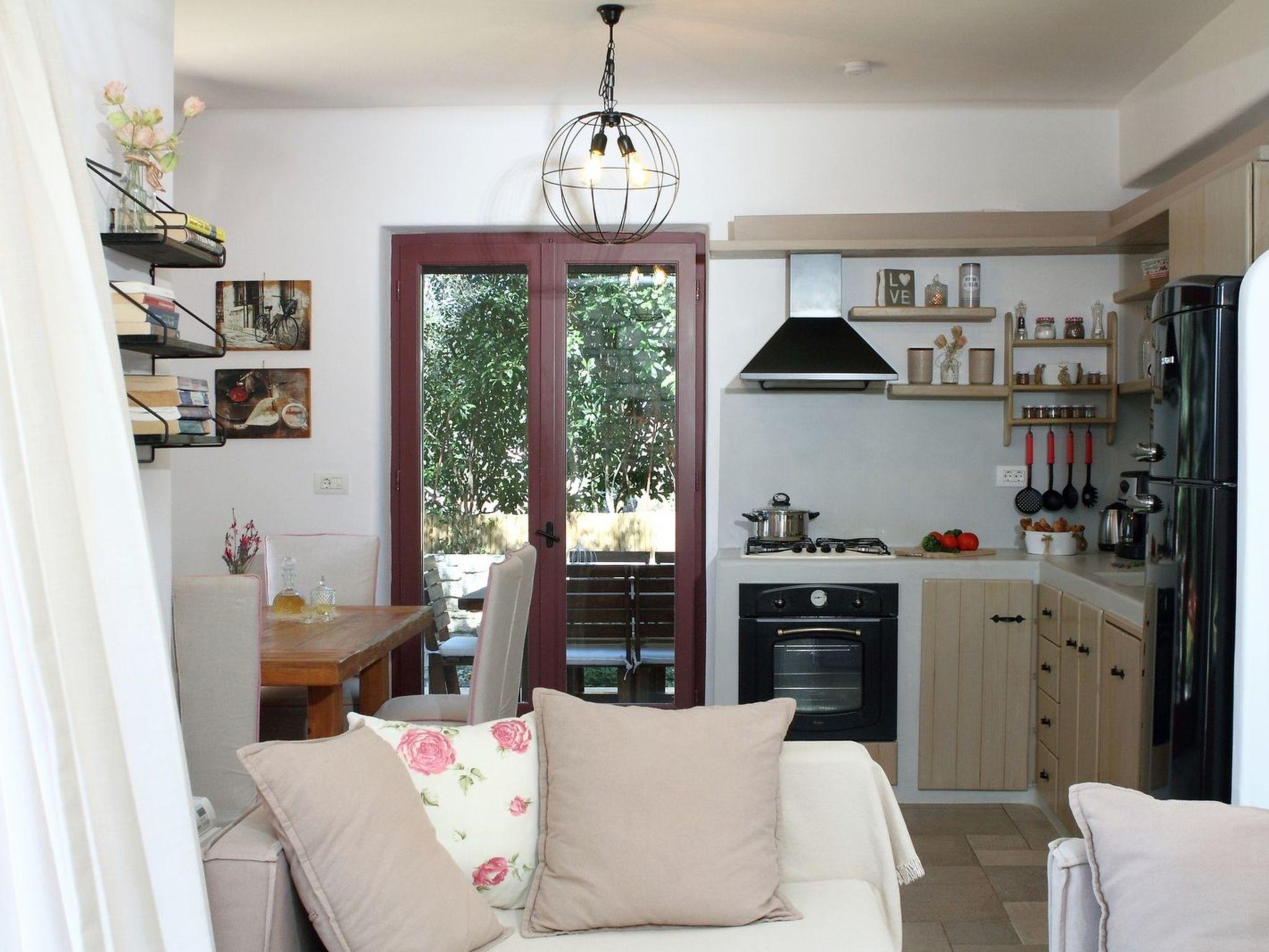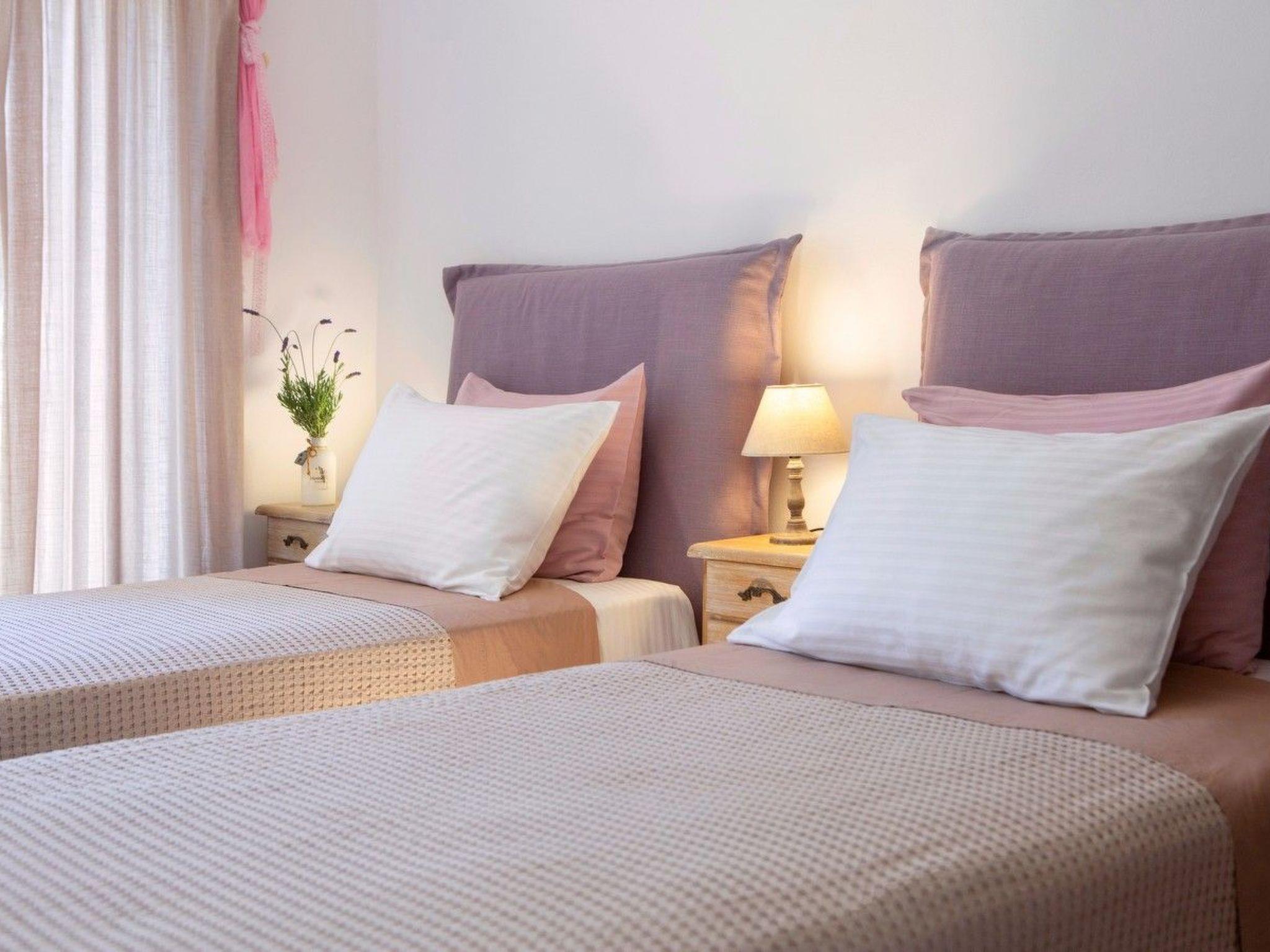 The two-storey villa is in a new complex of independent holiday villas. It has three bedrooms and can accommodate six persons. The villa is equipped as follows: Kitchen Fully equipped kitchen, refrigerator-freezer, cooker with gas hotplates, dishwasher, microwave oven, toaster, filter - espresso coffee maker, kettle. Bedroom Anatomic luxurious mattresses from natural materials, different pillows, 100% cotton-satin linen, full furniture equipment. Bathroom Professional hair-dryer with all the accessories, shampoo, shower gel, liquid soap. Coffee and welcome supplies on welcoming, free consumption of the available fruit and the vegetables of the garden. Swimming Pool Private swimming pool with comfortable sun beds and personal towels, stone sofas with cushions on, shower. Furniture - Garden Equipment BBQ, dining table, shading pergolas, swing. Garden Vegetable garden and aromatic herbs flower-bed, olive trees as well as fruit-baring trees. Entertainment 40" Led satellite TV in the living room and 28?? in every bedroom. Free internet access (wi-fi). Various Private parking space, individual air-conditioning in all spaces, washing machine, cleaning products, ironing equipment, sewing kit, first aid kit.