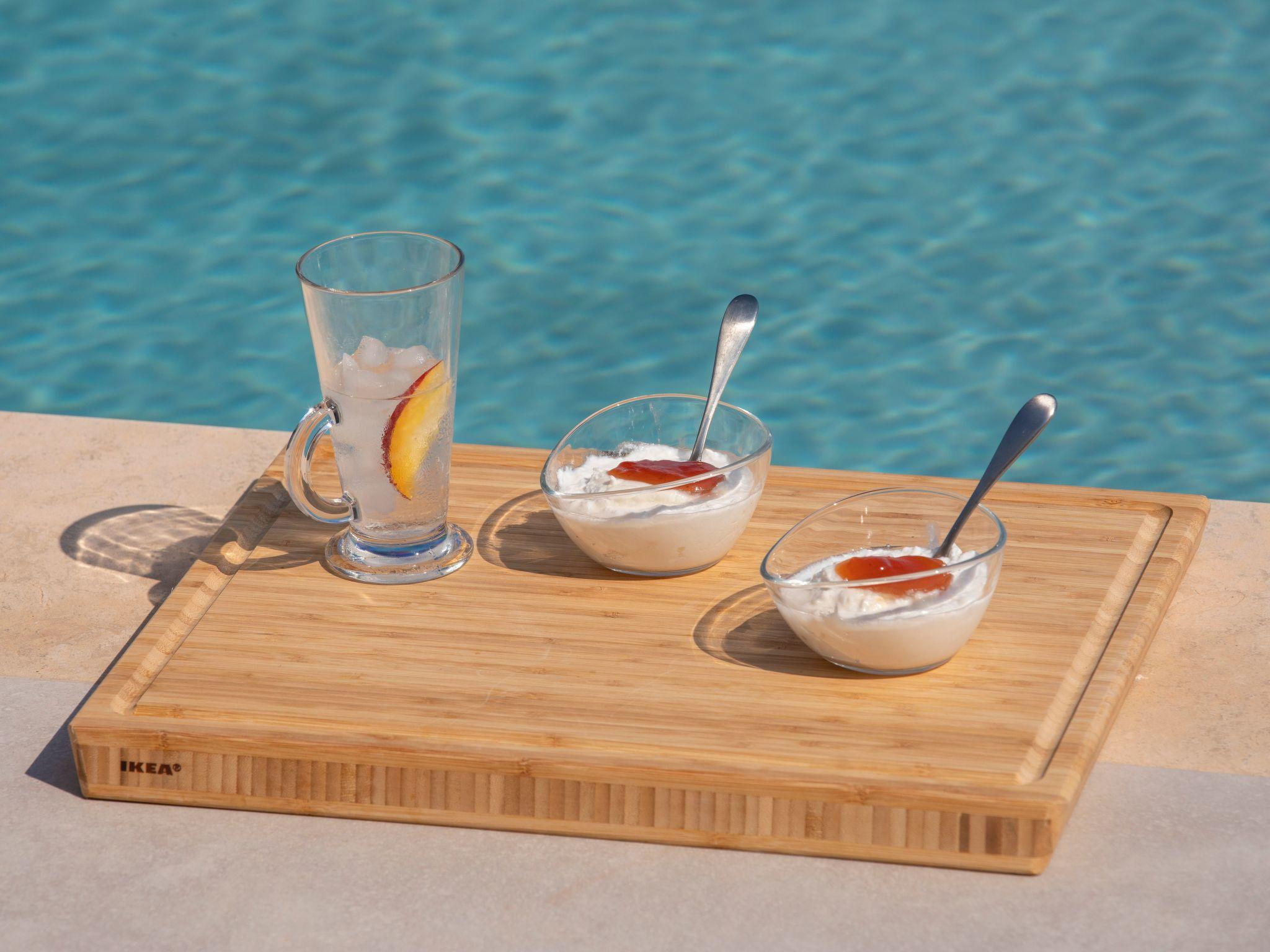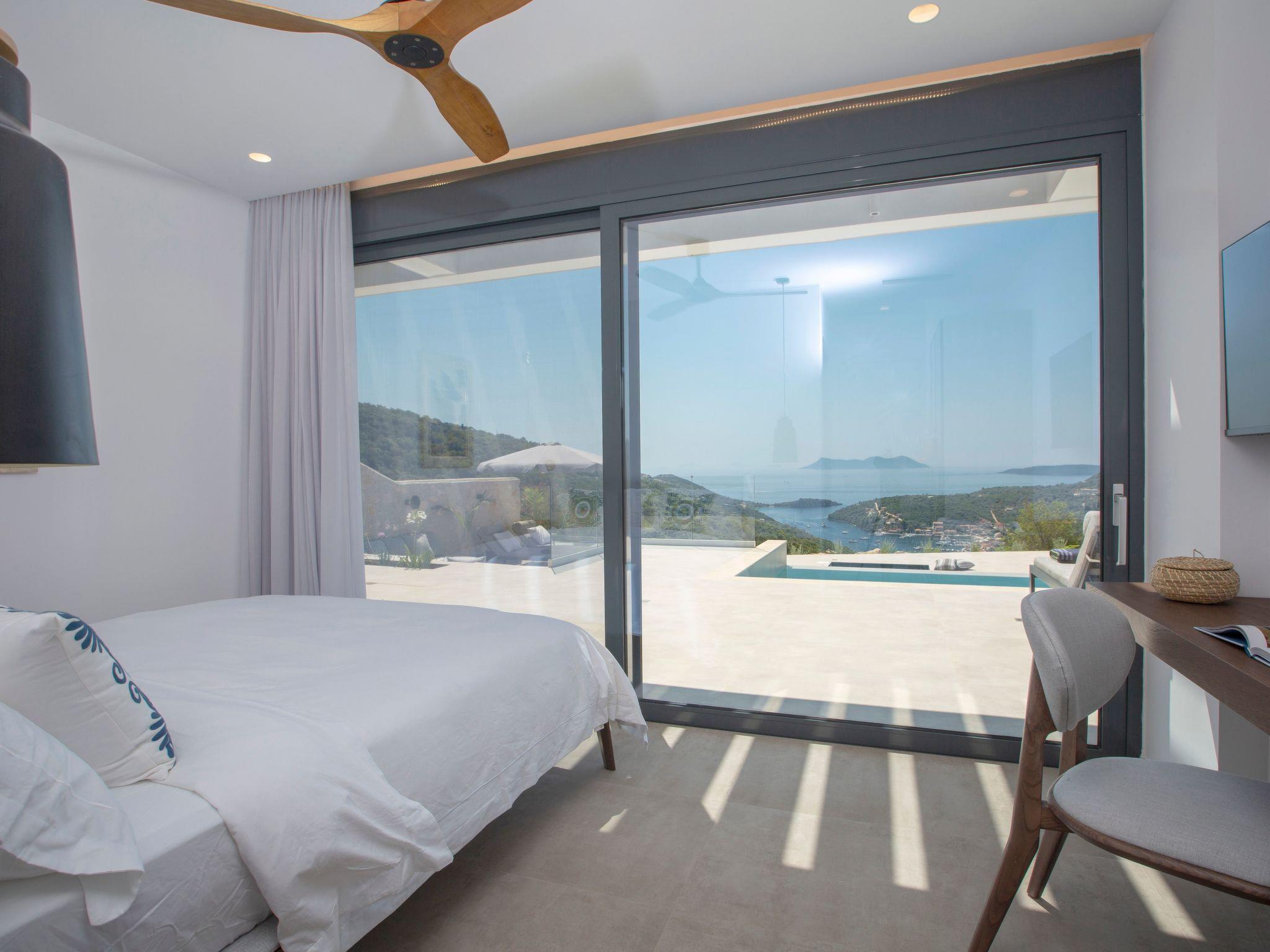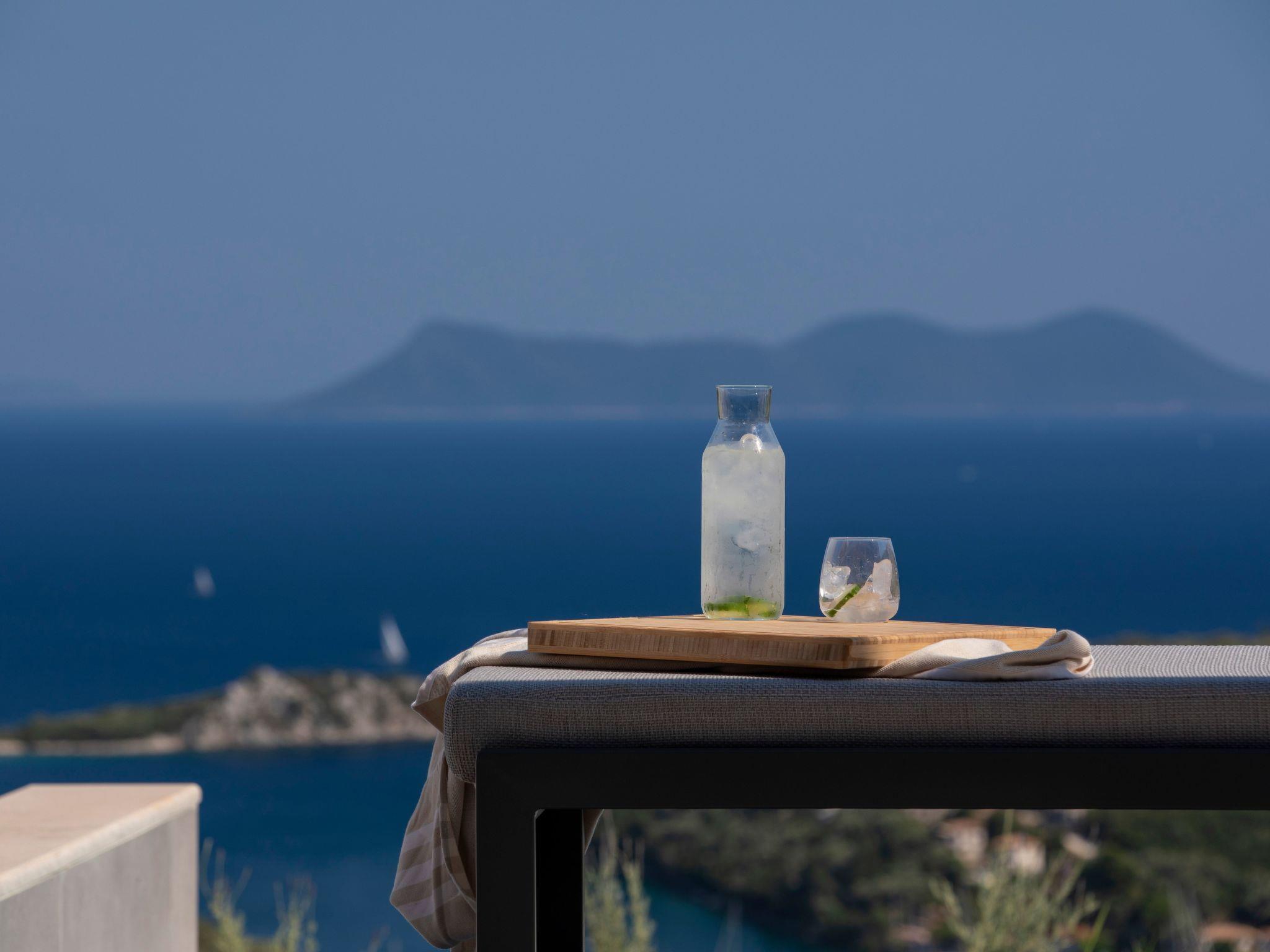A private swimming pool allows guests to cool off on warm summer days while enjoying the breathtaking sea views.