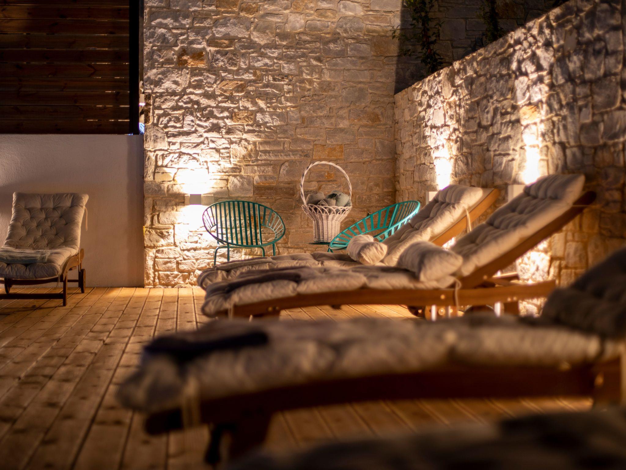 The exterior of the Damari villas is equally impressive. Each villa boasts its own private infinity pool, offering breathtaking, uninterrupted views over the Aegean Sea, perfect for experiencing the awe-inspiring sunsets that paint the sky in gold and violet hues. The surrounding olive groves, pine forests and the gentle fragrance of wild herbs create a serene atmosphere that envelops guests in the island’s natural rhythms, inviting relaxation and contemplation.