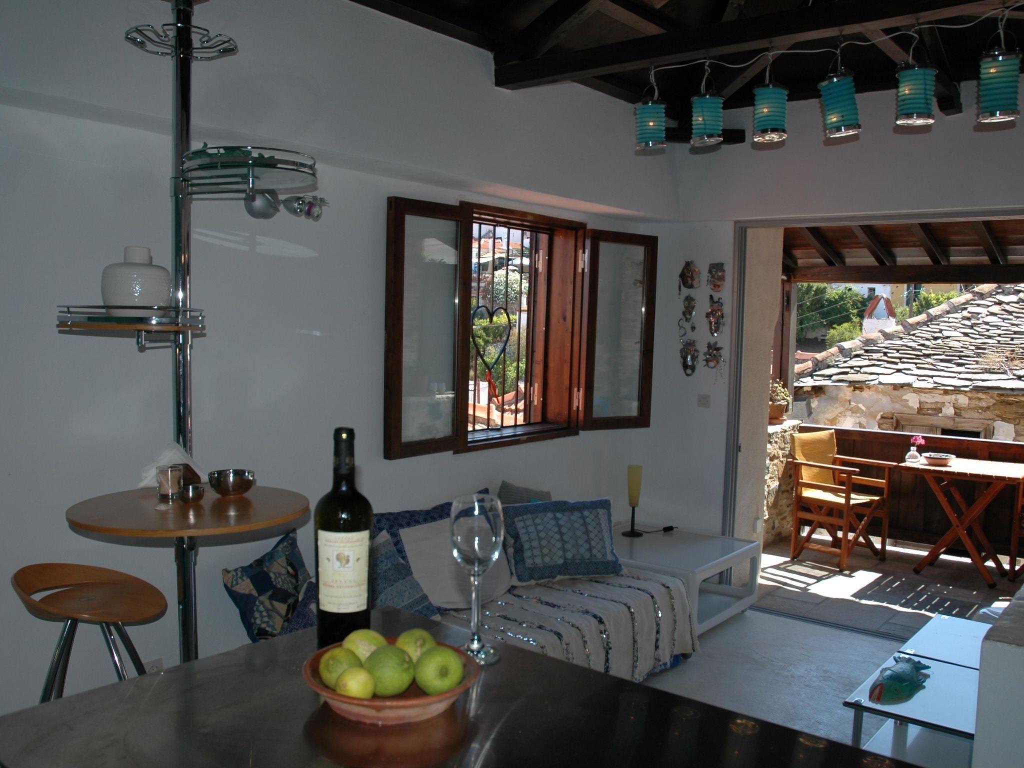 Antique, cosy terraced house in the island's old town and the city of Skopelos, on a low-traffic street, with a balcony with large windows overlooking the living room