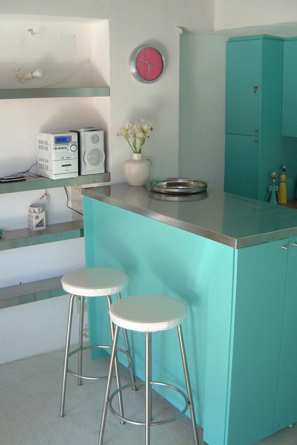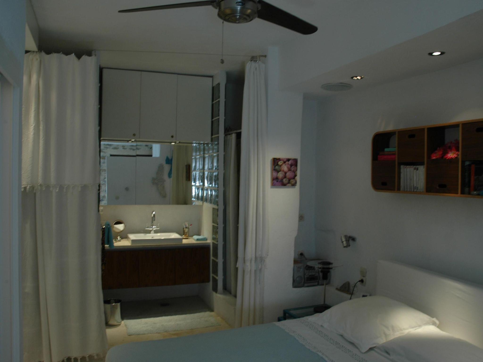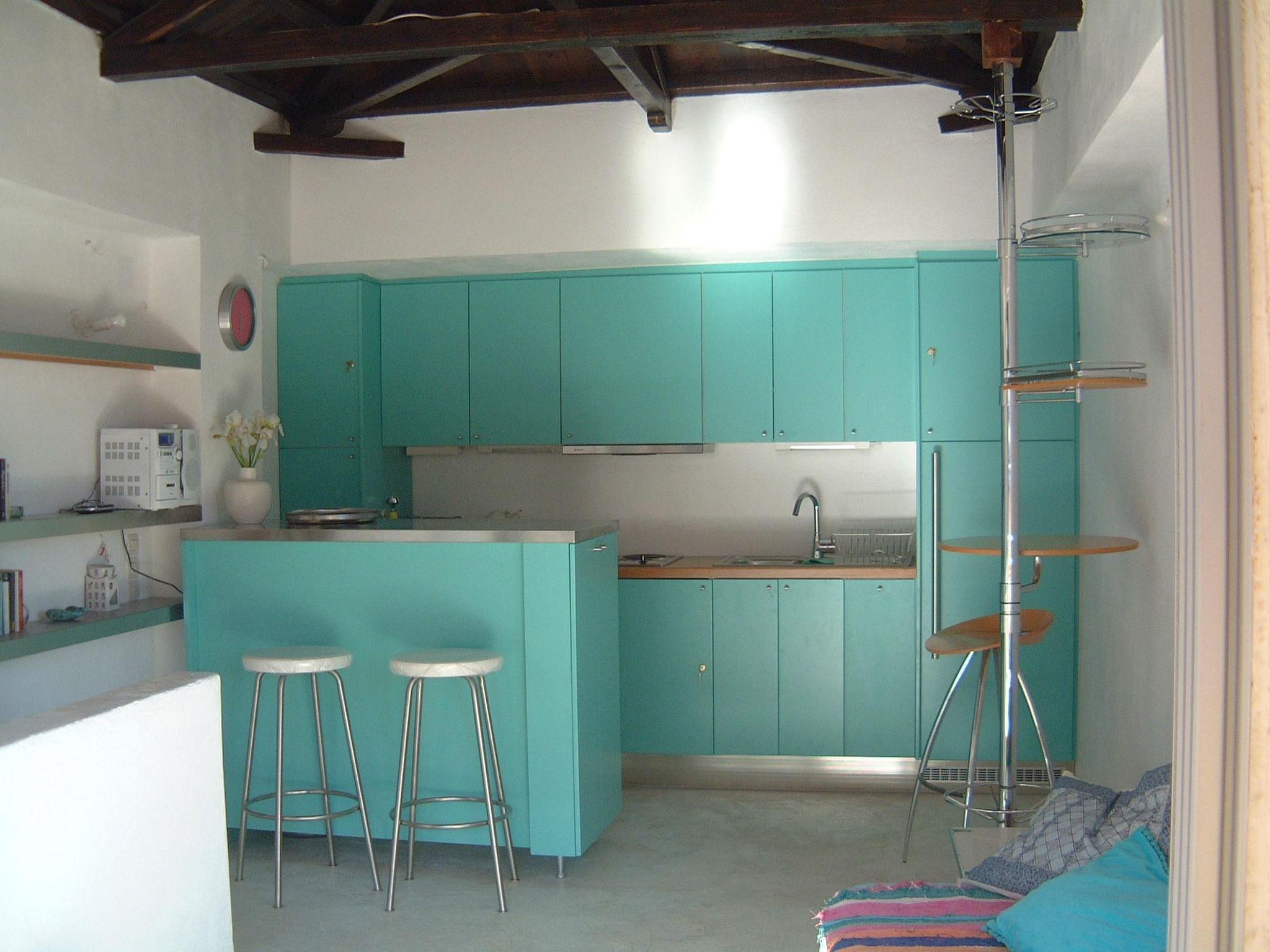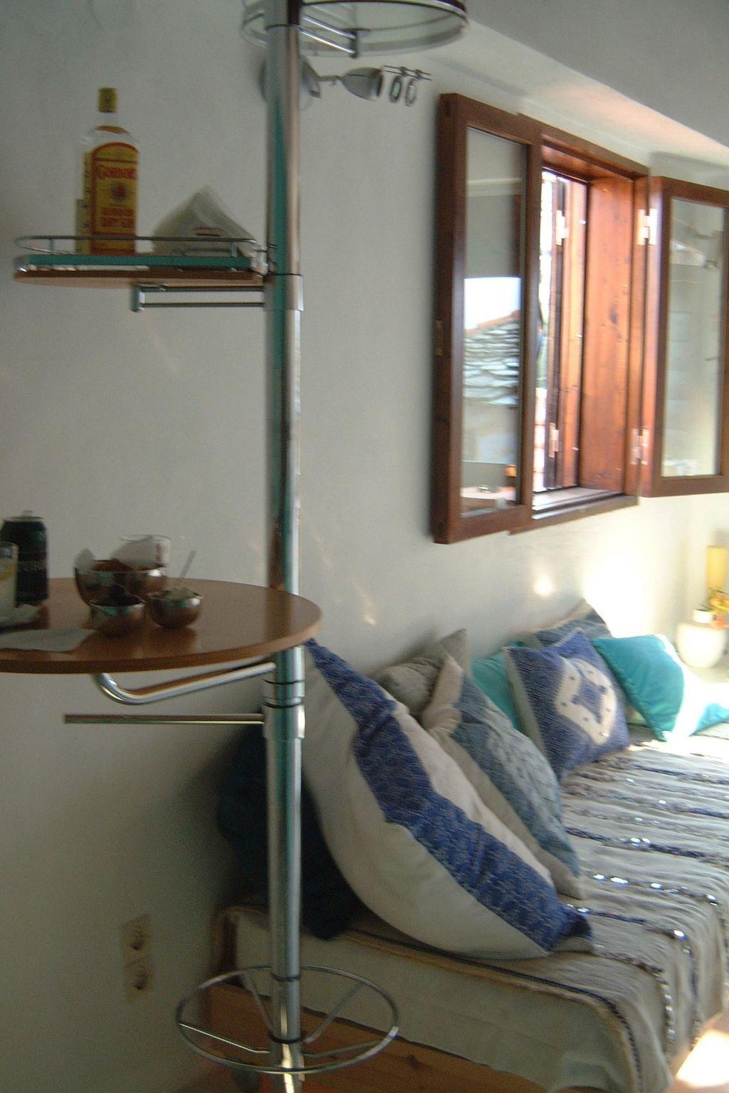 You reach your entrance via a pedestrian street. On the ground floor, you will find the cool bedroom with a double bed (1.40m x 2.00m), a noiseless fan and a bathroom with shower and toilet. Bedside table and storage space are provided. The bathroom is separated from the sleeping area by a curtain. A staircase leads to the living area with living room and open kitchen. The kitchen includes: fridge, freezer, cooking elements and a toaster. Between the rooms is a small counter with two stools. You can not only sit there, but also on the sofa bed (box spring 0.90m x 2.00m, on wheels) in the living room. Radio and CD player are provided. The house offers a mix of modern style and history, where old and new meet. Designer furniture, antiques, original art - with a traditional and Greek touch. You will also find a silent ceiling fan. Your accommodation is cleaned once a week and linen is changed.